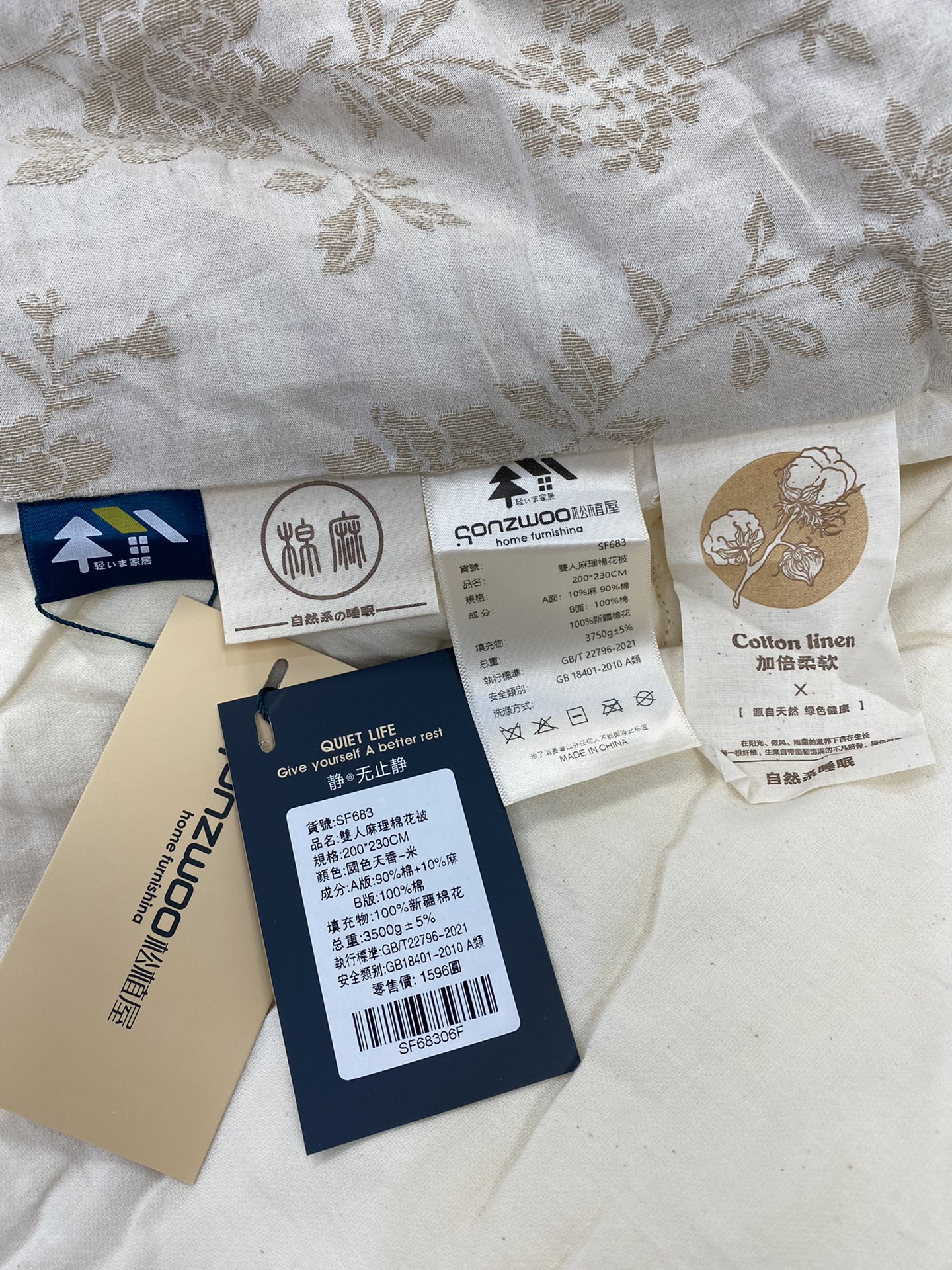 成份: A面:10%麻+90%棉混纺,天然肌理,透气亲肤