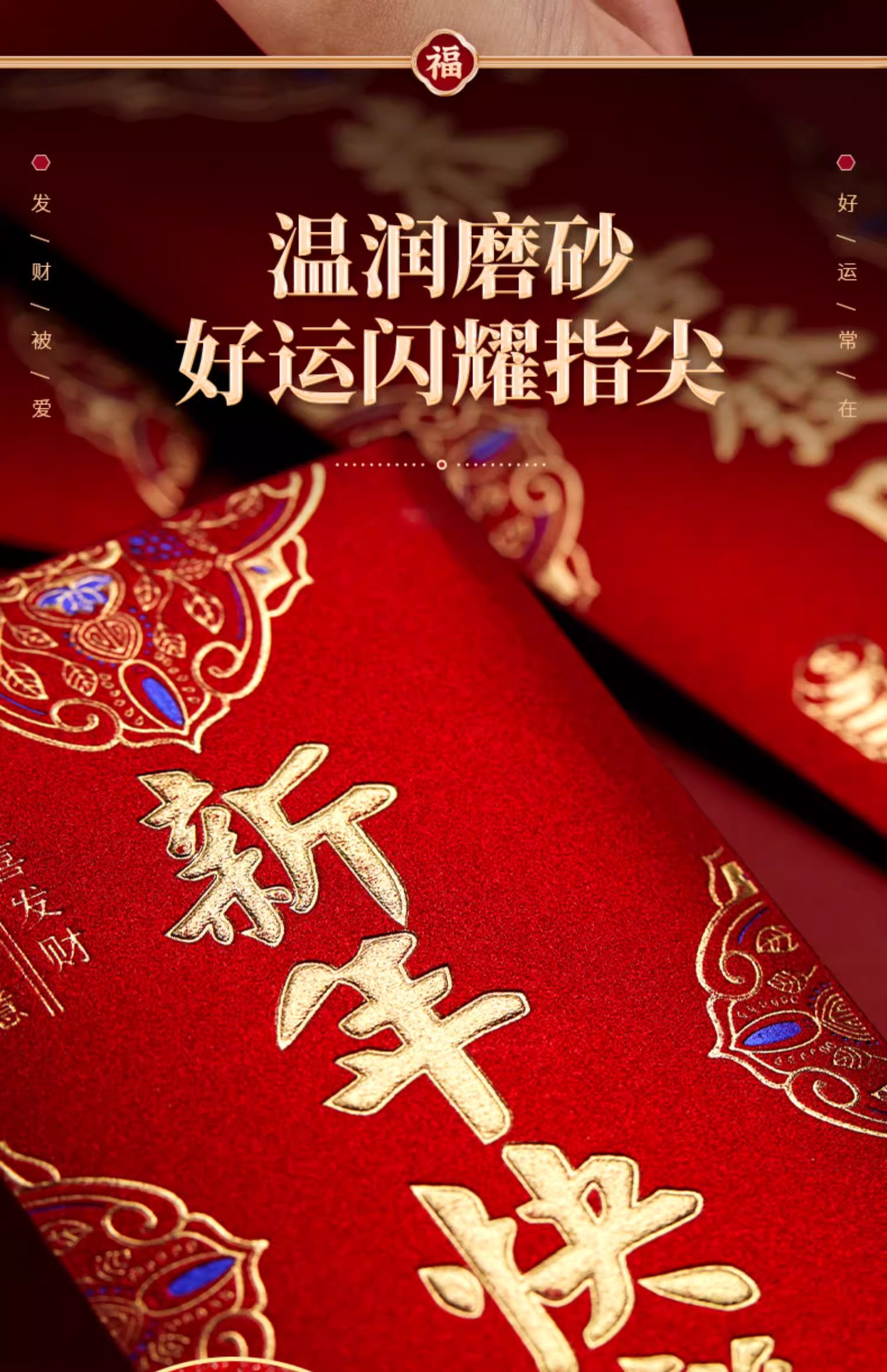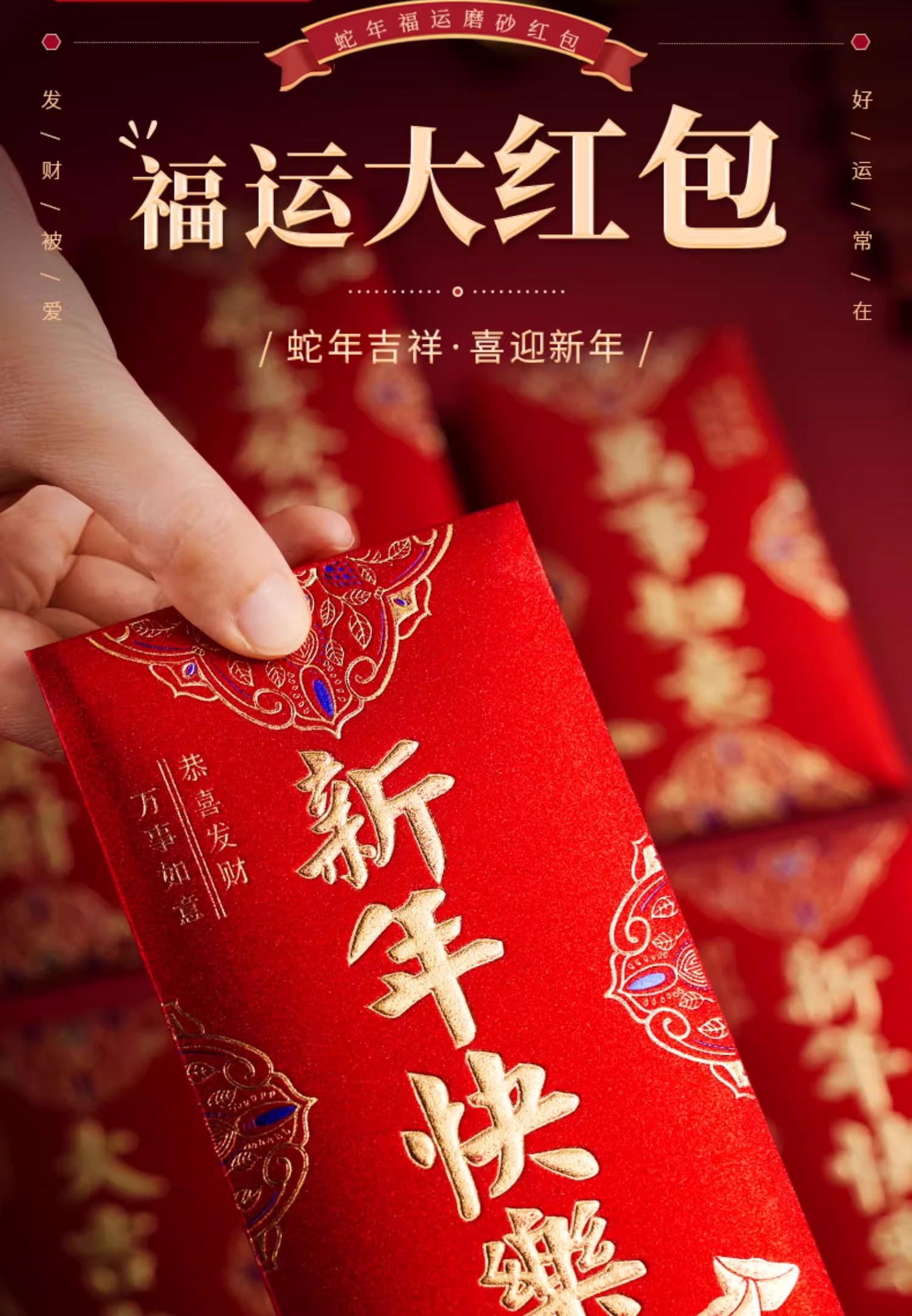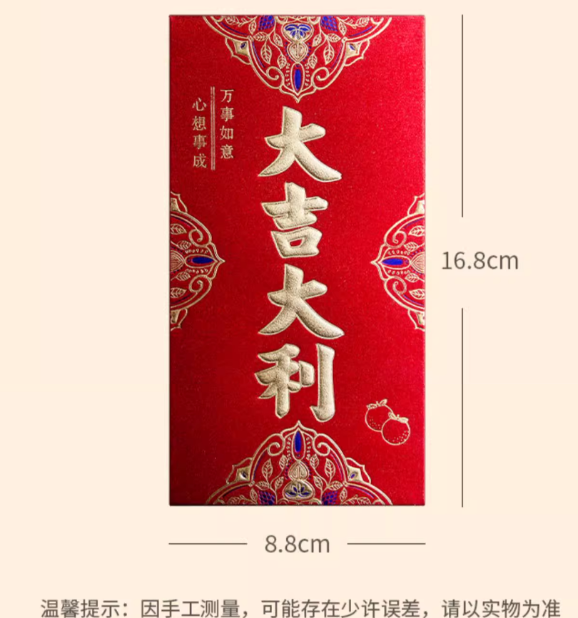6个/包 新年红包 磨砂立体烫面 个性2025新款过年新年红包袋 新年快乐大吉大利