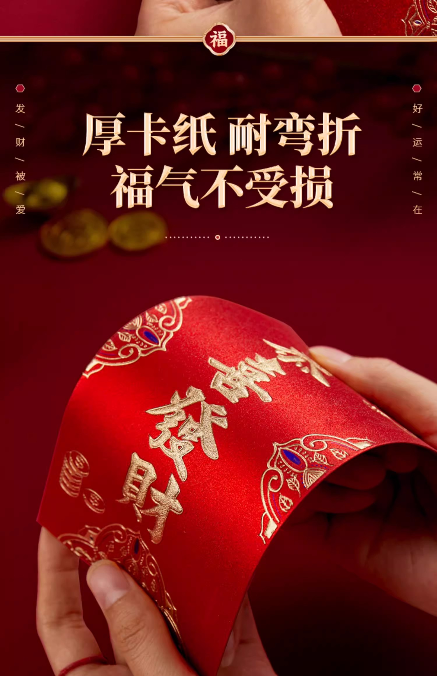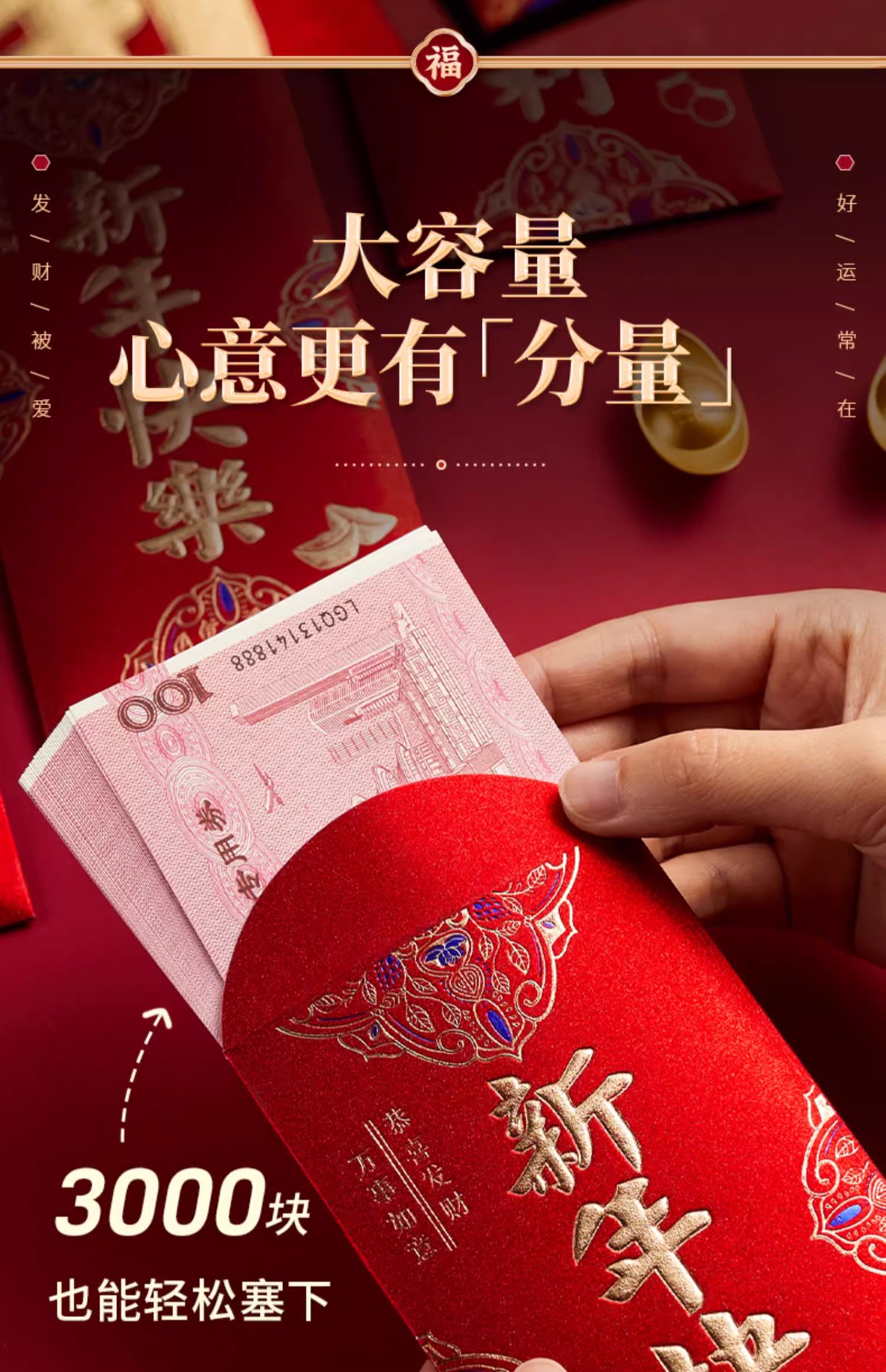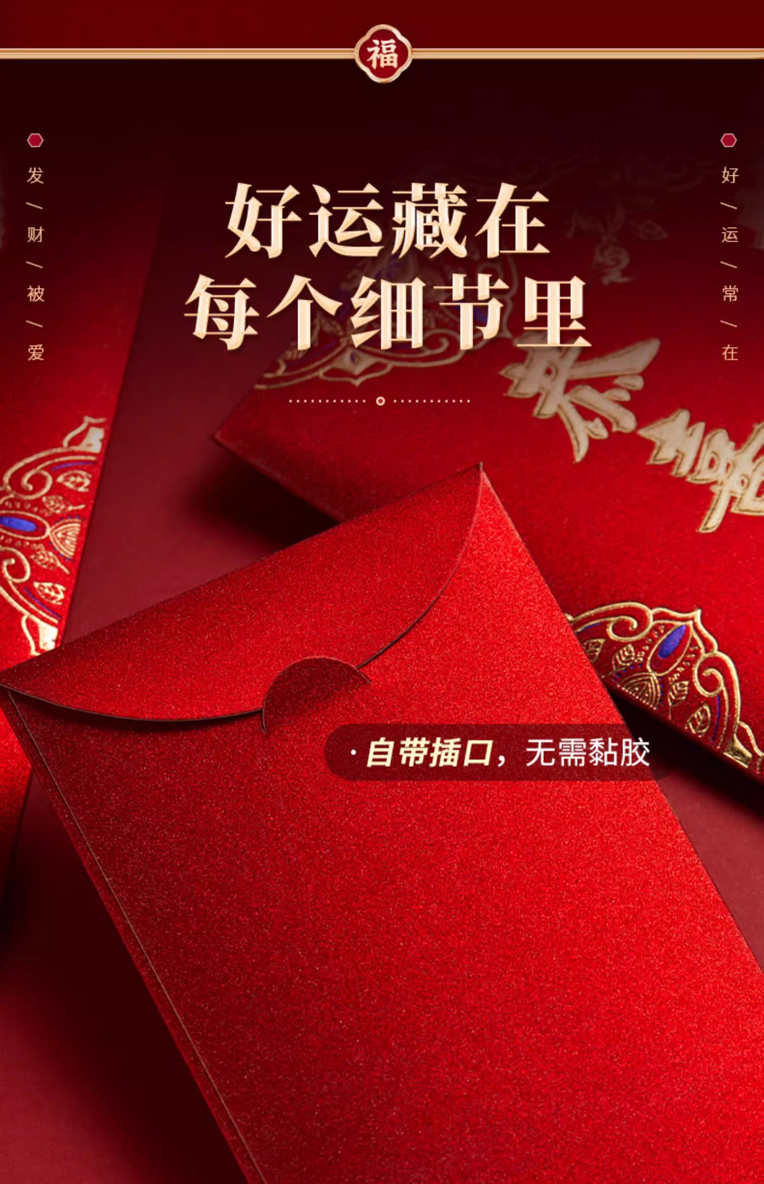 6个/包 新年红包 磨砂立体烫面 个性2025新款过年新年红包袋 新年快乐大吉大利