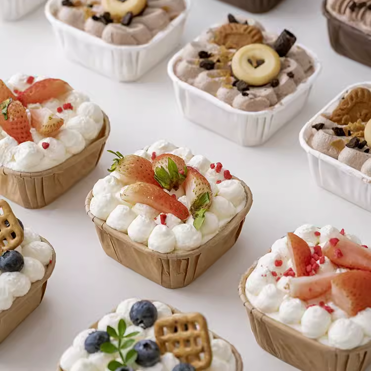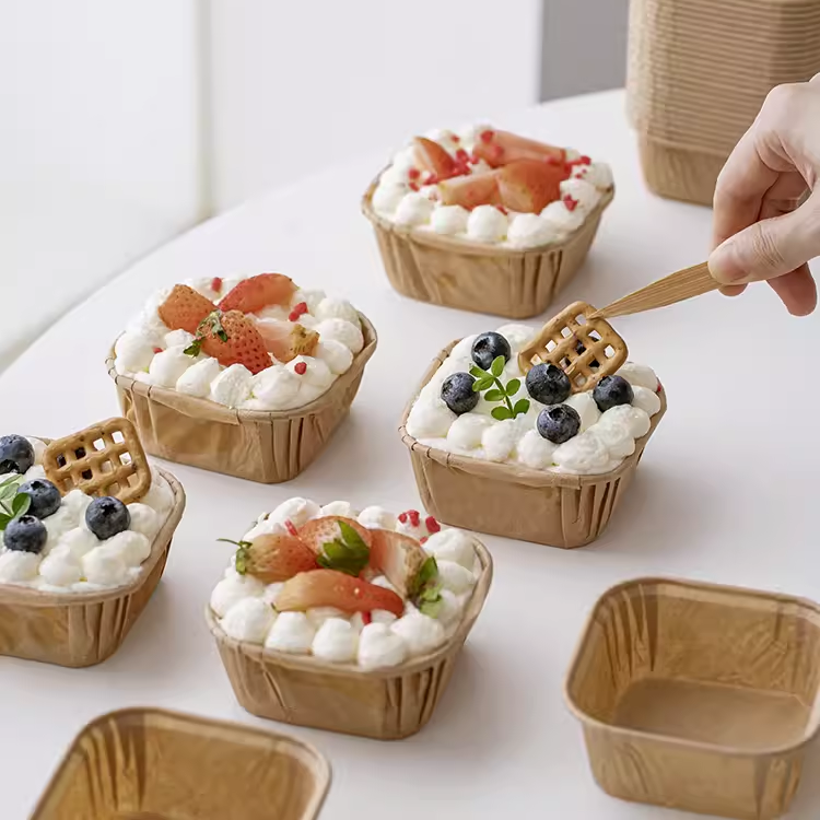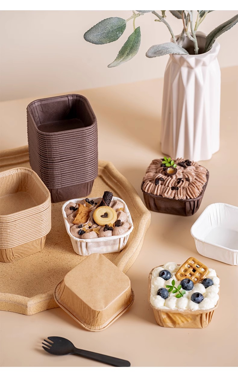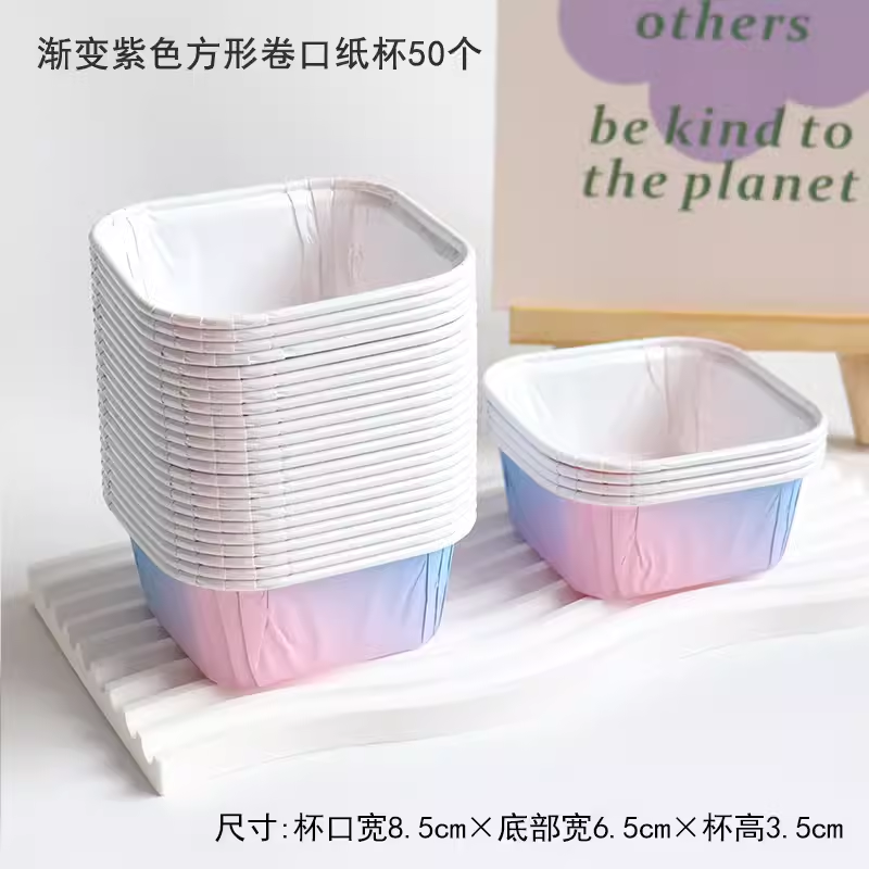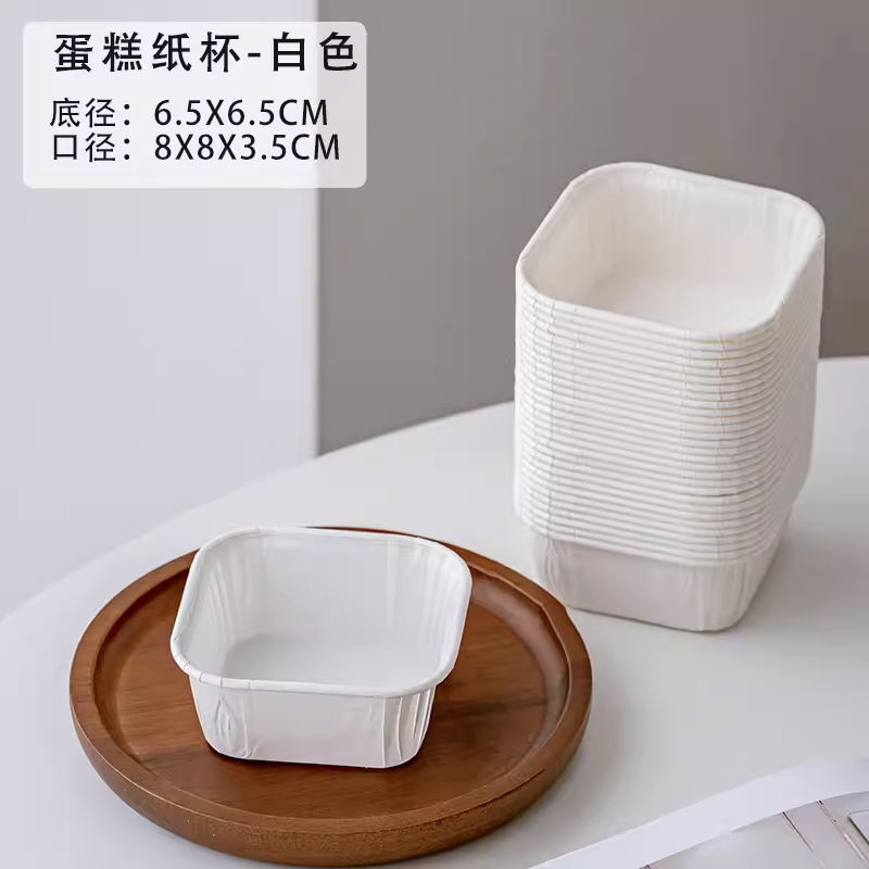 50个 方形防油纸杯 蛋糕纸杯纸托 白色/本色/渐变色 马芬杯子一次性耐高温麦芬蛋糕纸杯