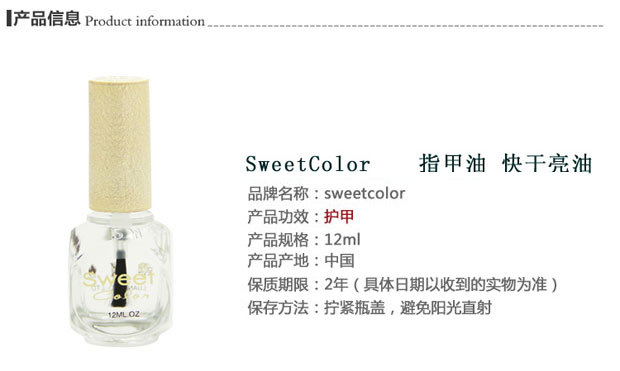 Sweetcolor 快干亮油 12ml (法国原料 环保指甲油 快干持久 易卸美甲 基础护理油 透明)