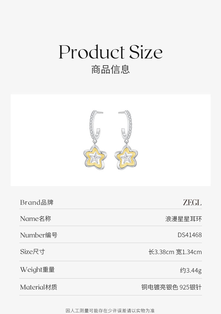 ZEGL星星耳环女2023年新款耳钉小众设计高级感冷淡风925银针耳饰