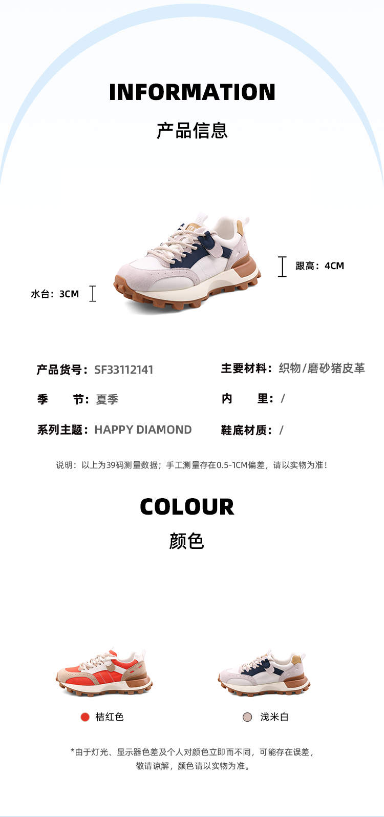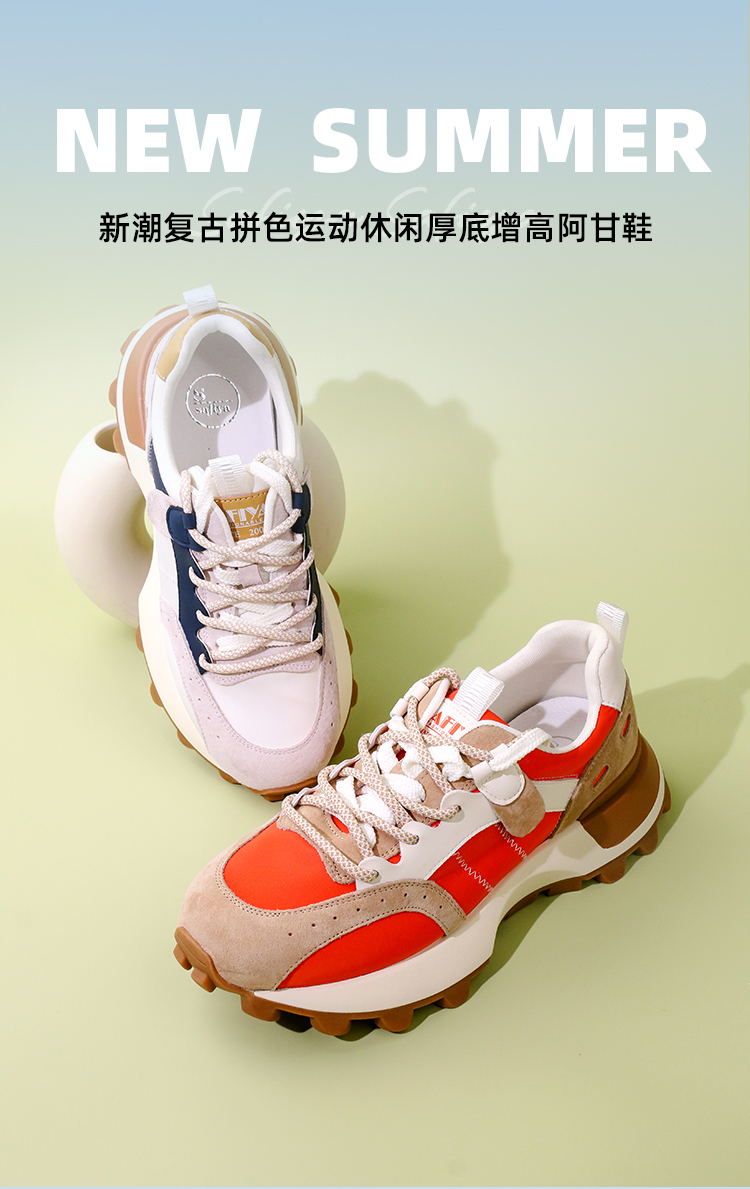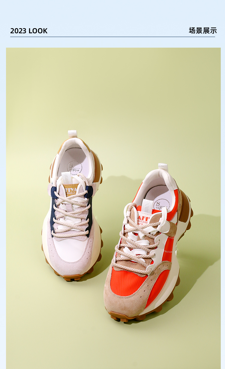 Safiya/索菲娅 2023秋季新品新潮复古拼色运动休闲厚底增高阿甘鞋运动鞋 SF33112141