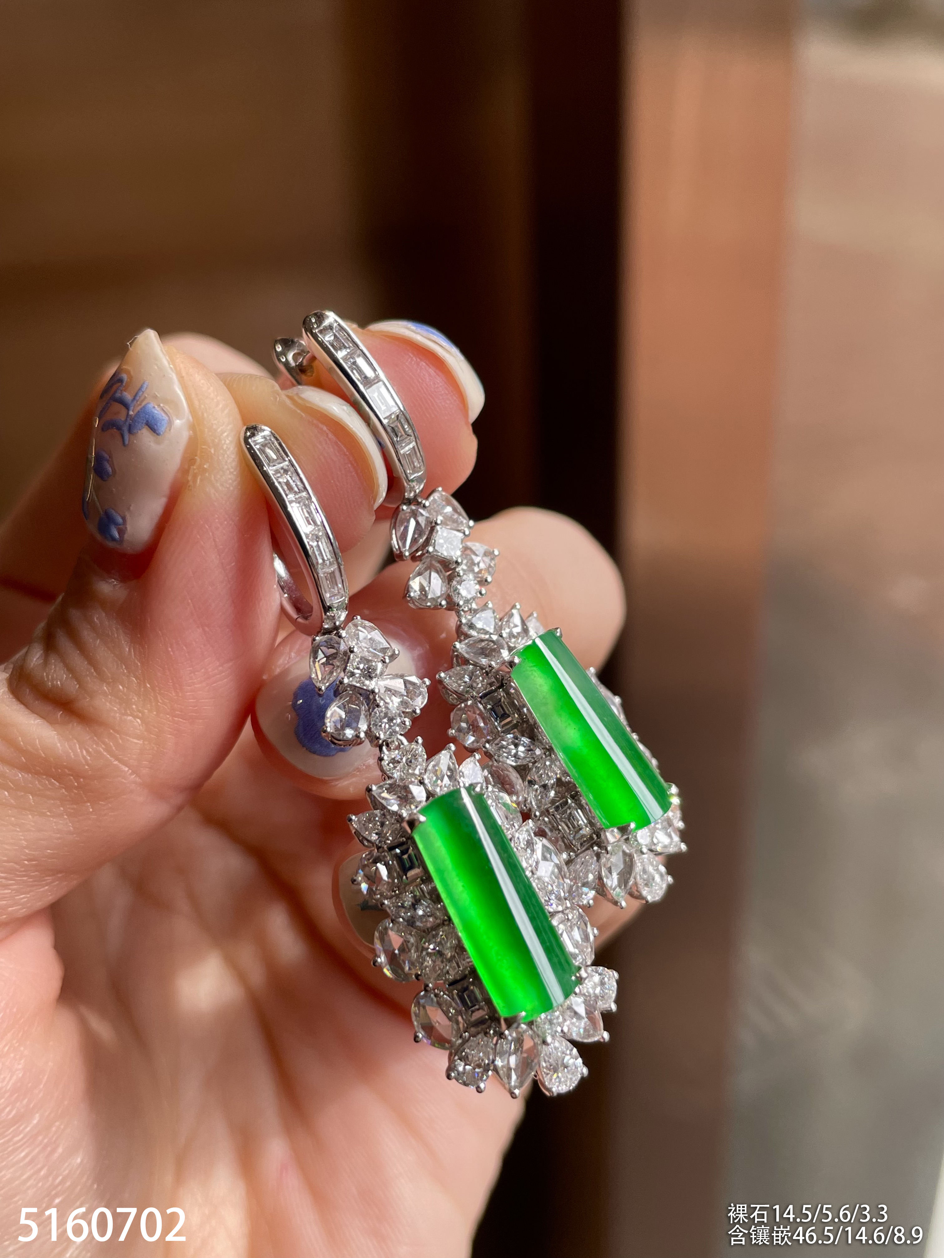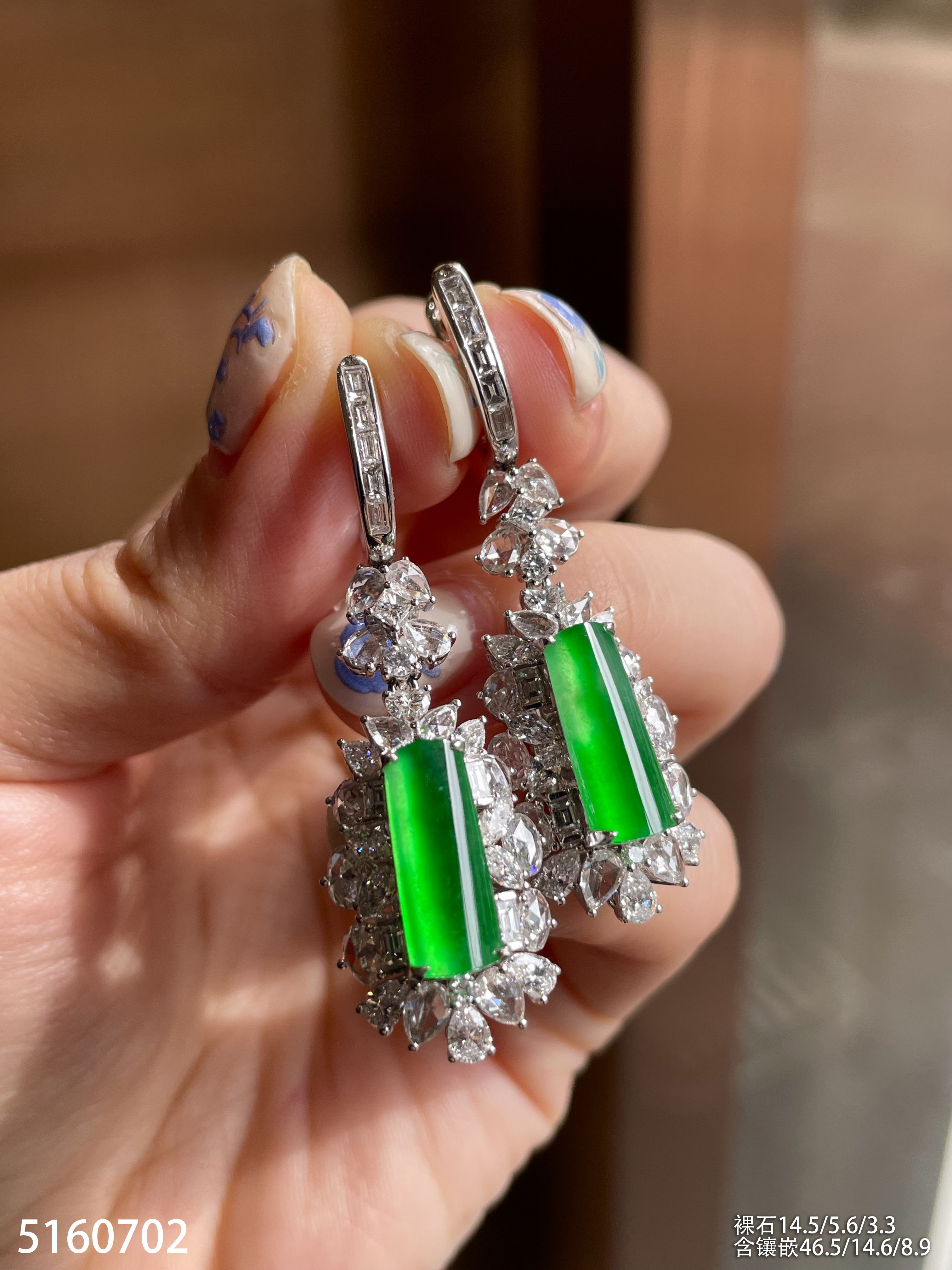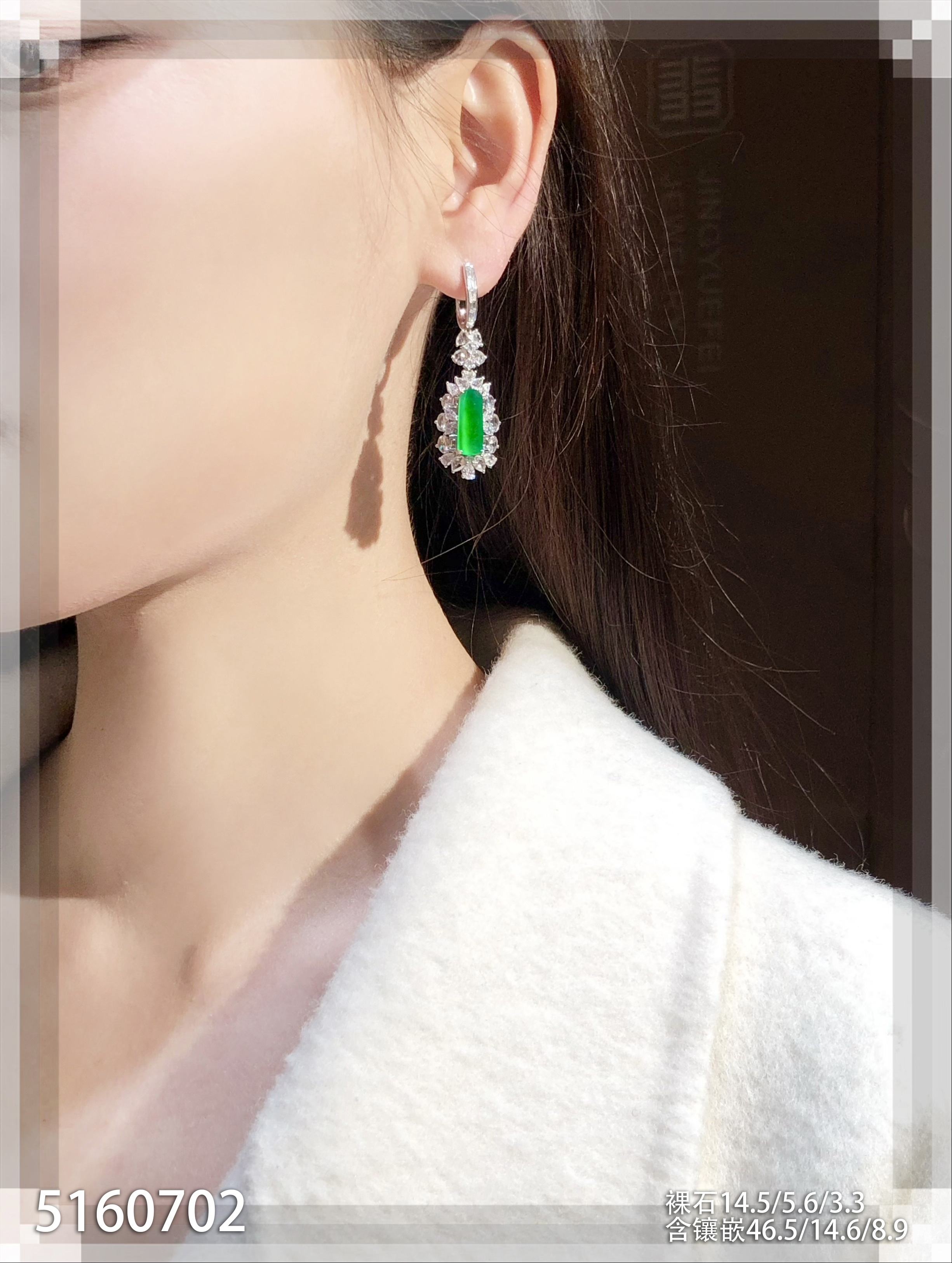 玻璃种艳绿灯管耳坠【5160702】具体价格微信咨询