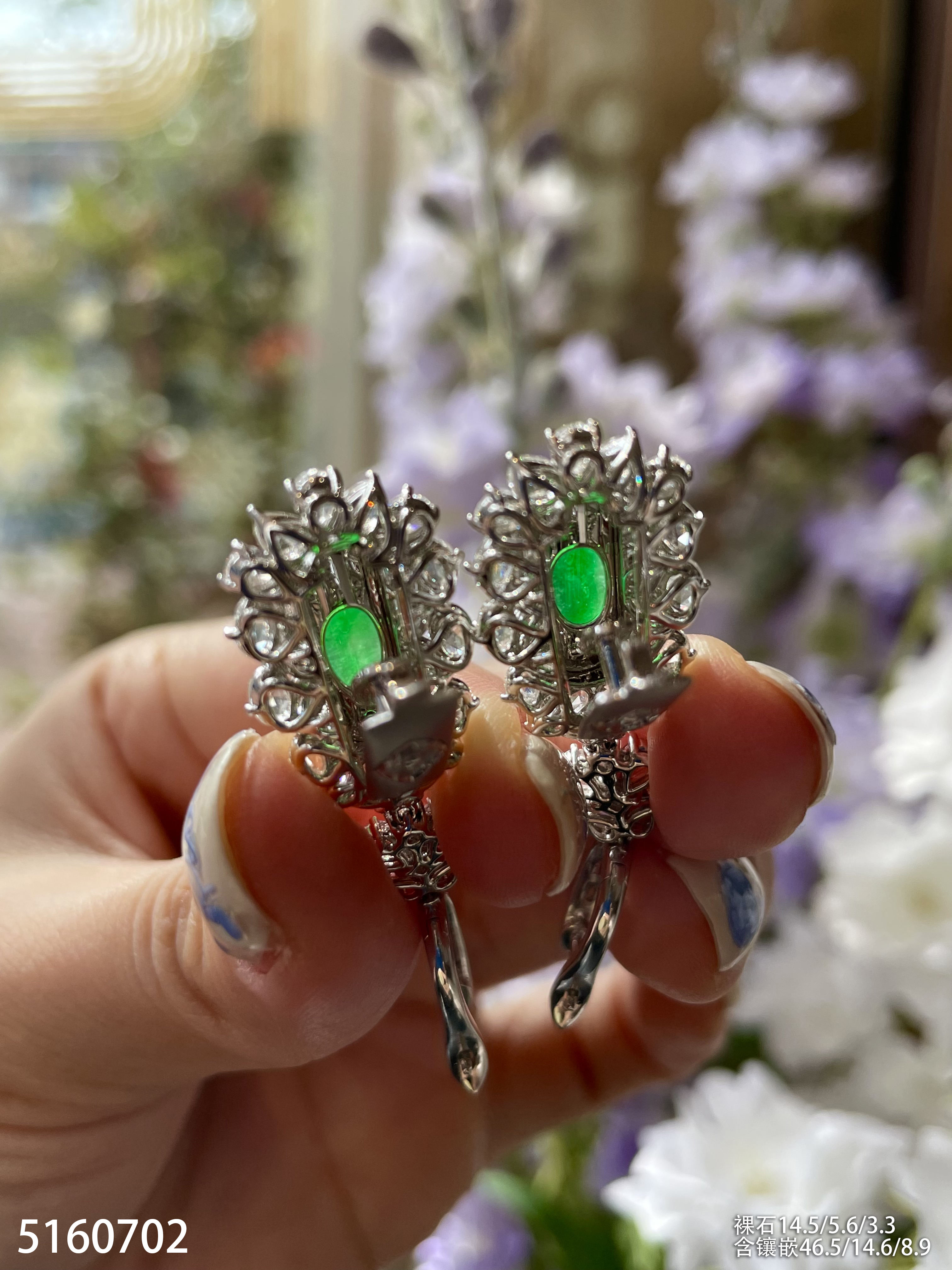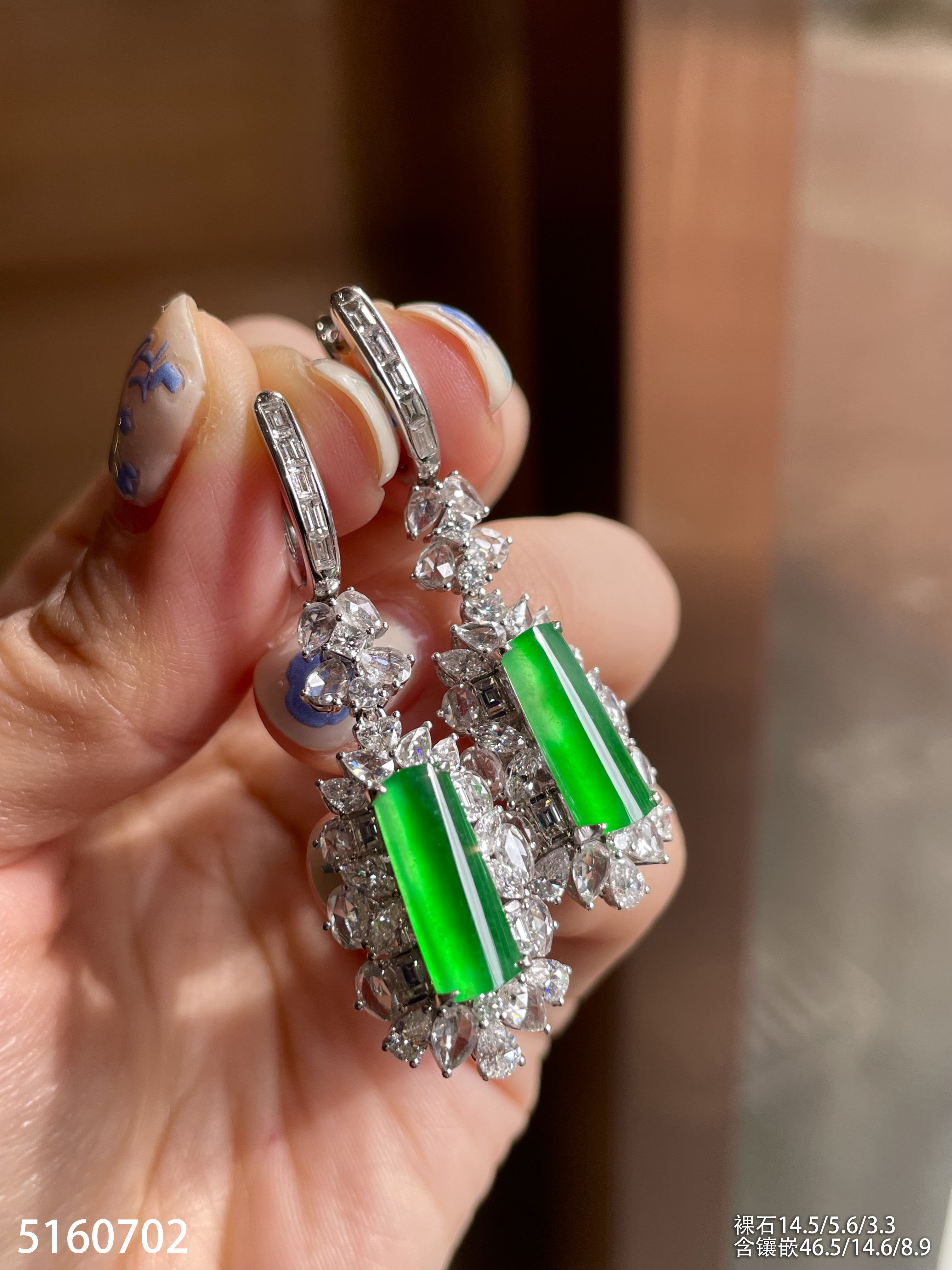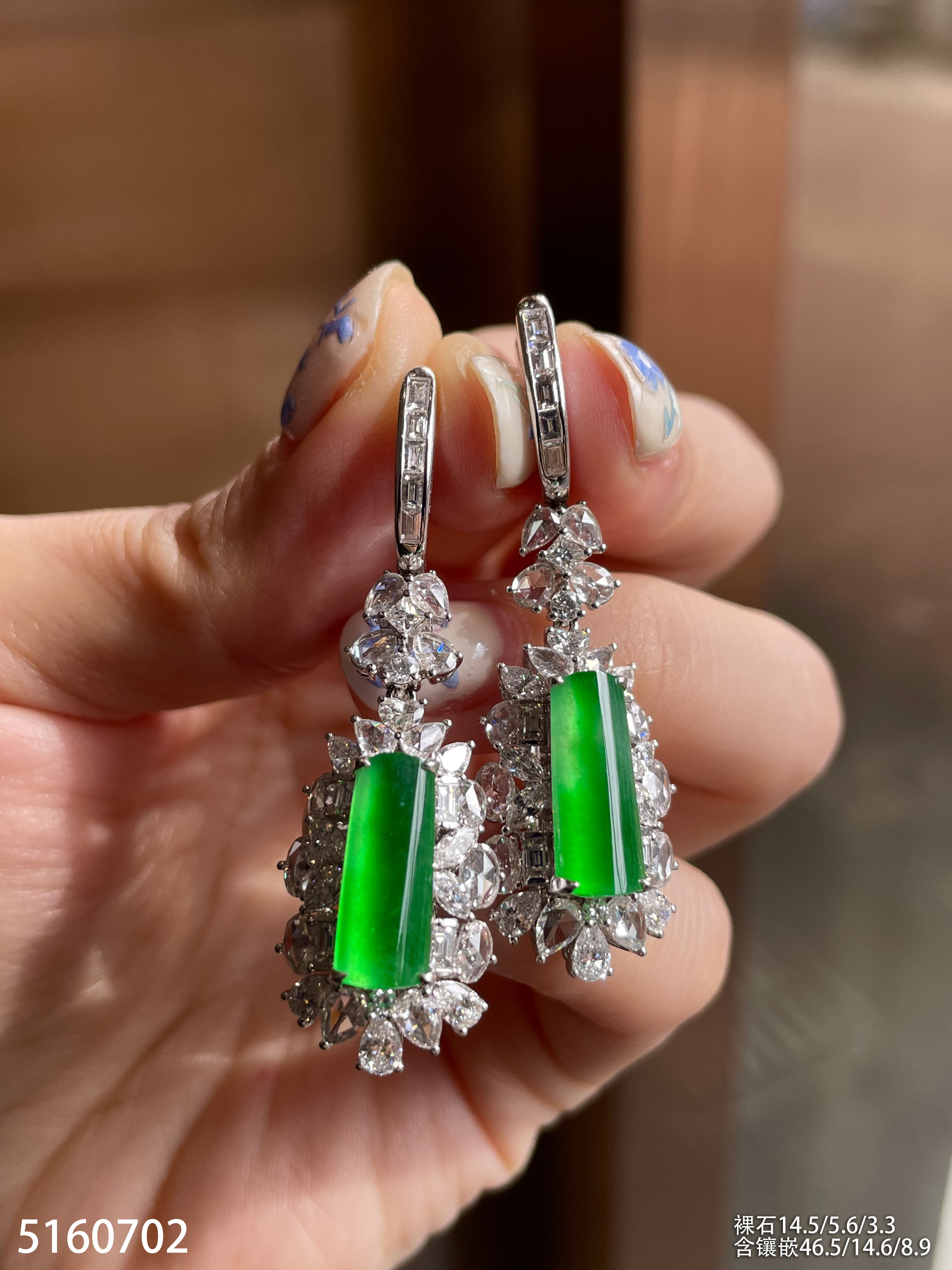 玻璃种艳绿灯管耳坠【5160702】具体价格微信咨询