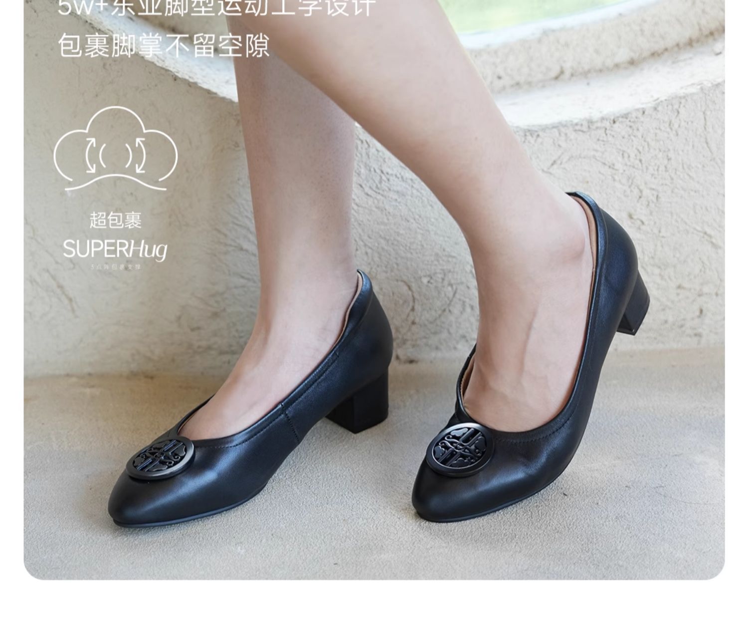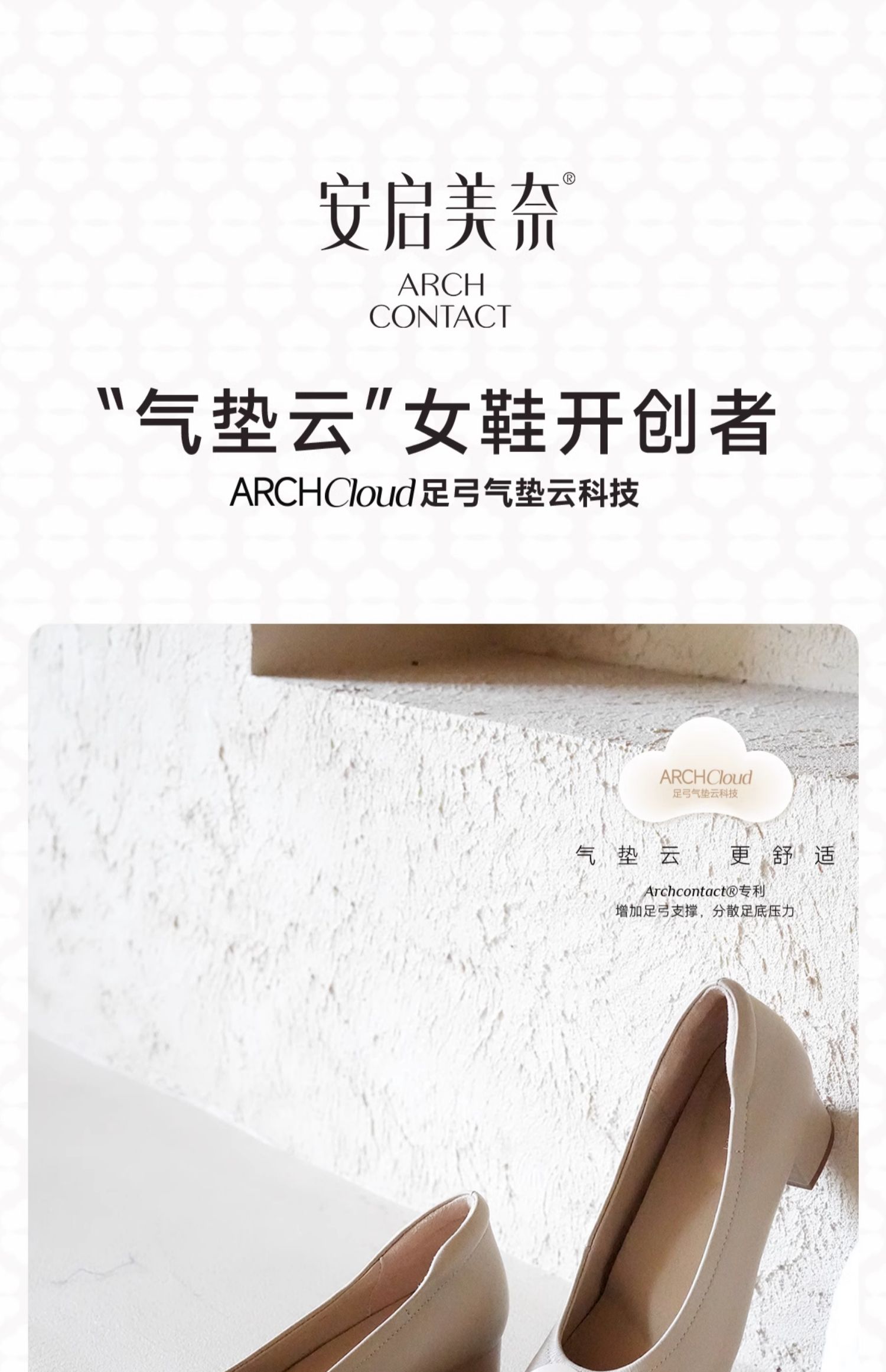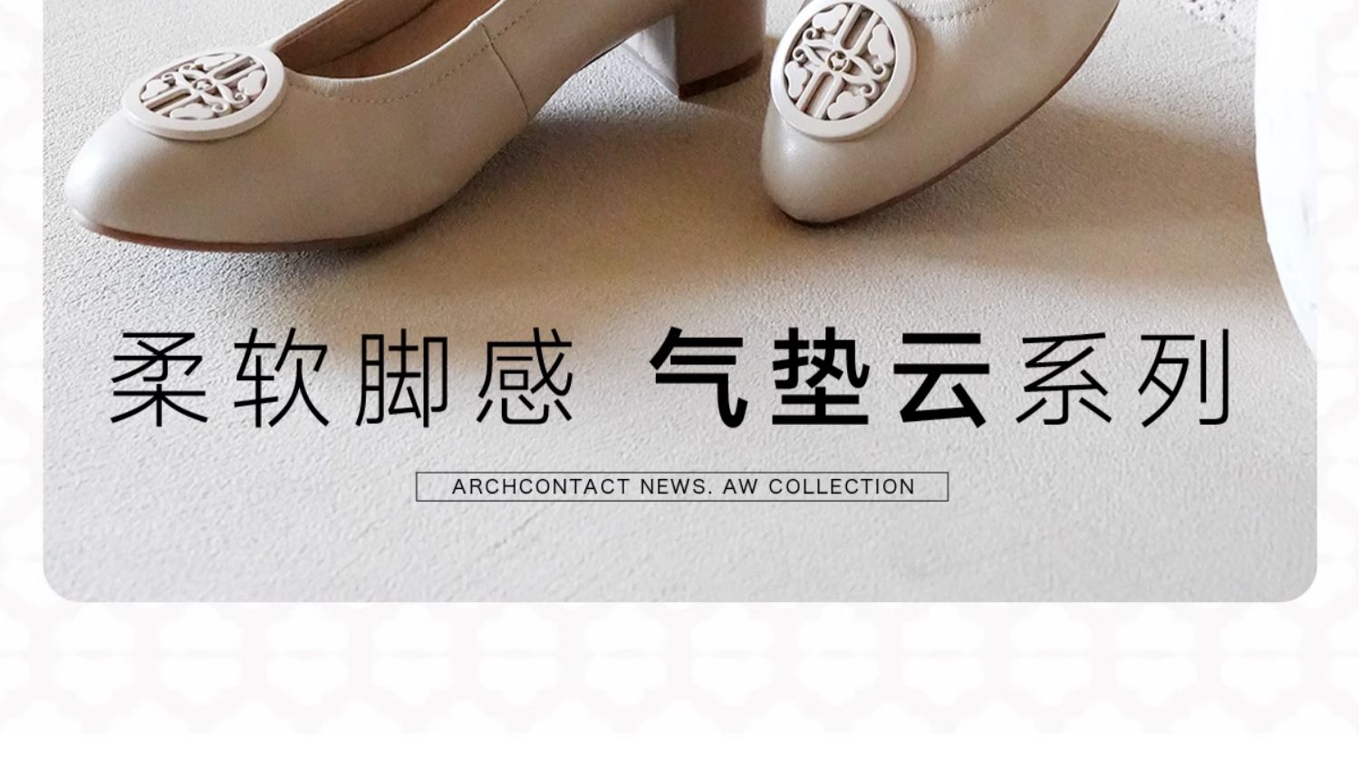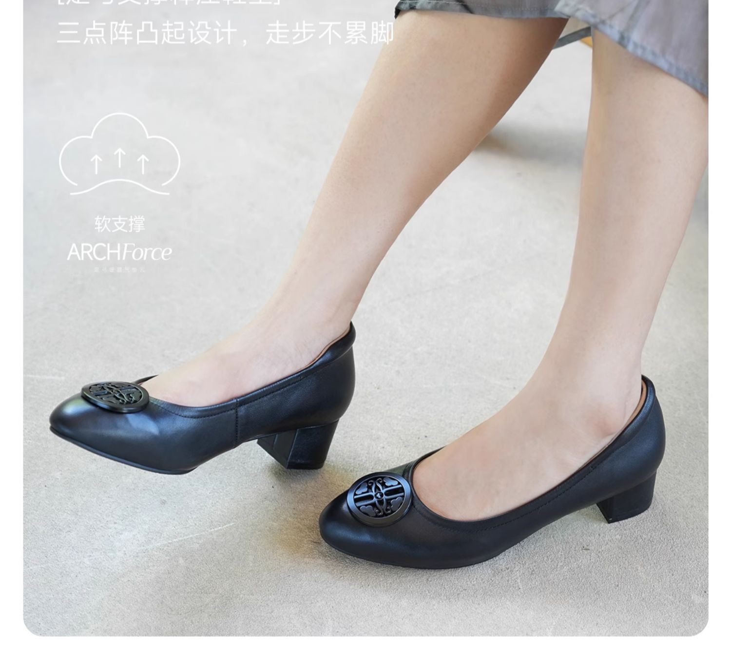ARCHCONTACT安启美奈气垫云百搭十字花圆头方跟低跟羊皮鞋52954