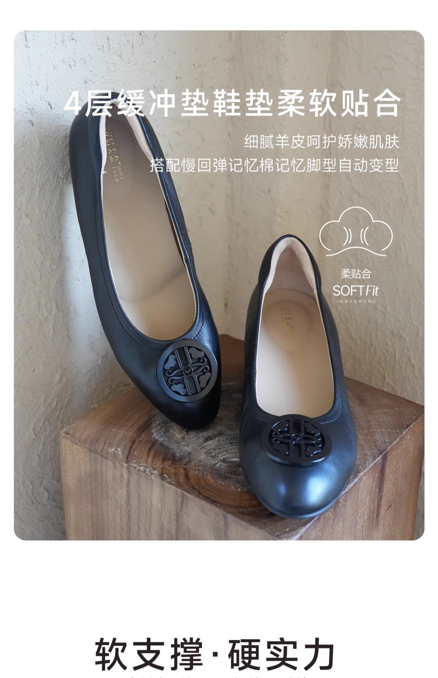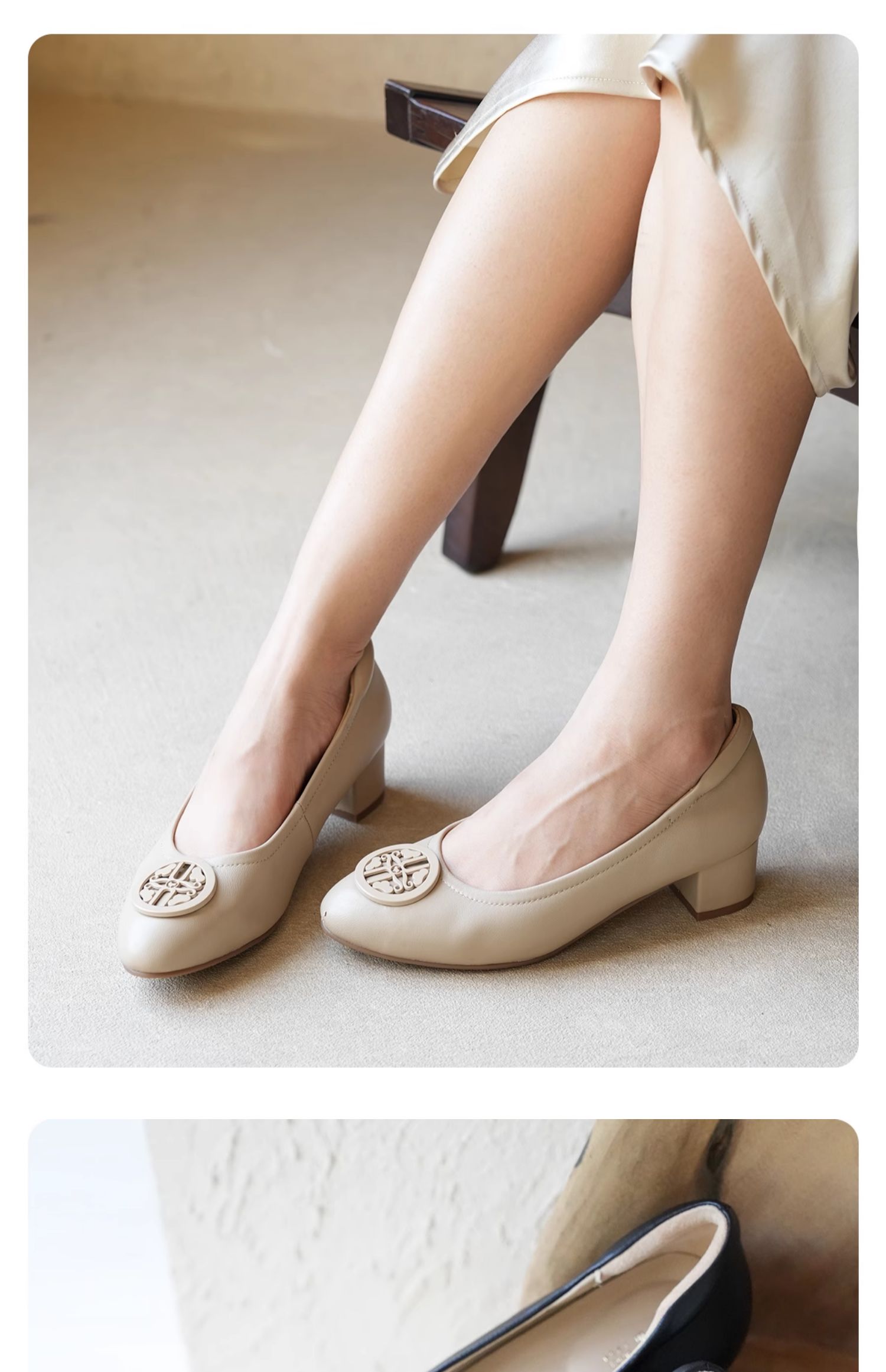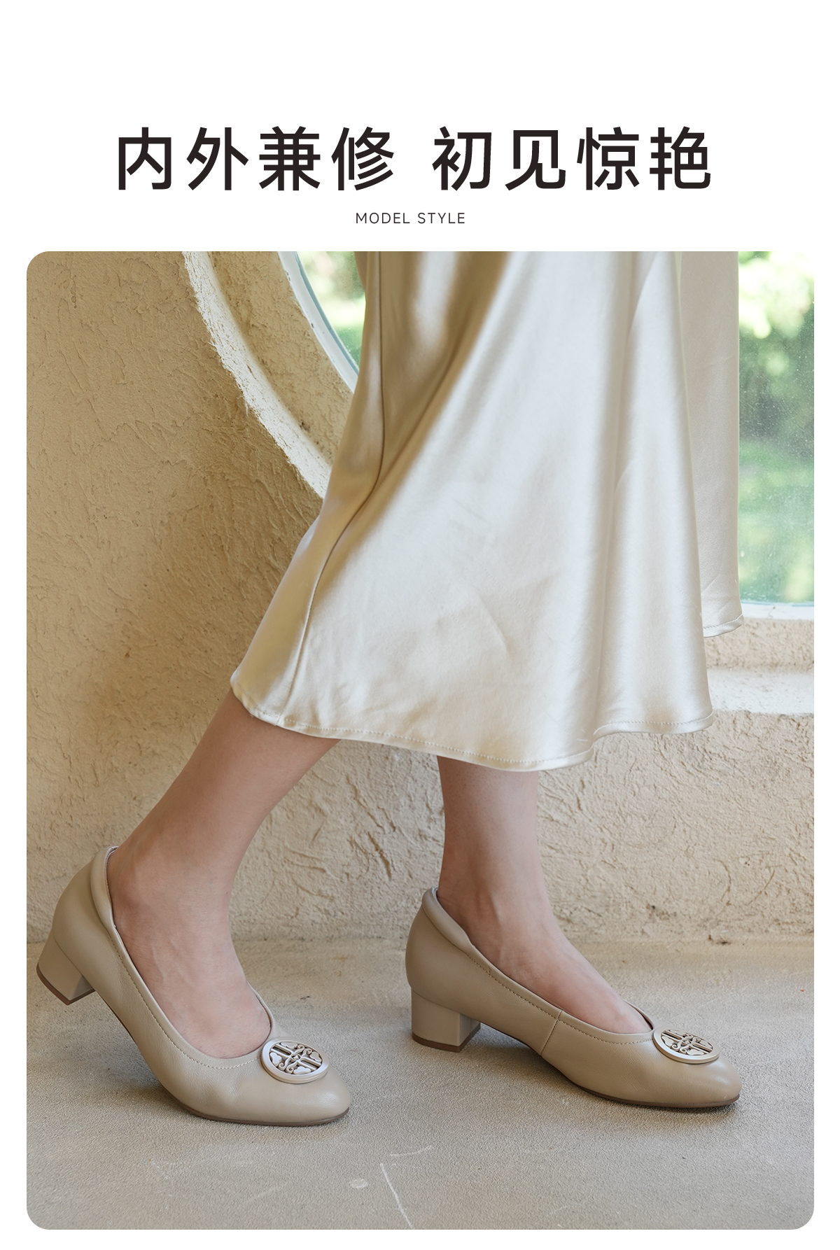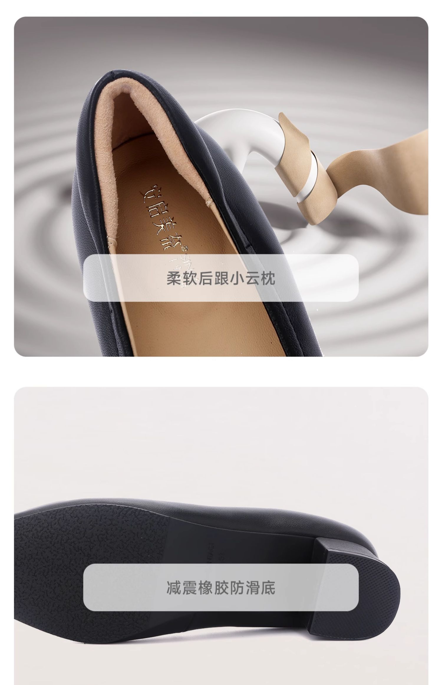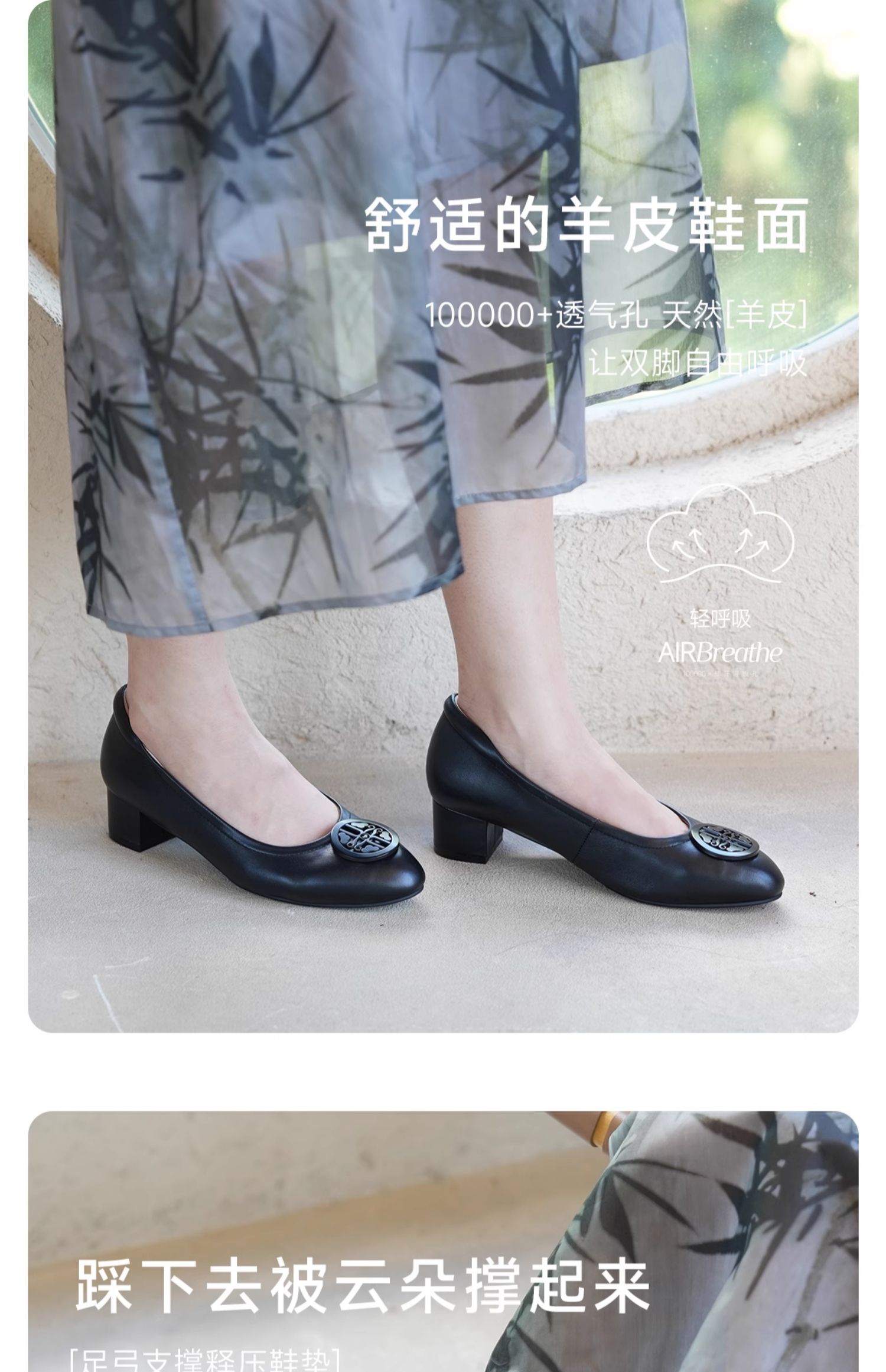 ARCHCONTACT安启美奈气垫云百搭十字花圆头方跟低跟羊皮鞋52954