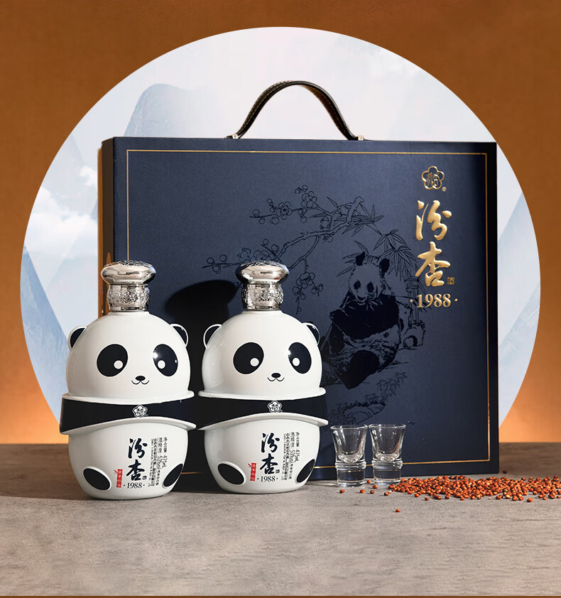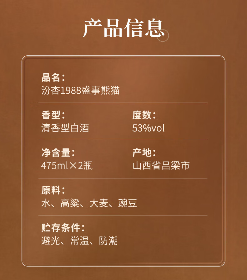 53度汾杏/1988酒·盛事熊猫 (双支)/浓香型475ml白酒