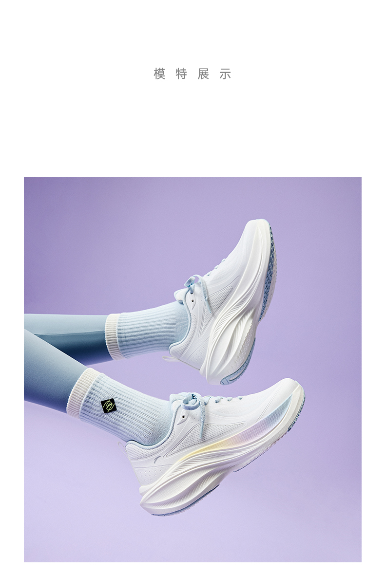 安踏女跑鞋缓震透气跑步鞋厚底增高跳绳鞋舒适运动鞋女 象牙白/幻景蓝122615536U-5