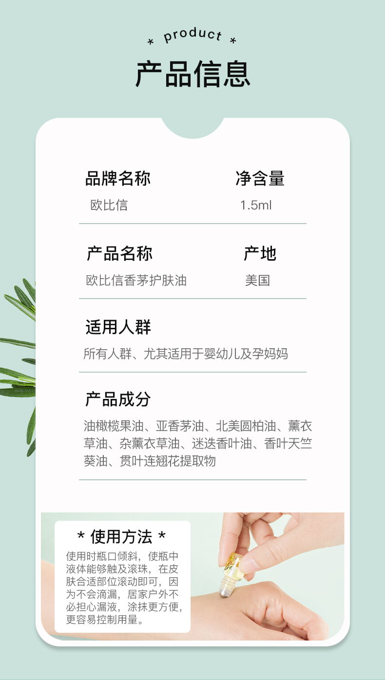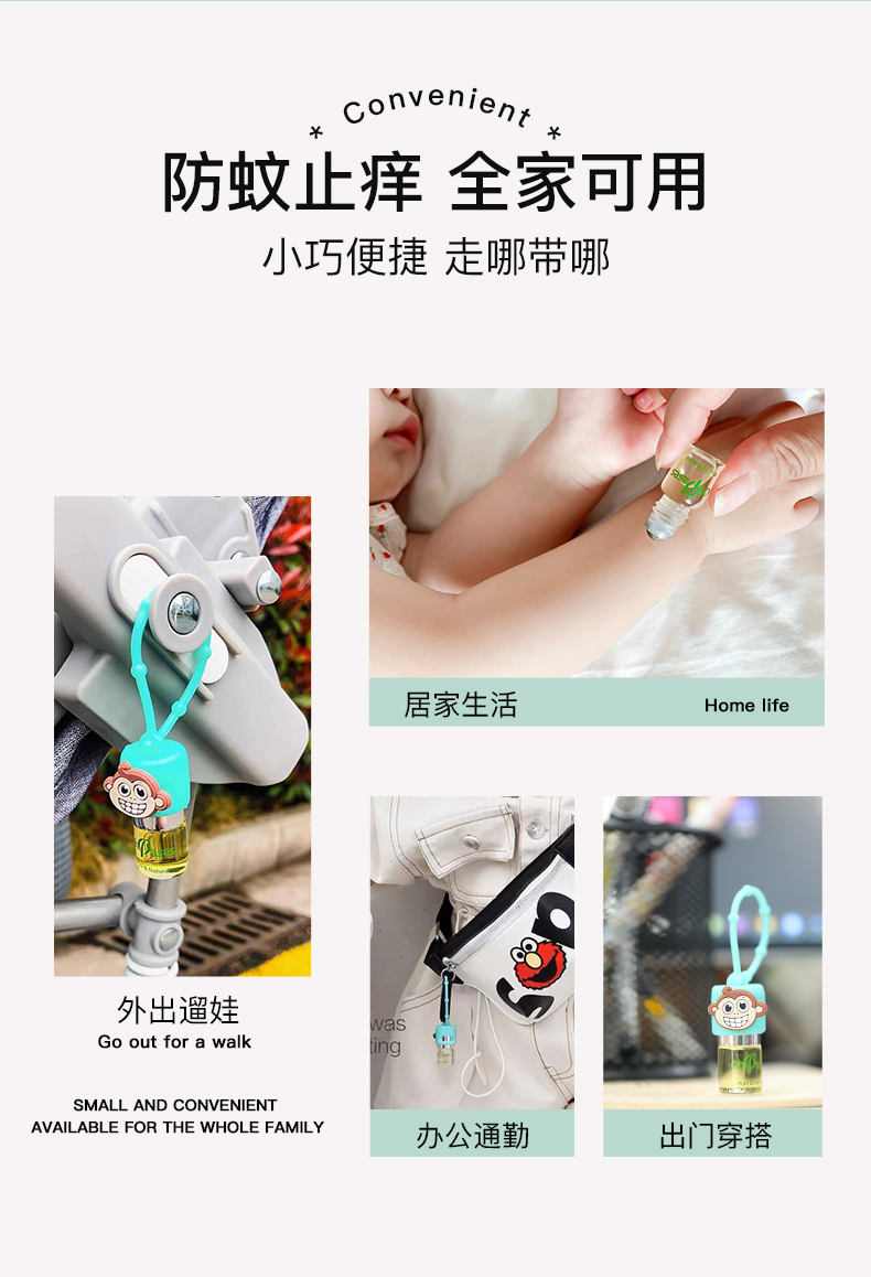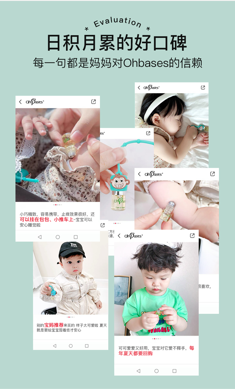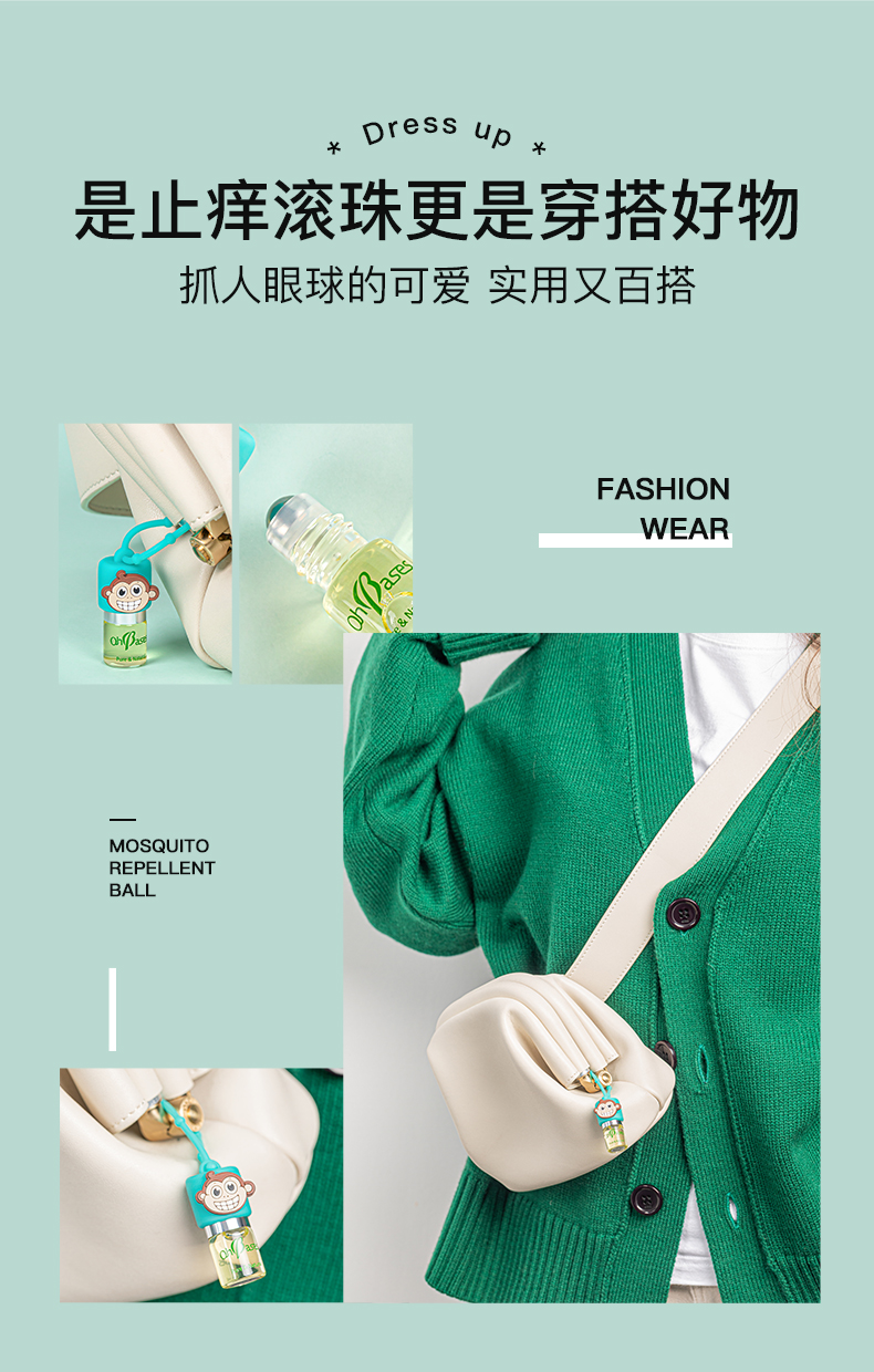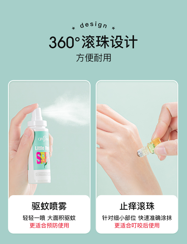 美国OhBases欧比信婴儿童驱蚊滚珠小绿珠走珠