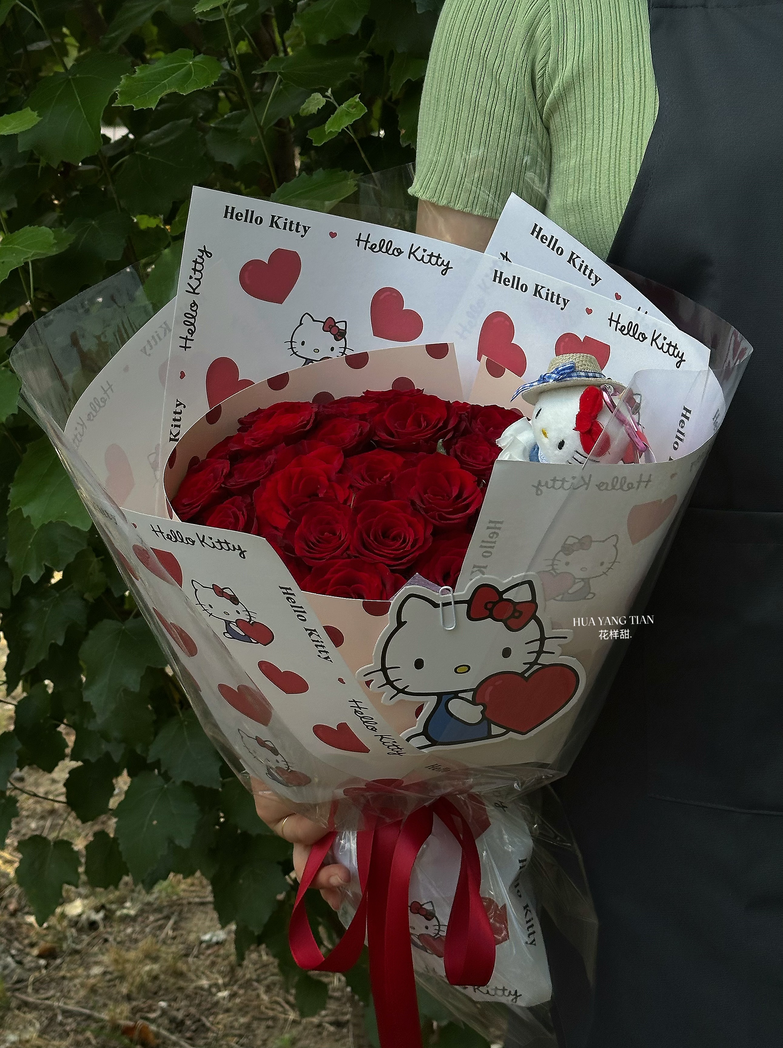 Hello Kitty 在花旁