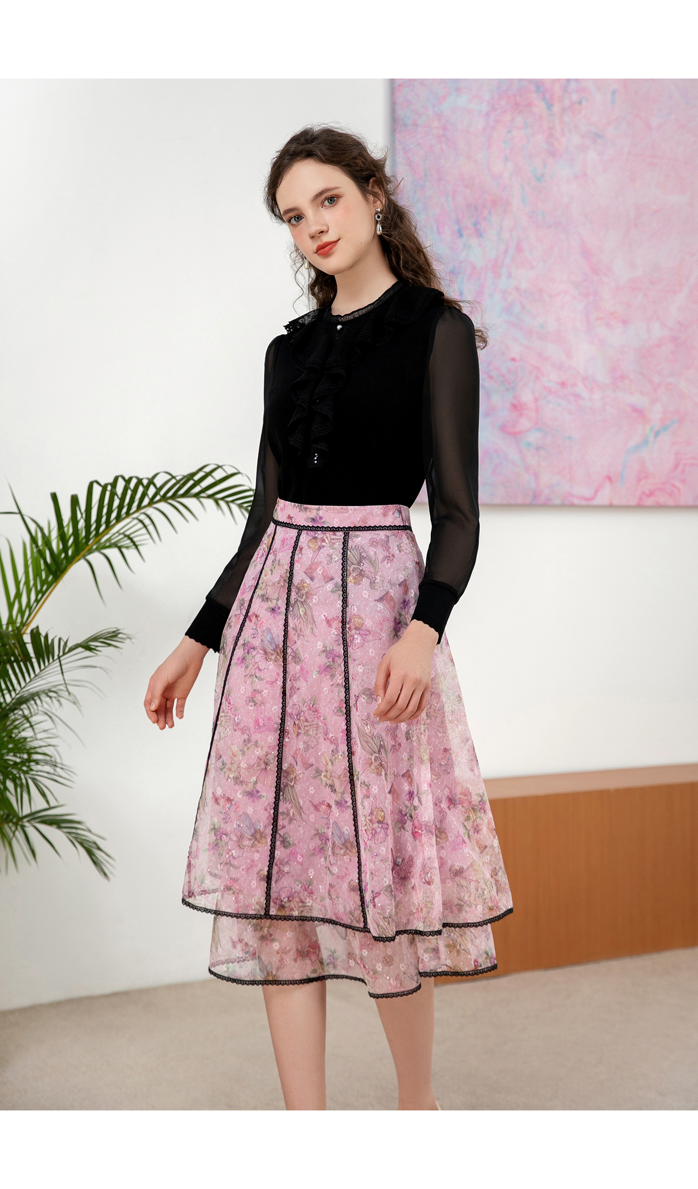 司歌网纱印花a字半裙碎花伞裙C901292X