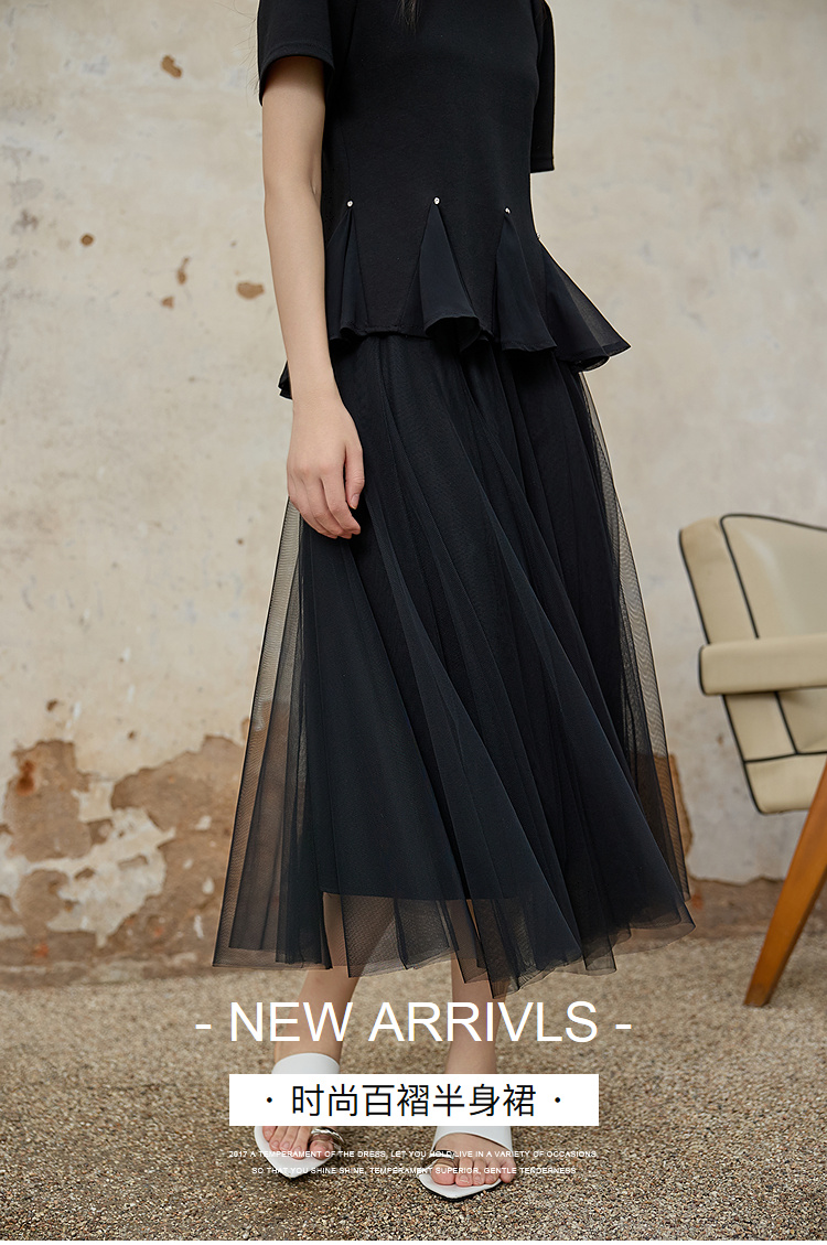 奢姿大码女装2025秋季时尚减龄网纱半身裙胖妹妹气质优雅百搭裙子9953453603B