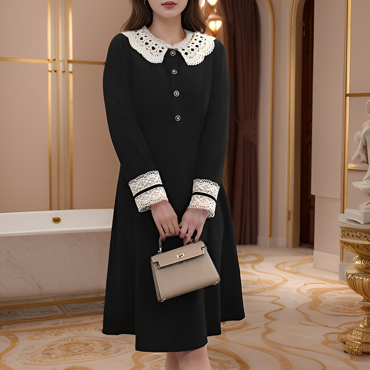 8/16奢姿大码女装2024秋季减龄娃娃领连衣裙胖妹妹复古花边时尚裙子9944826621