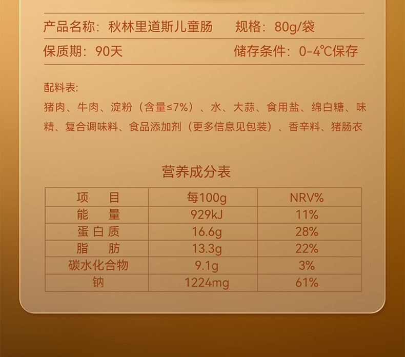 秋林里道斯 哈尔滨红肠 儿童肠80/支 早餐瘦肉肠 蒜香烤肠 地道东北味 正宗俄式香肠不含肥肉