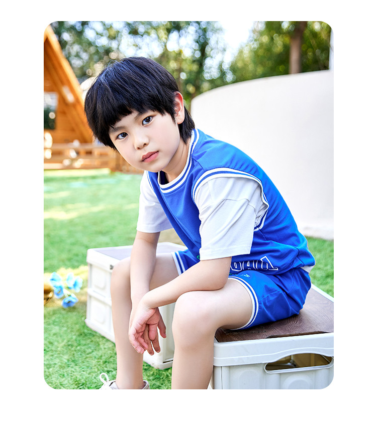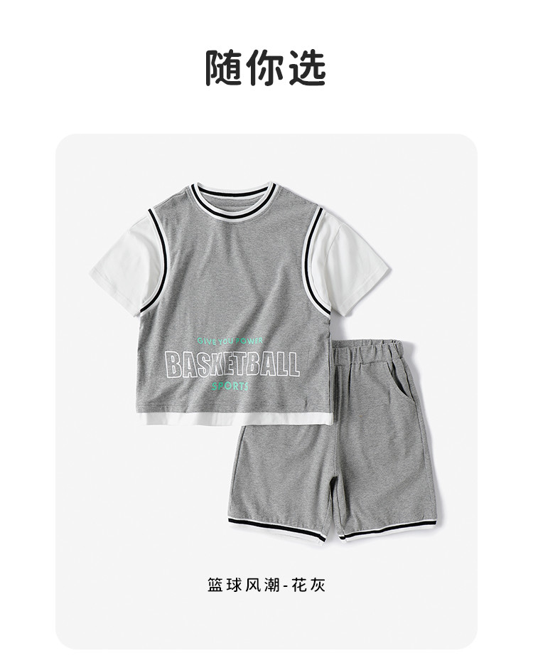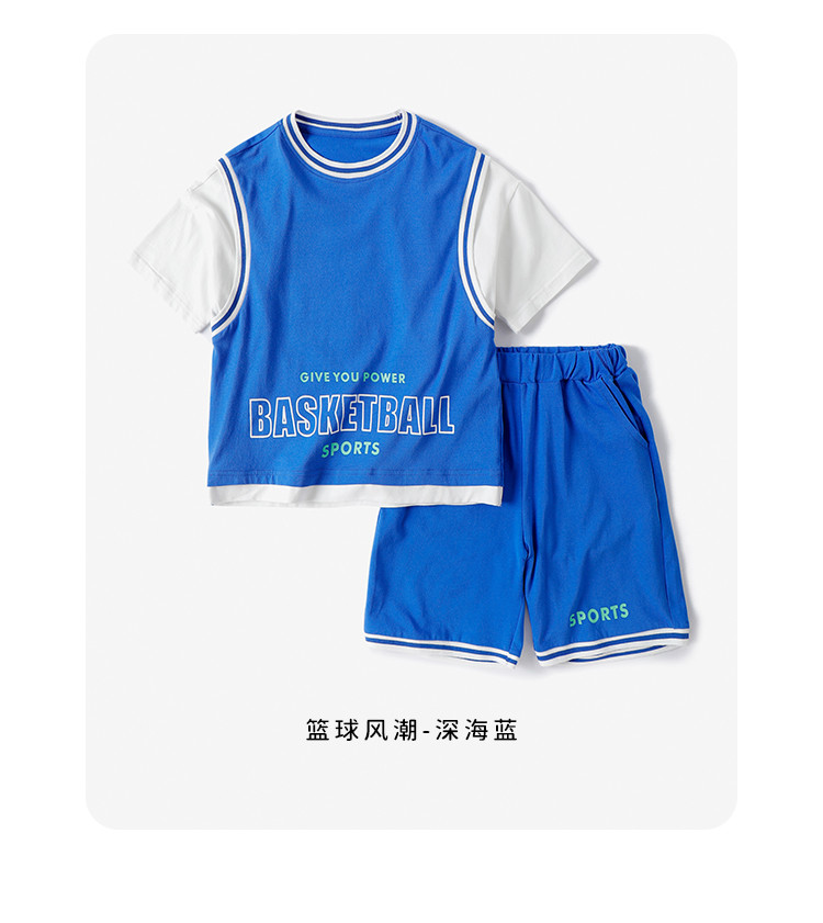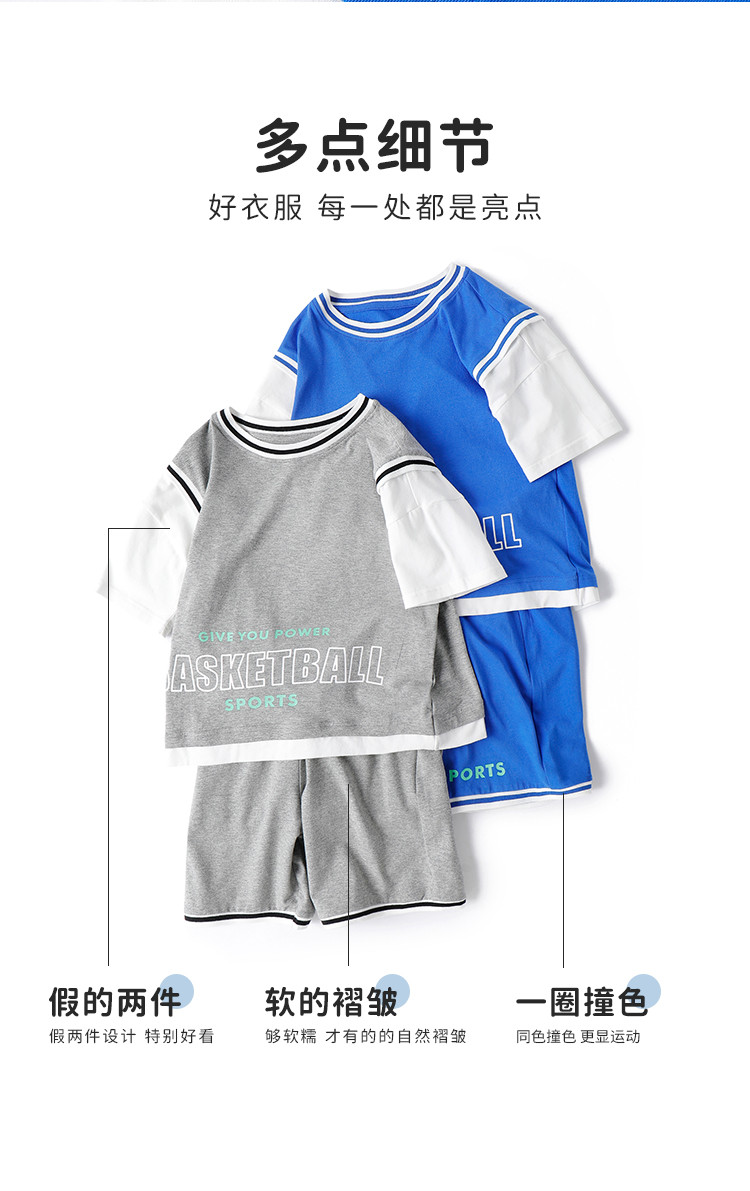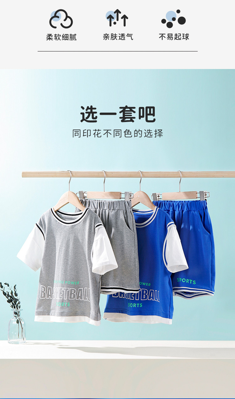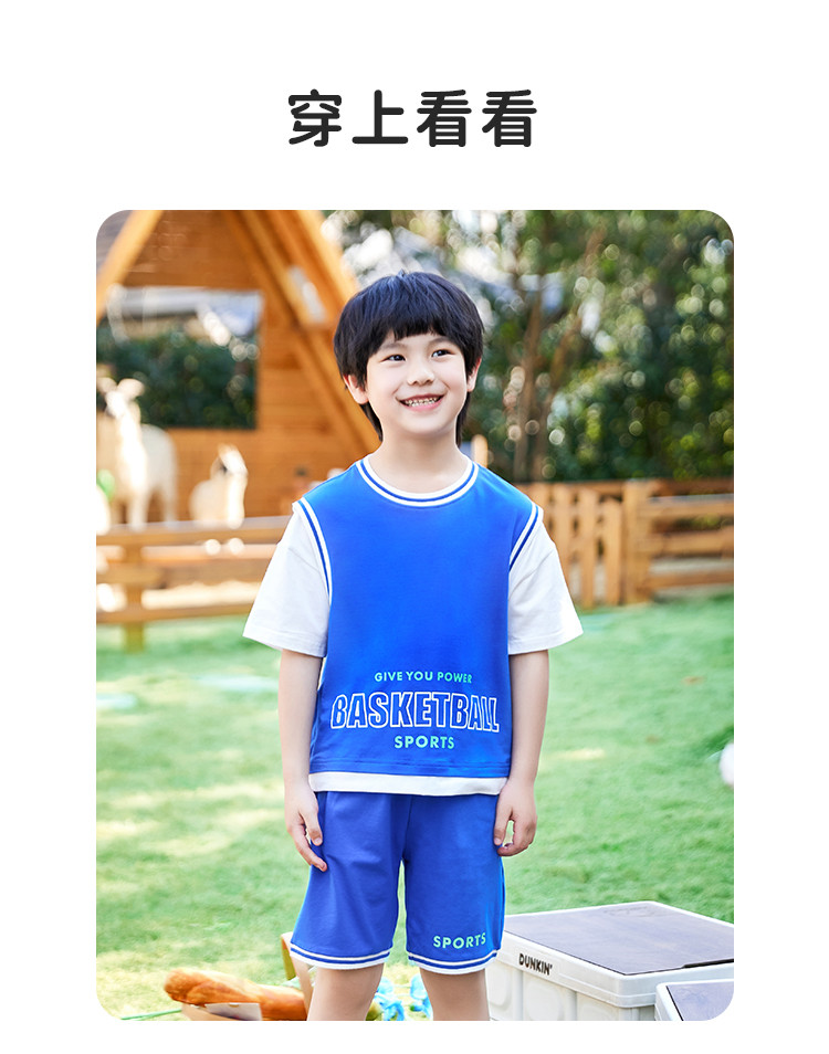 【假两件套装】【120-160】中大童男童夏款时尚运动套装俞兆林95%棉5%氨纶