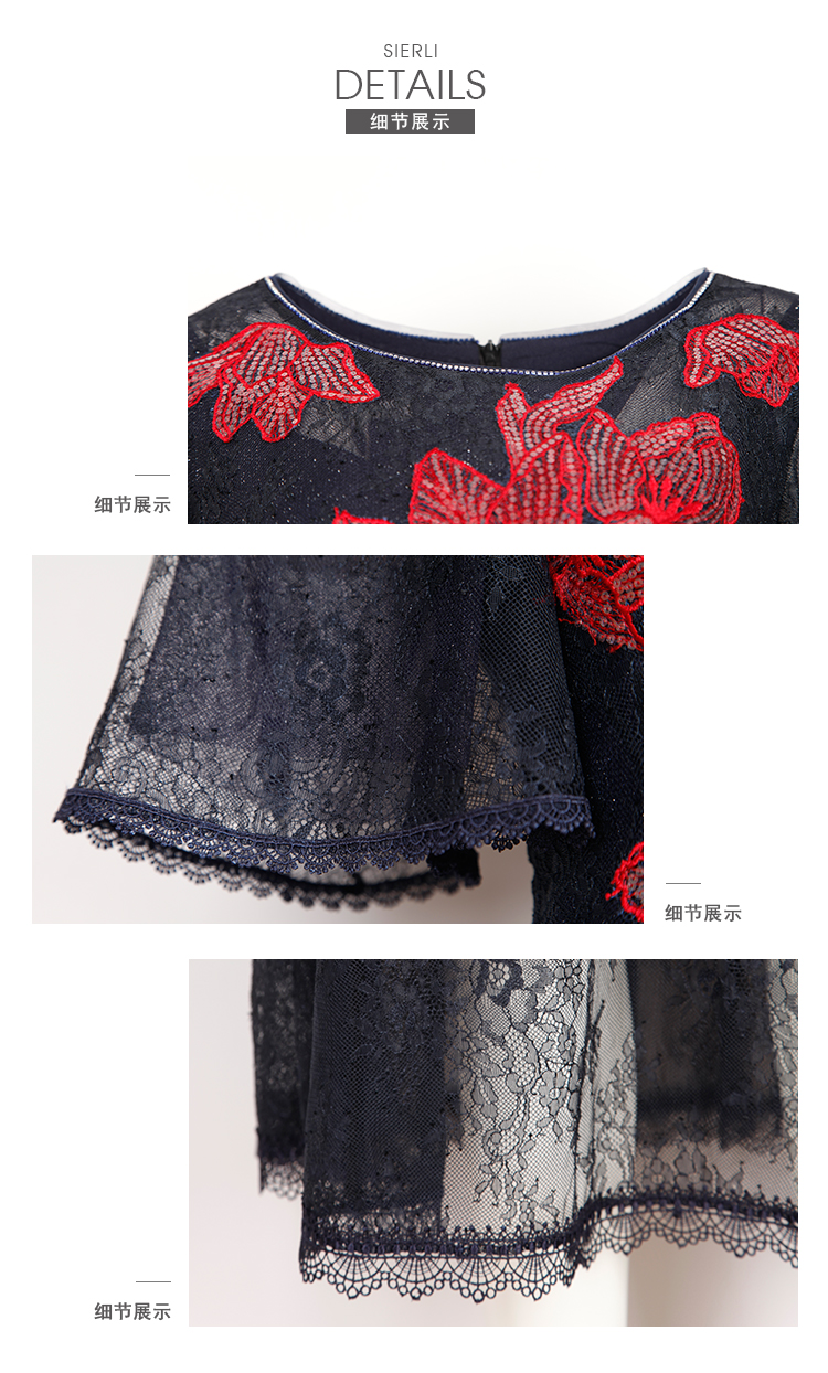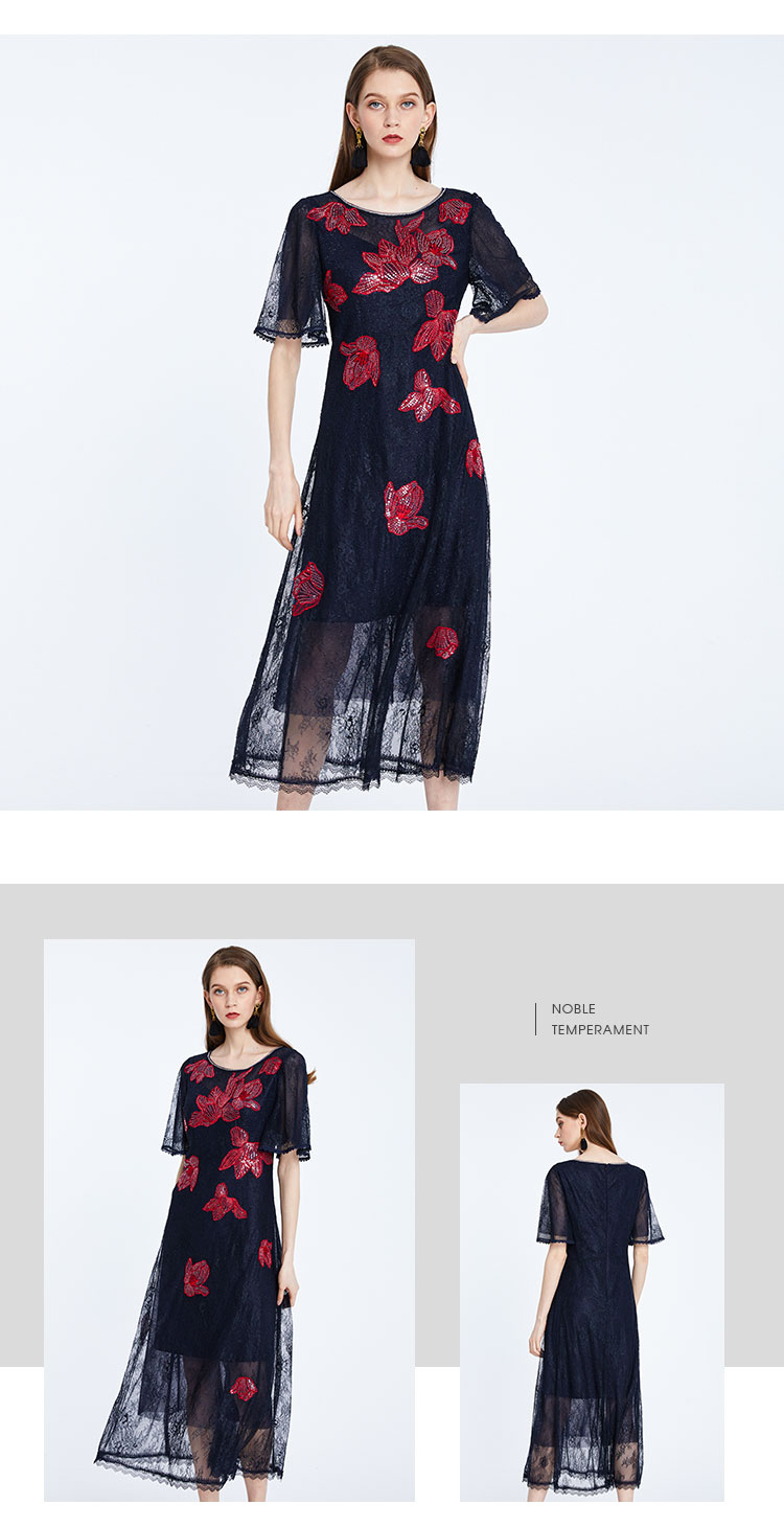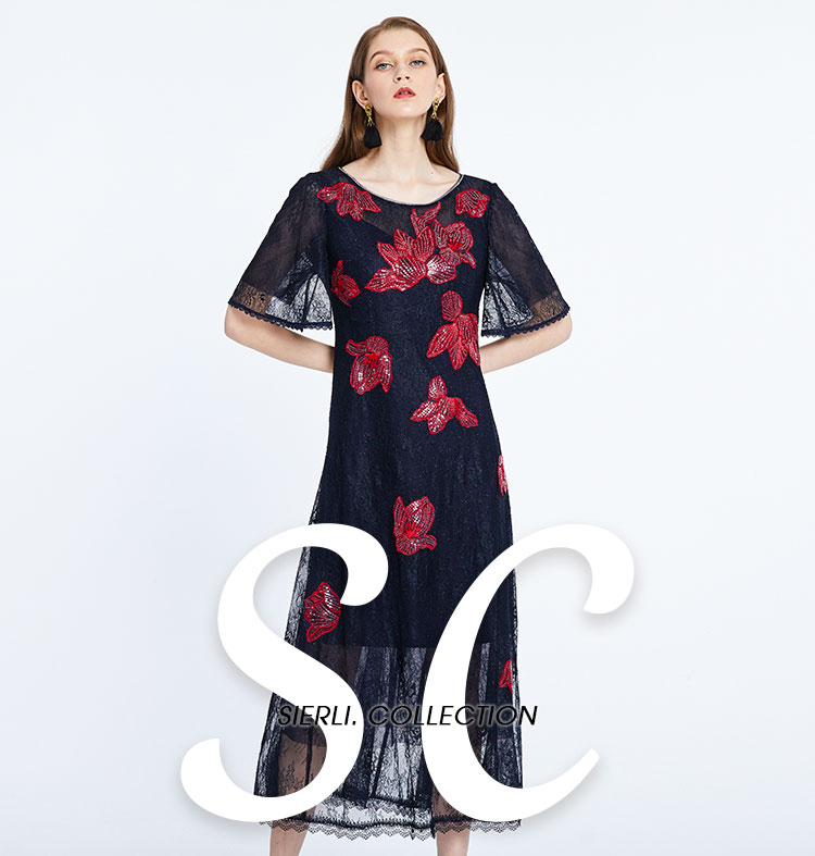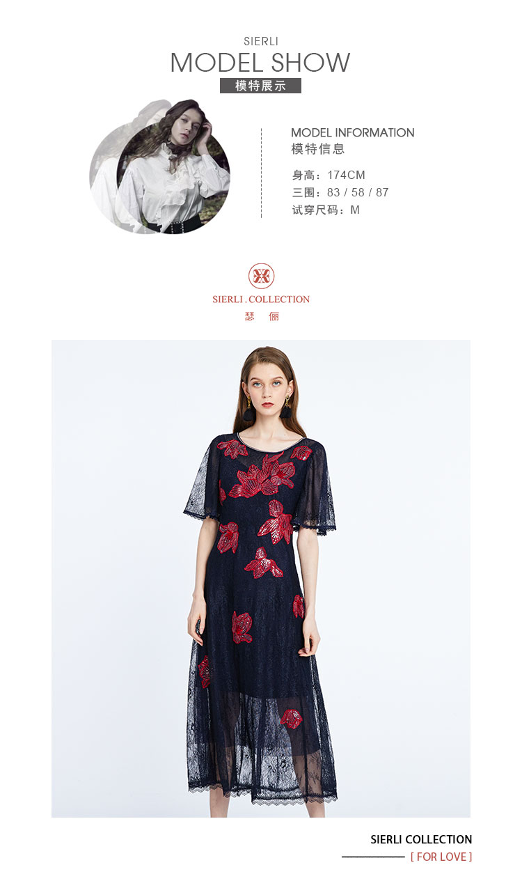 PG8A1斯尔丽2021年春季新品女人味定位亮片贴花蕾丝连衣裙