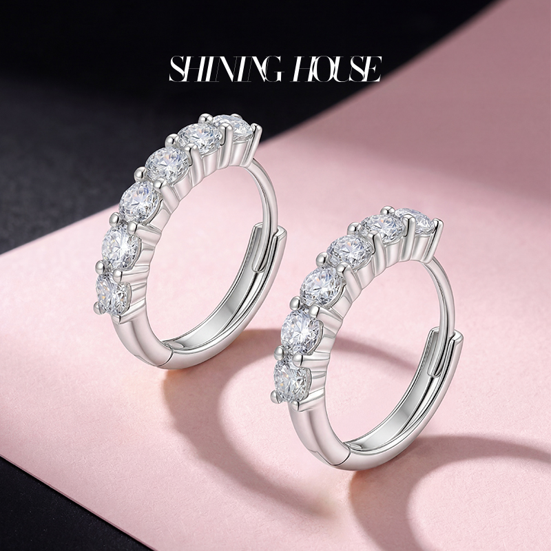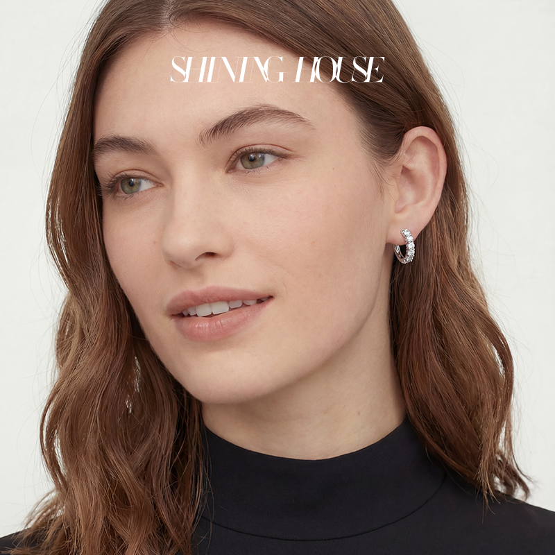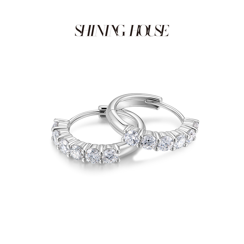 【预售】ShiningHouse[培育] 18k金钻石耳饰 圆钻形人工真钻人造钻石K金耳圈排钻耳环时尚钻石耳饰耳环悦己送礼臻选【此商品不支持7天无理由退货退款】预计3日发货