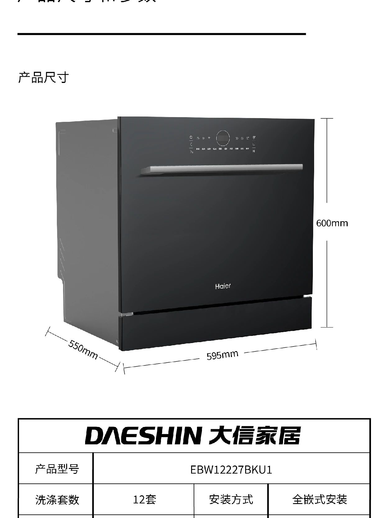 海尔12套洗碗机12227BKU