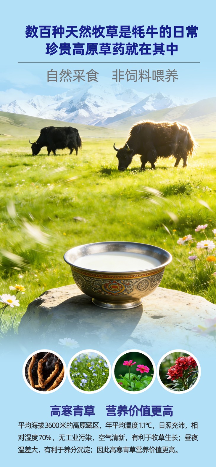 ✅ 奶源硬实力:来自四川阿坝红原3600米有机牧场,麦洼牦牛是国家地理标志品种,全程自然散养,只取牦牛宝宝喝饱后的30%余奶