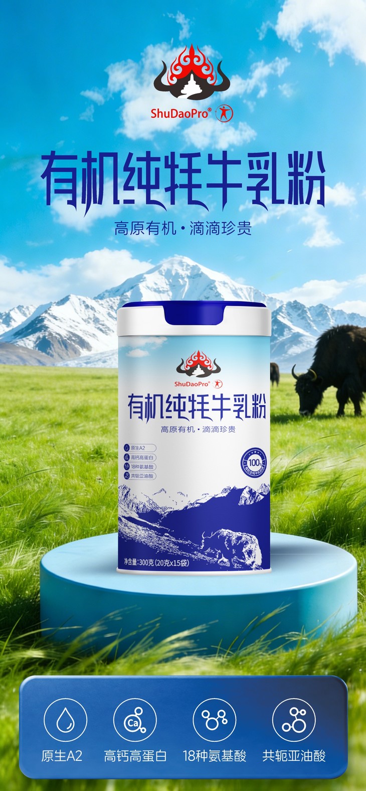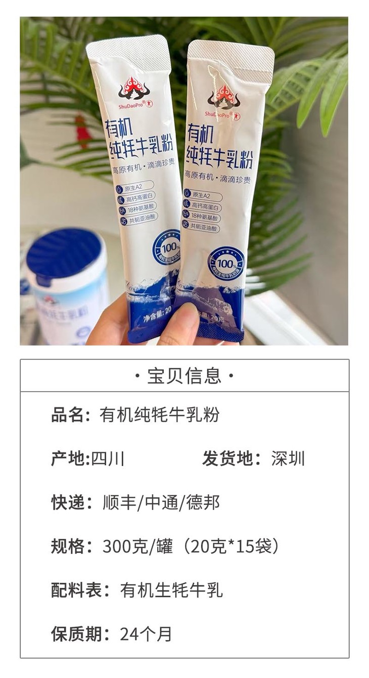 【舒导有机纯牦牛乳粉】4.6倍高钙、2.3倍高蛋白,真正的0添加有机好奶,来自海拔3600米红原大草原的,获得中、美、欧三大有机认证,配料只有有机生牦牛乳,0添加、0激素、0药残,给孩子喝也放心。