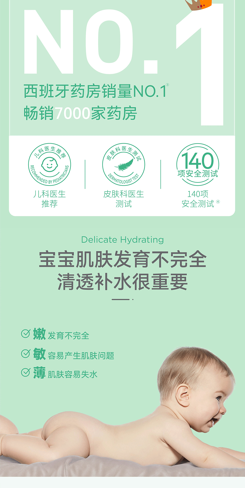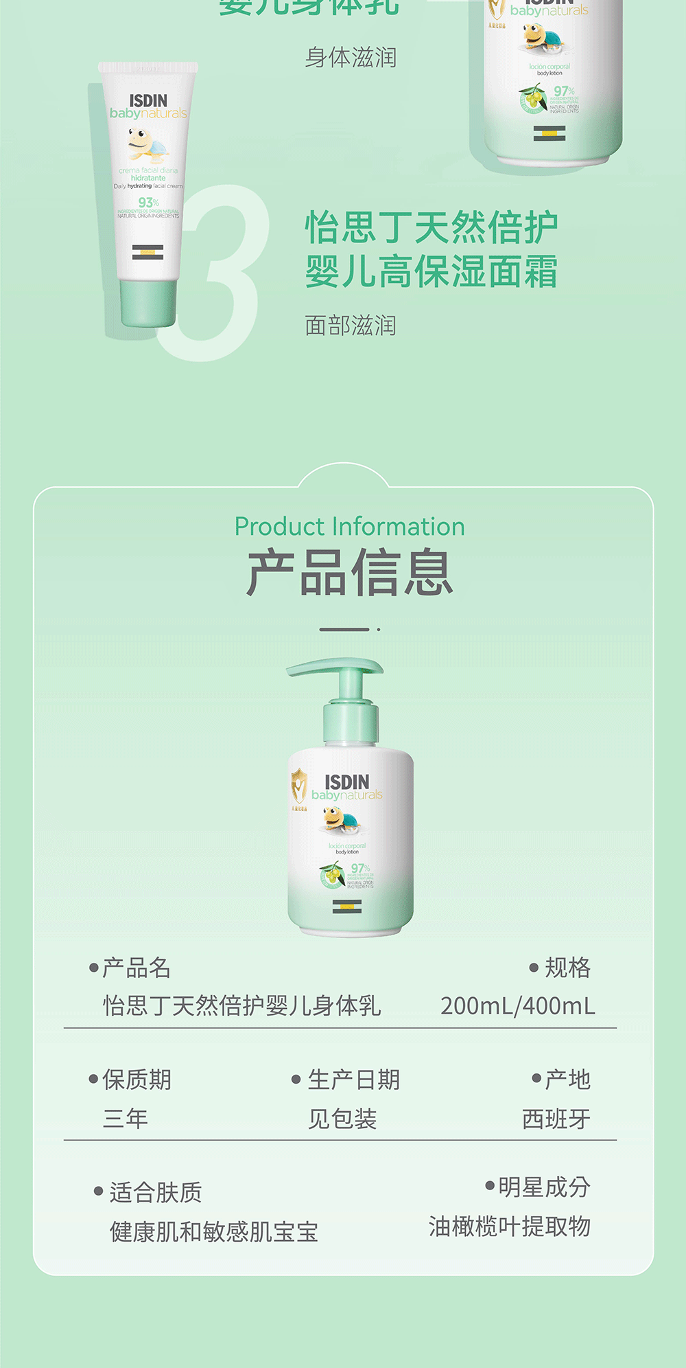 【一般贸易】怡思丁宝宝西班牙天然倍护新生婴儿童补水保湿滋润身体乳200ml