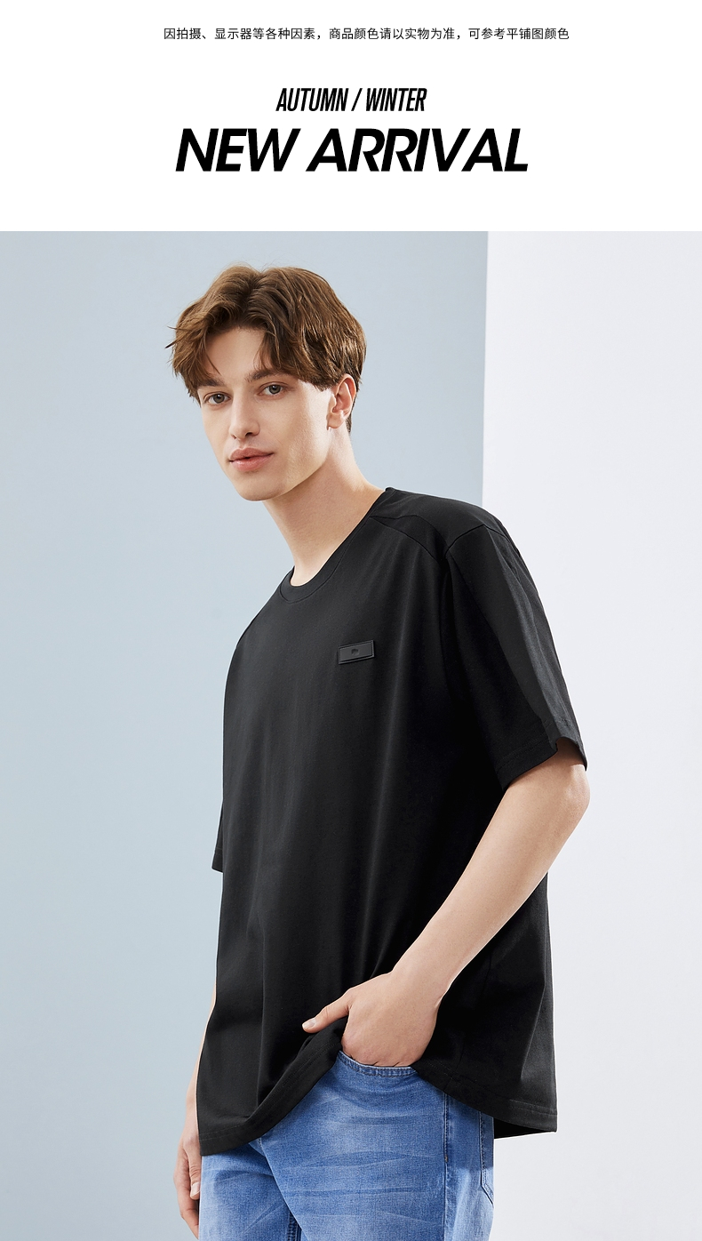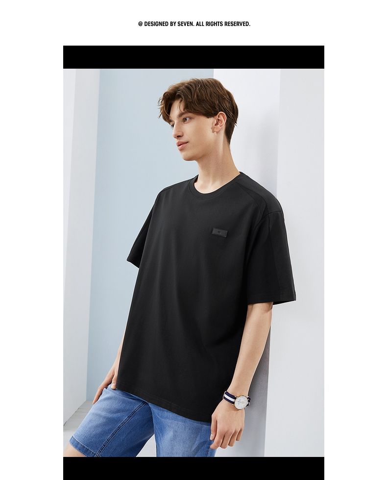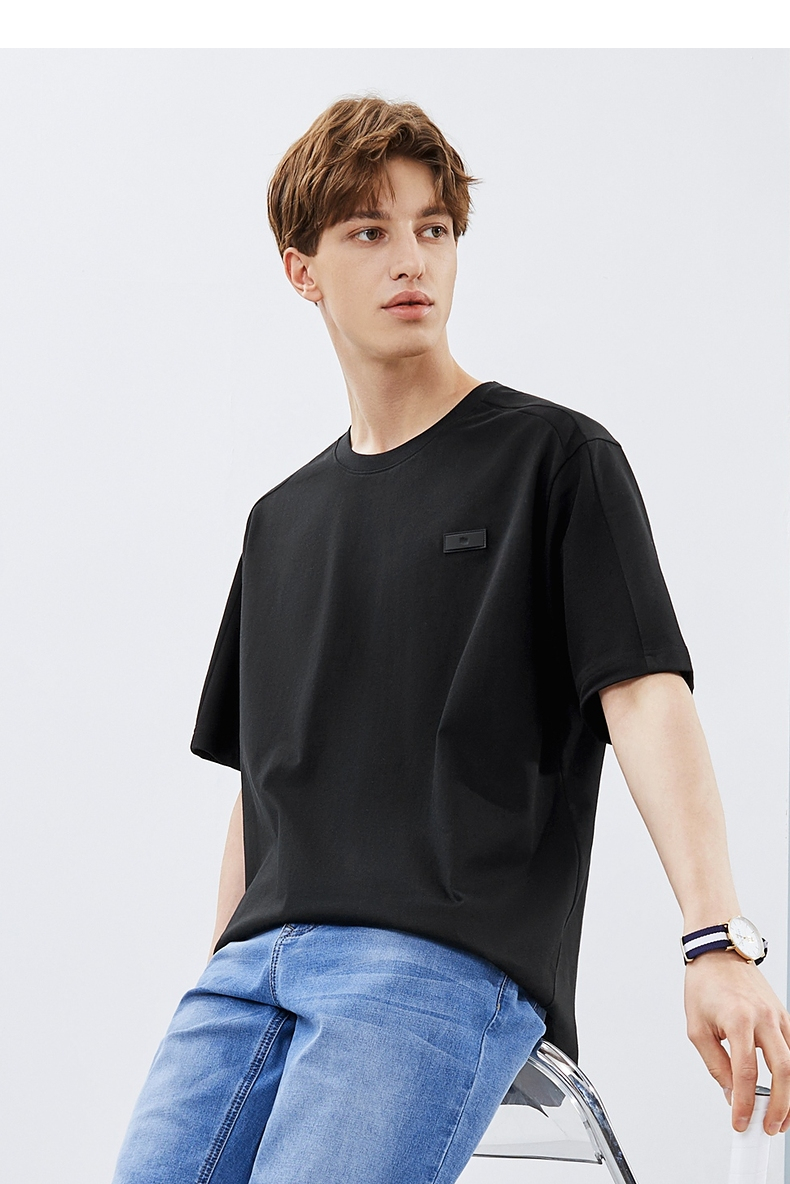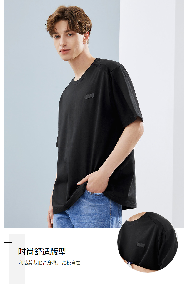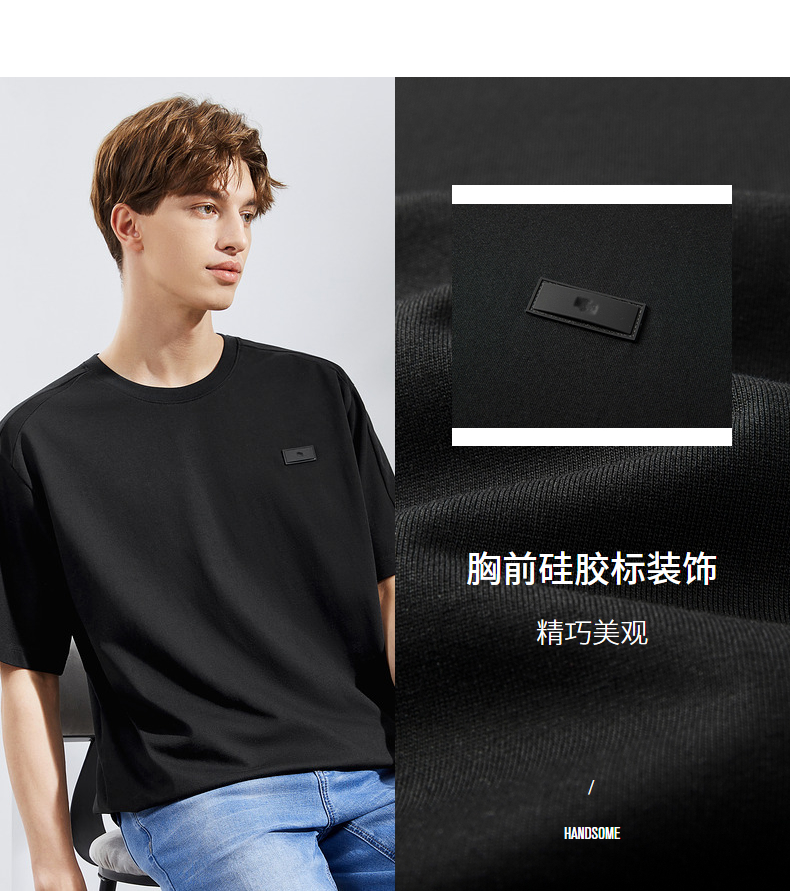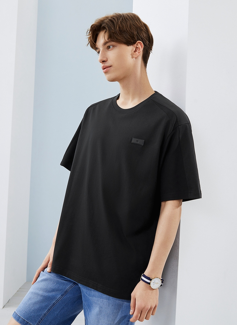 柒牌短袖T恤男夏季新款时尚青年休闲宽松男士黑色圆领体恤衫 124T71480