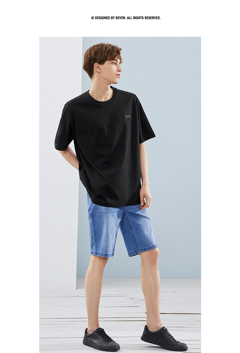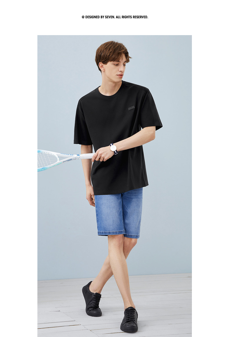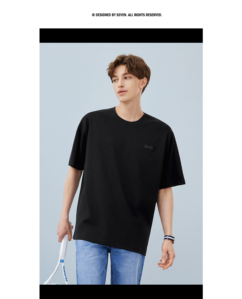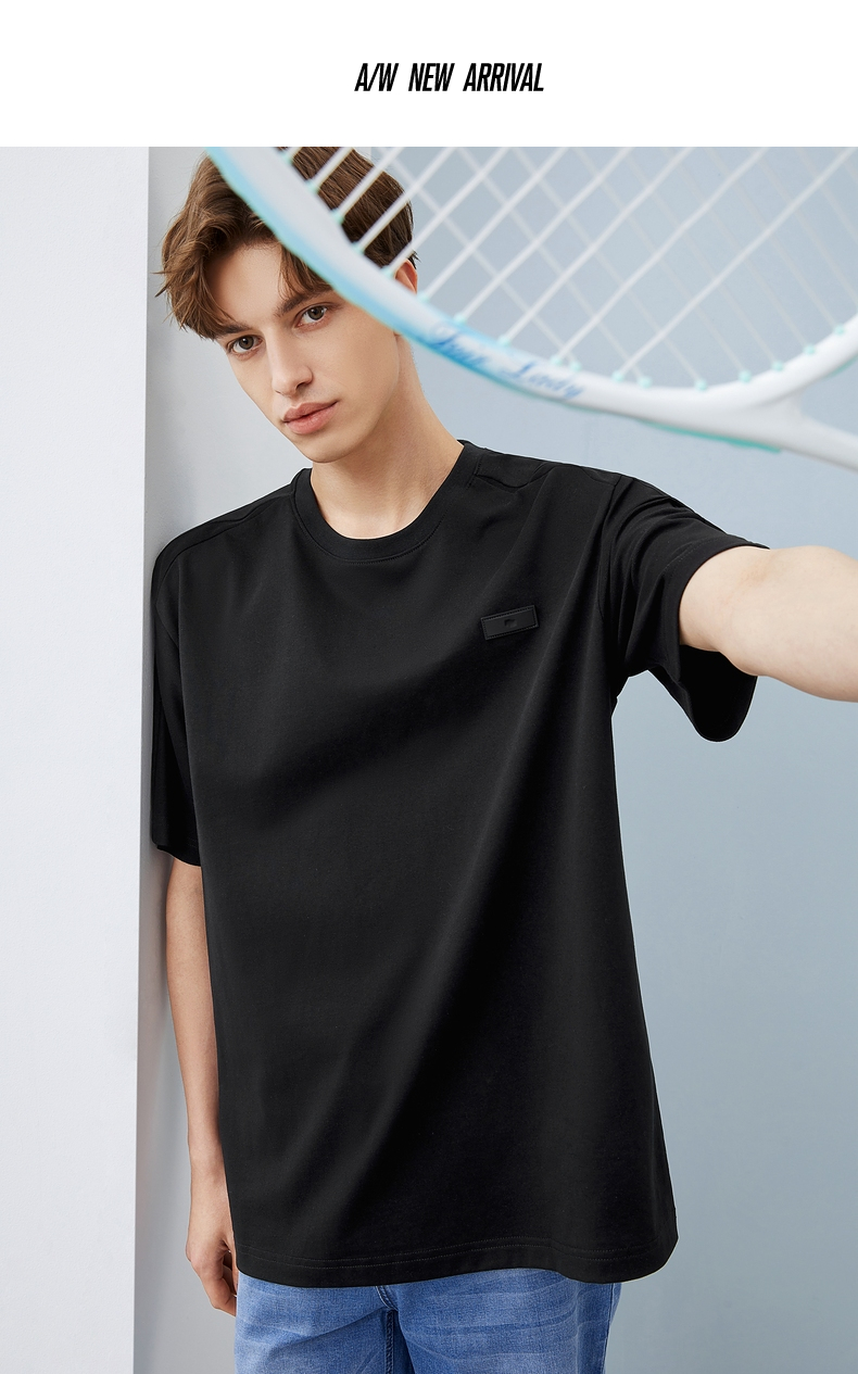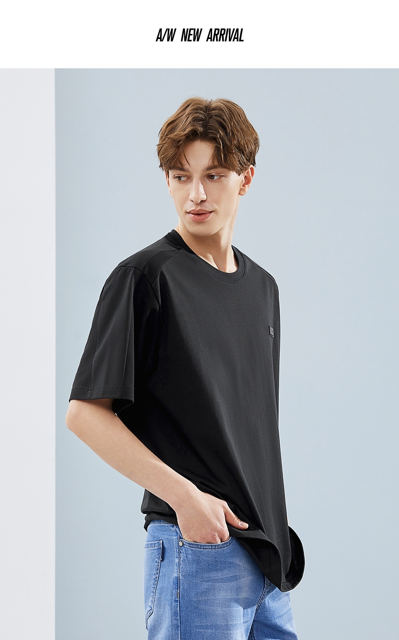 柒牌短袖T恤男夏季新款时尚青年休闲宽松男士黑色圆领体恤衫 124T71480