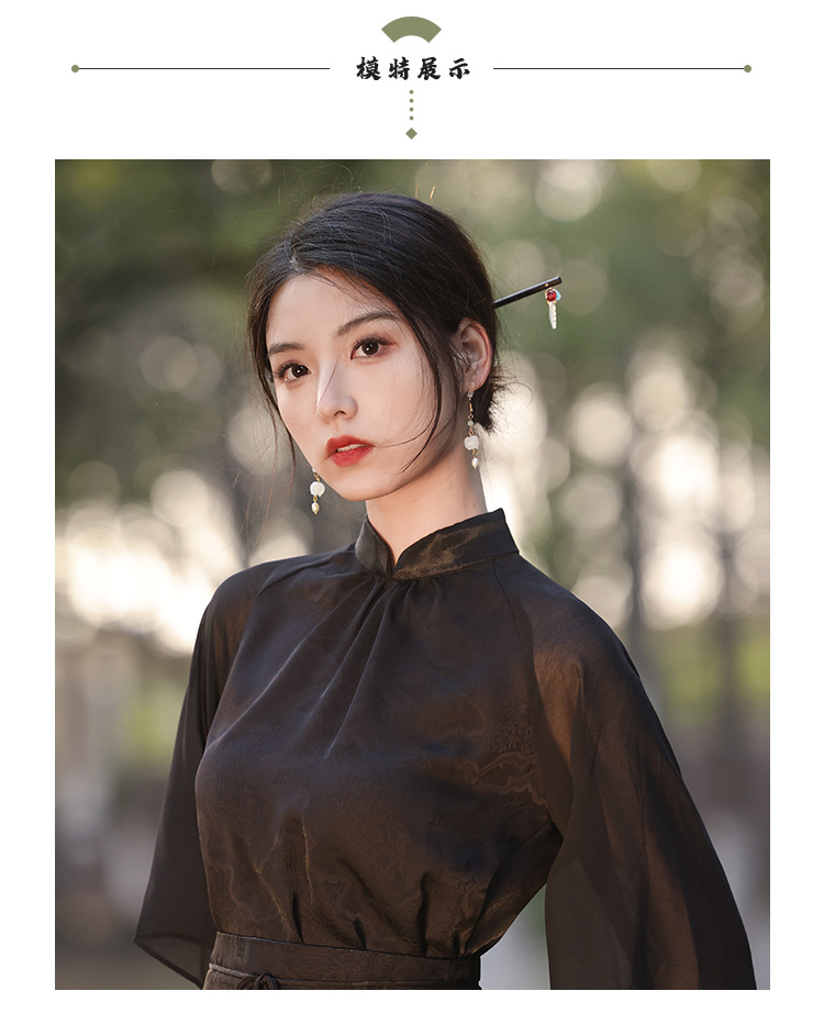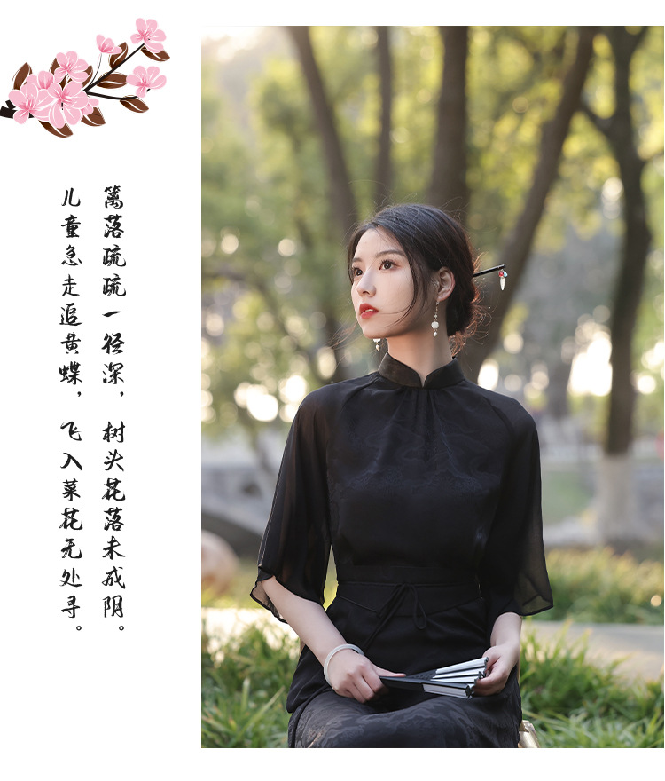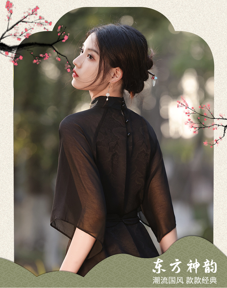 中式改良旗袍上衣女春秋中国风复古立领气质盘扣印花刺绣长袖衬衫 YX2051
