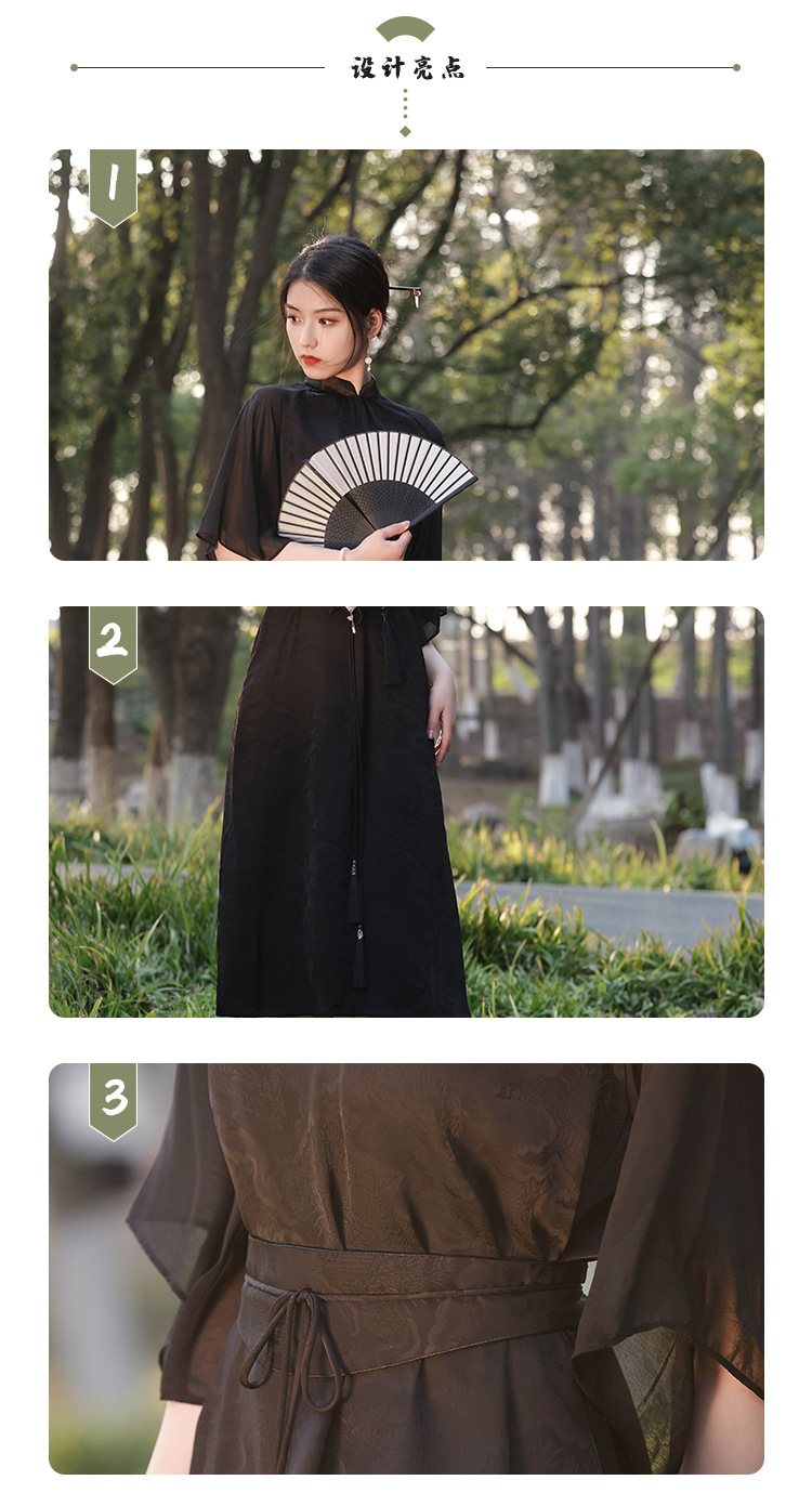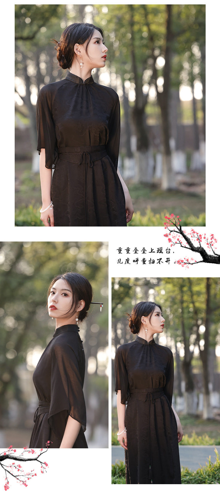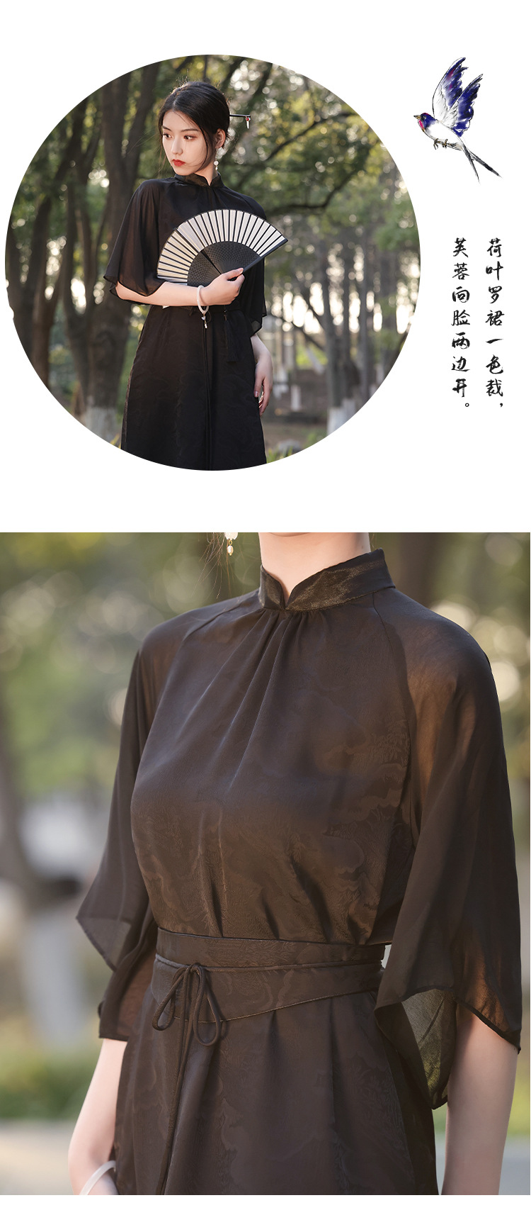 新款改良宽松连衣裙,中长款腰封私服花萝双层拼接插肩袖JLM-2278