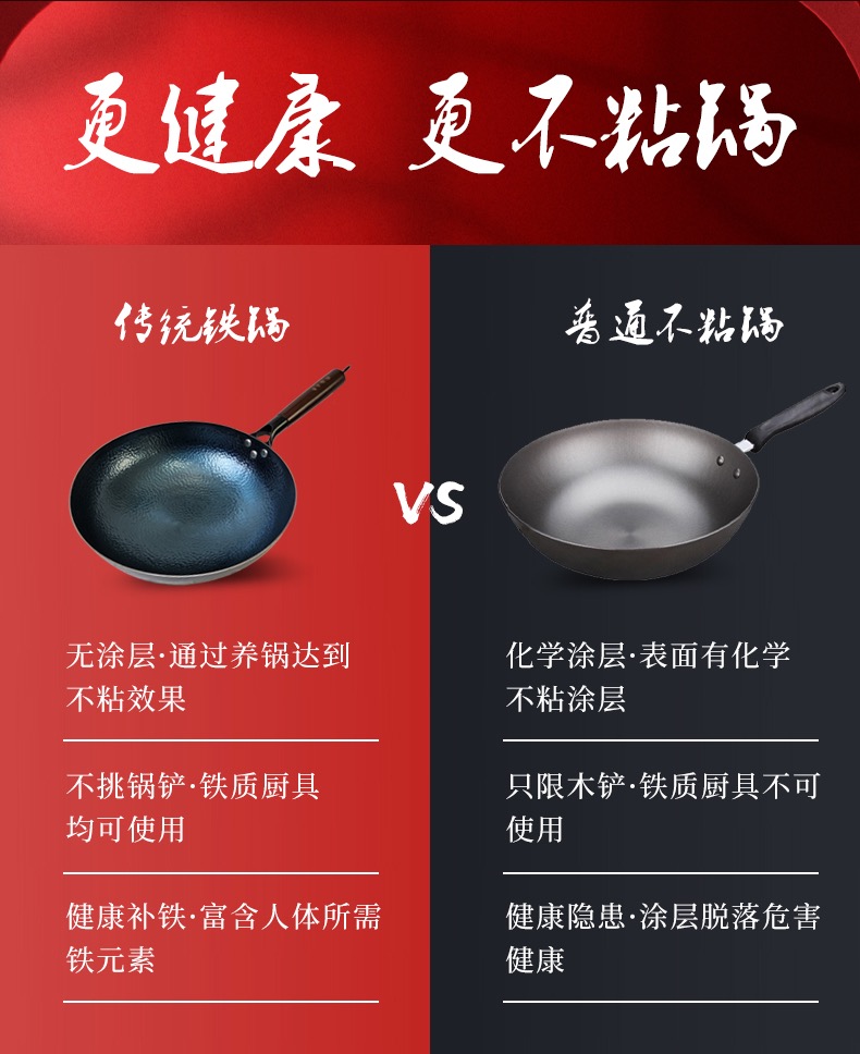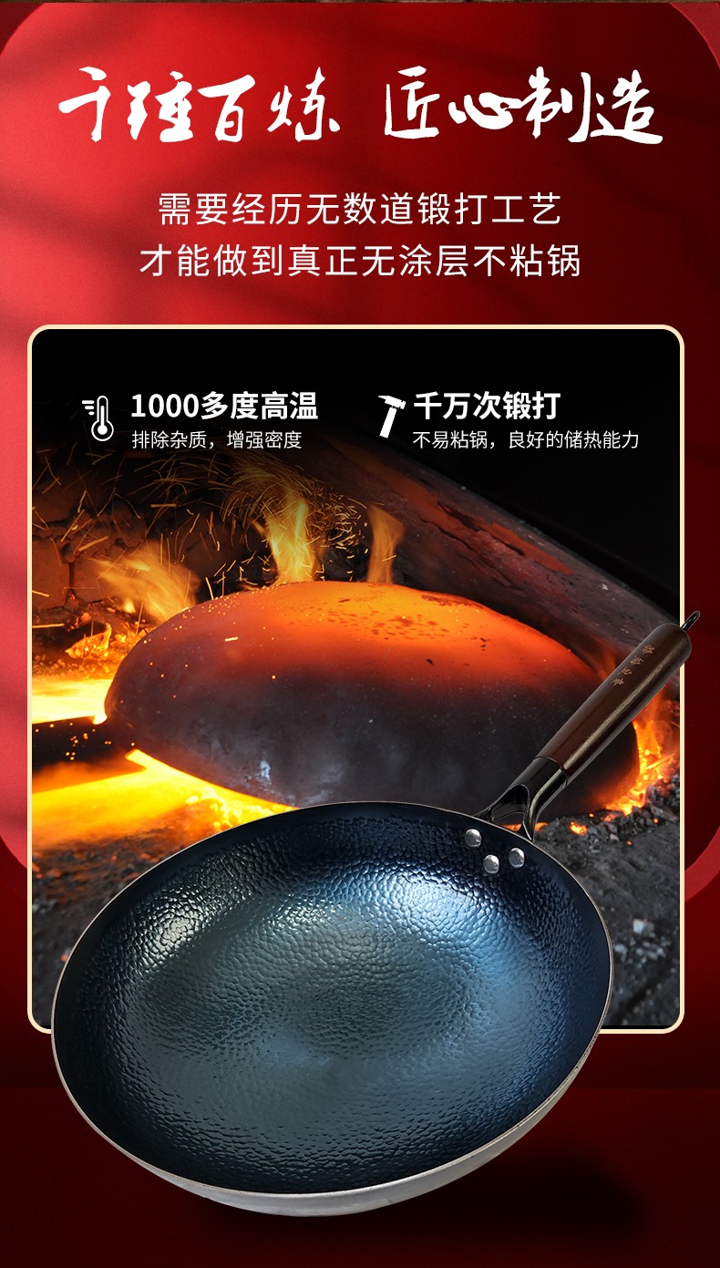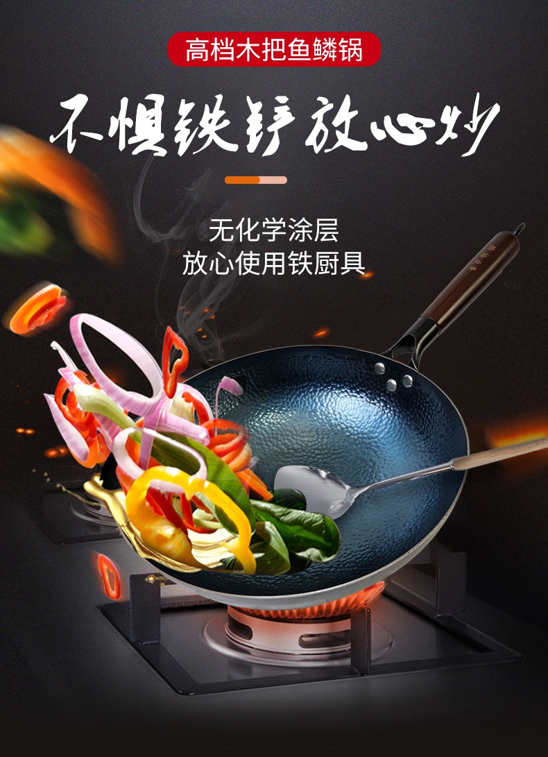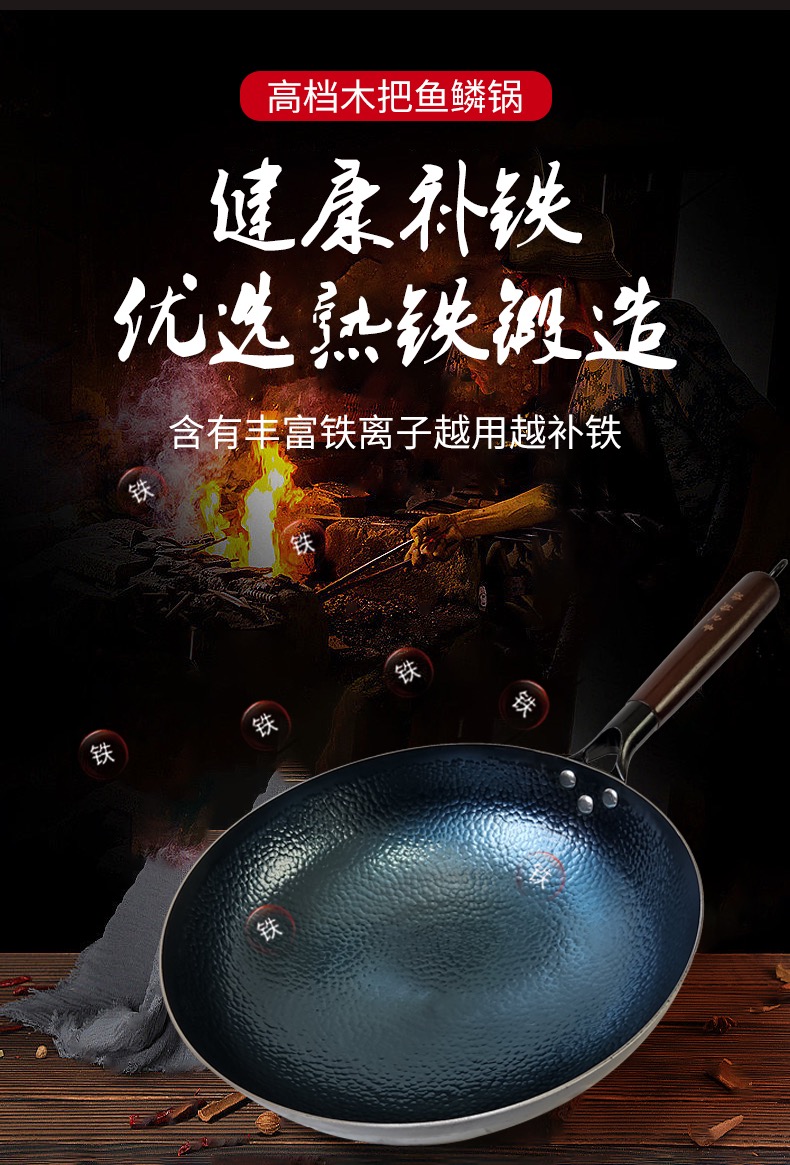 【章丘铁锅】手工锻打 鱼鳞纹 不粘锅 养护得当不生锈 送锅盖 免费开锅