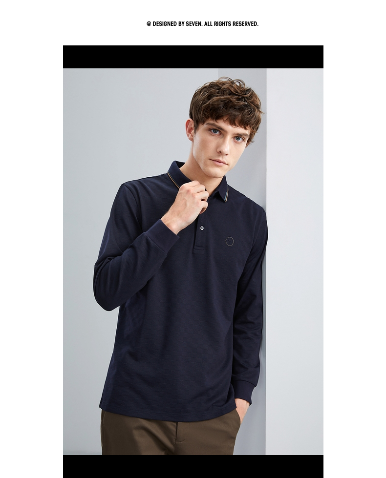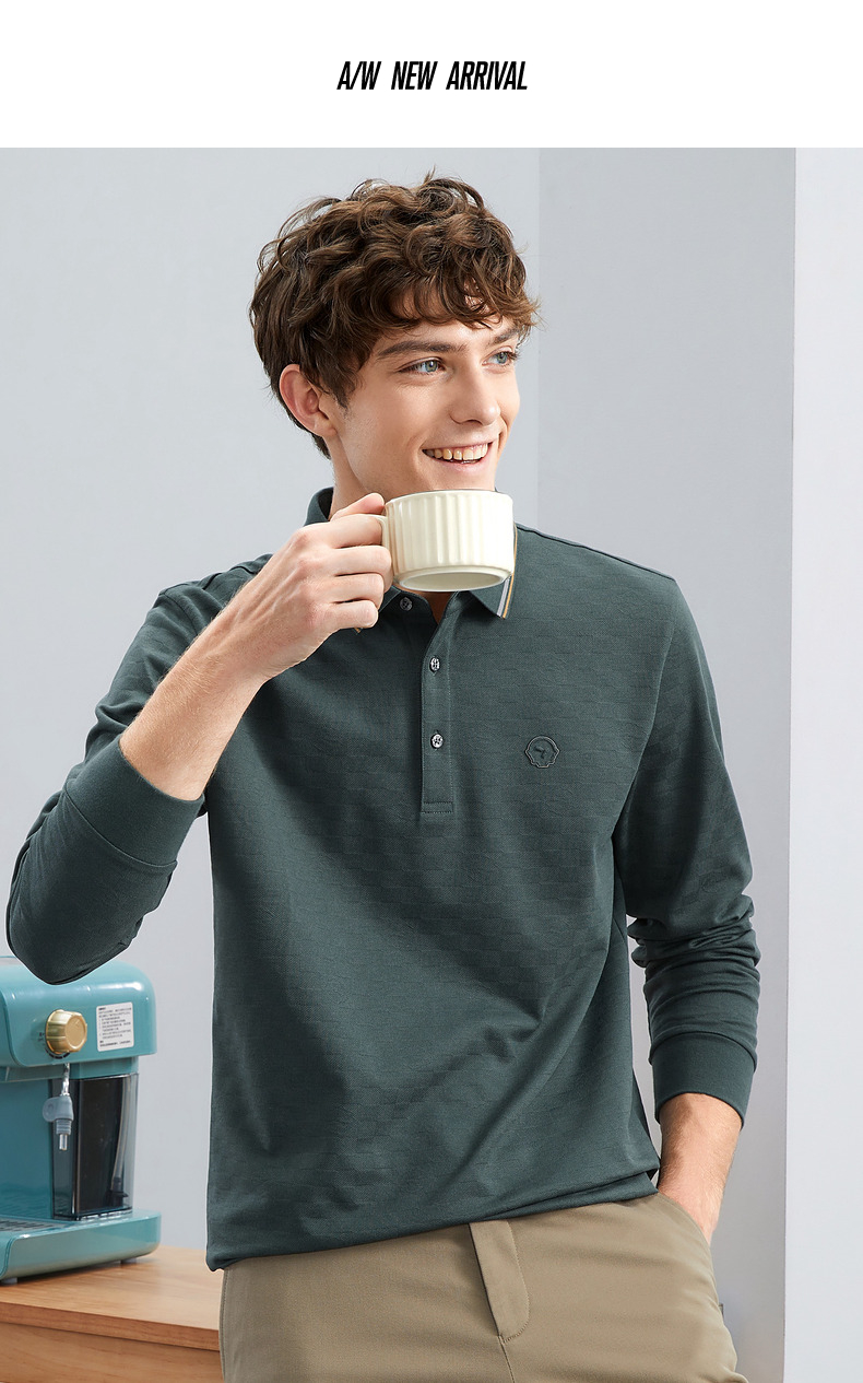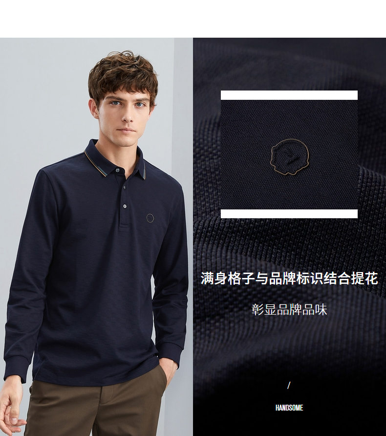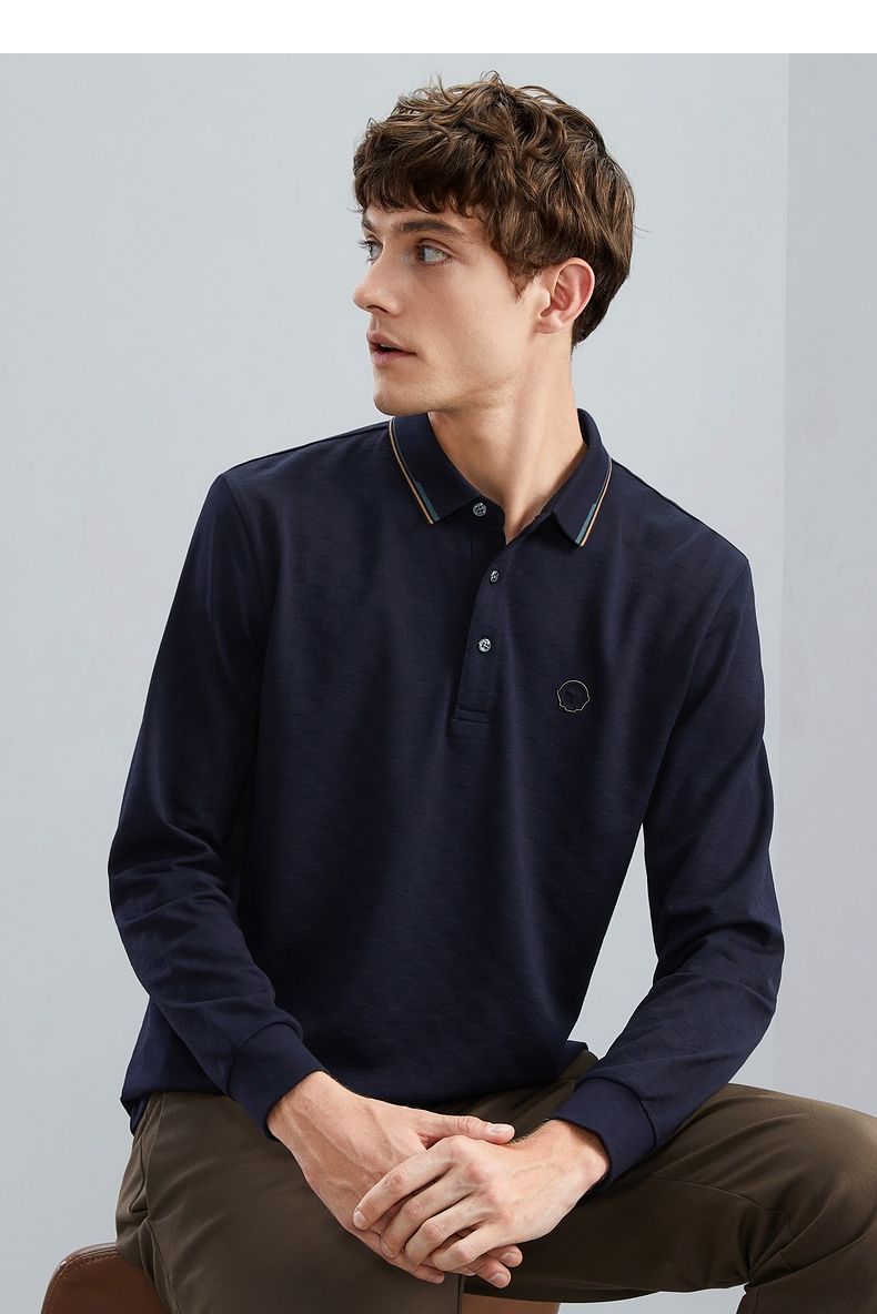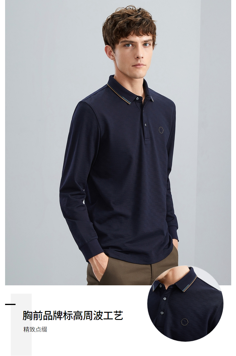 【特价】【含羊毛】柒牌男士polo衫长袖春秋新款时尚翻领提花T恤上衣 125T70070