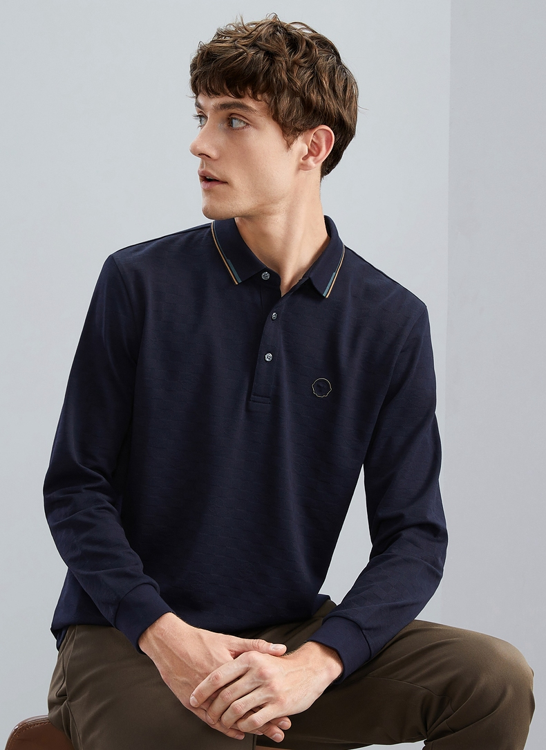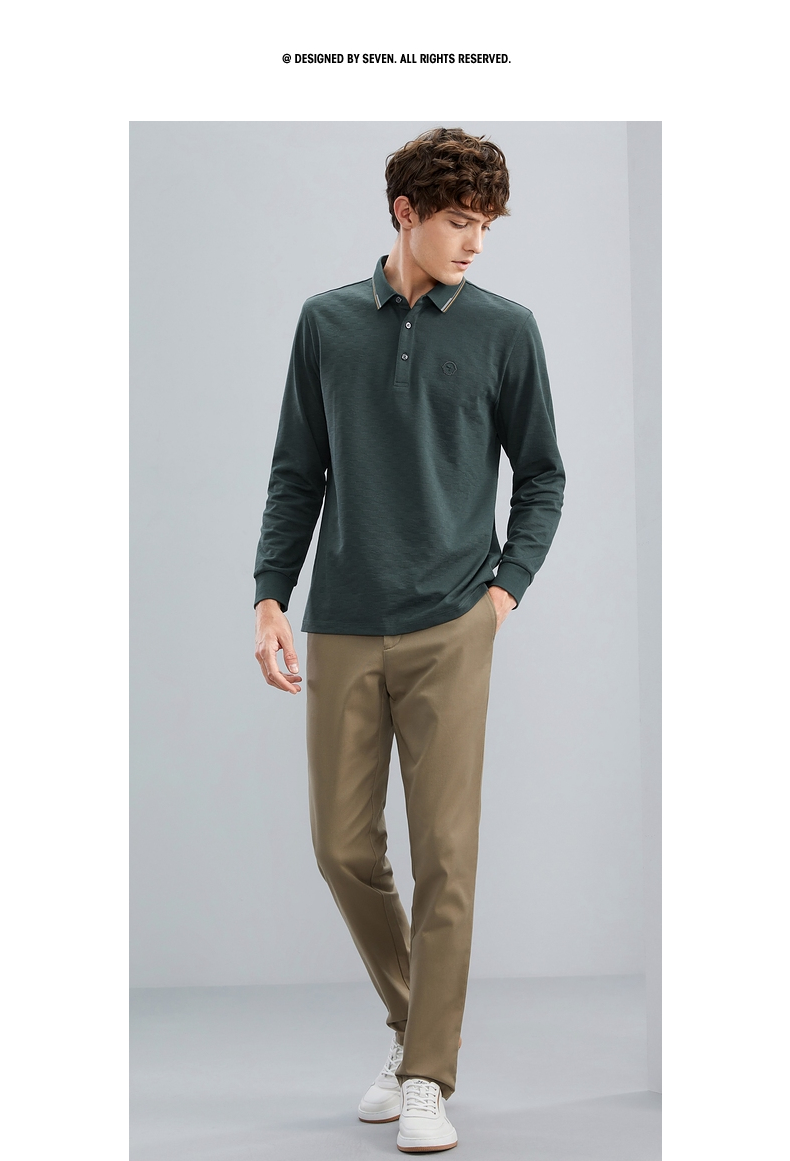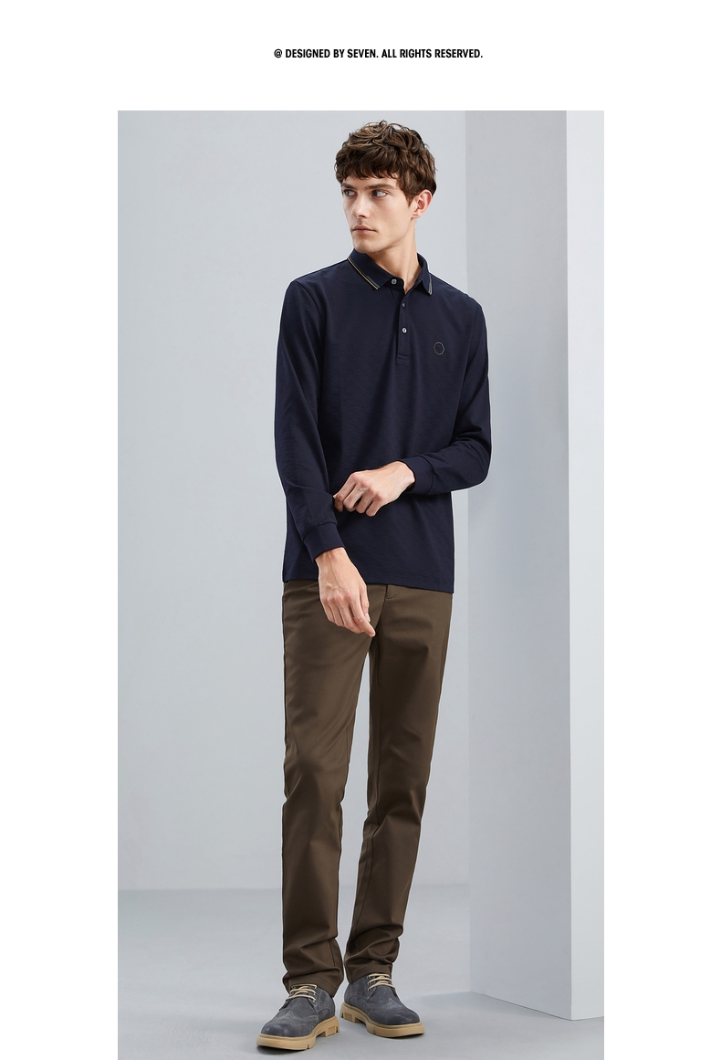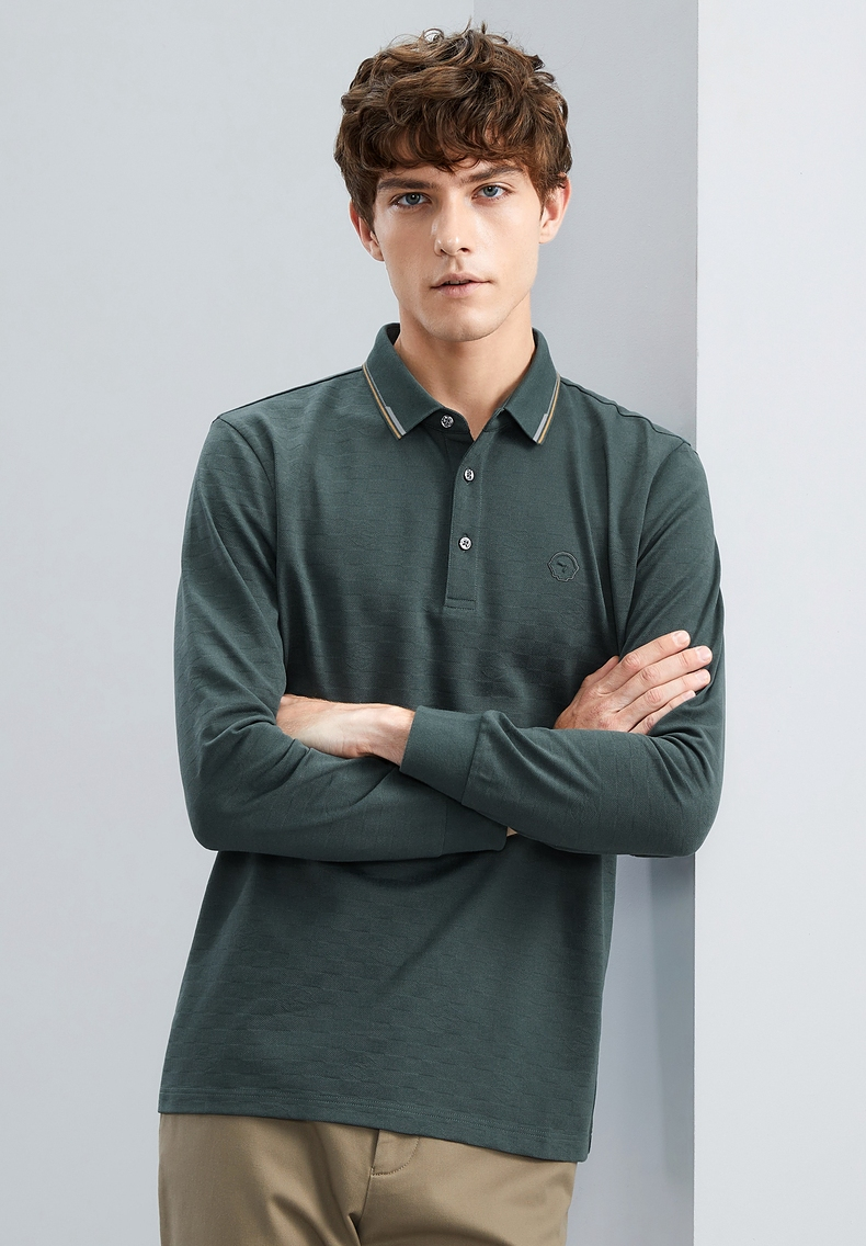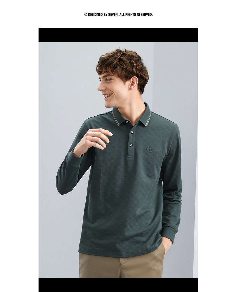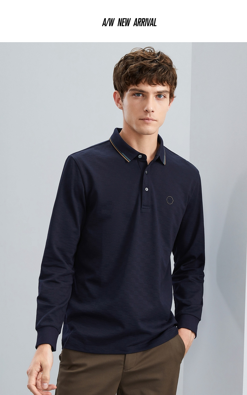 【特价】【含羊毛】柒牌男士polo衫长袖春秋新款时尚翻领提花T恤上衣 125T70070