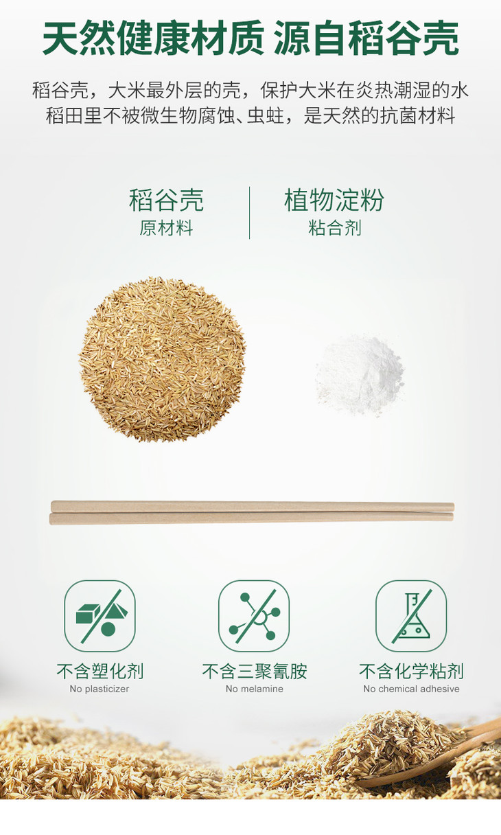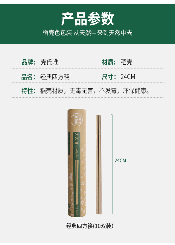 稻谷壳筷子5双装 原材料稻谷壳 高密度、易清洗、不易藏菌