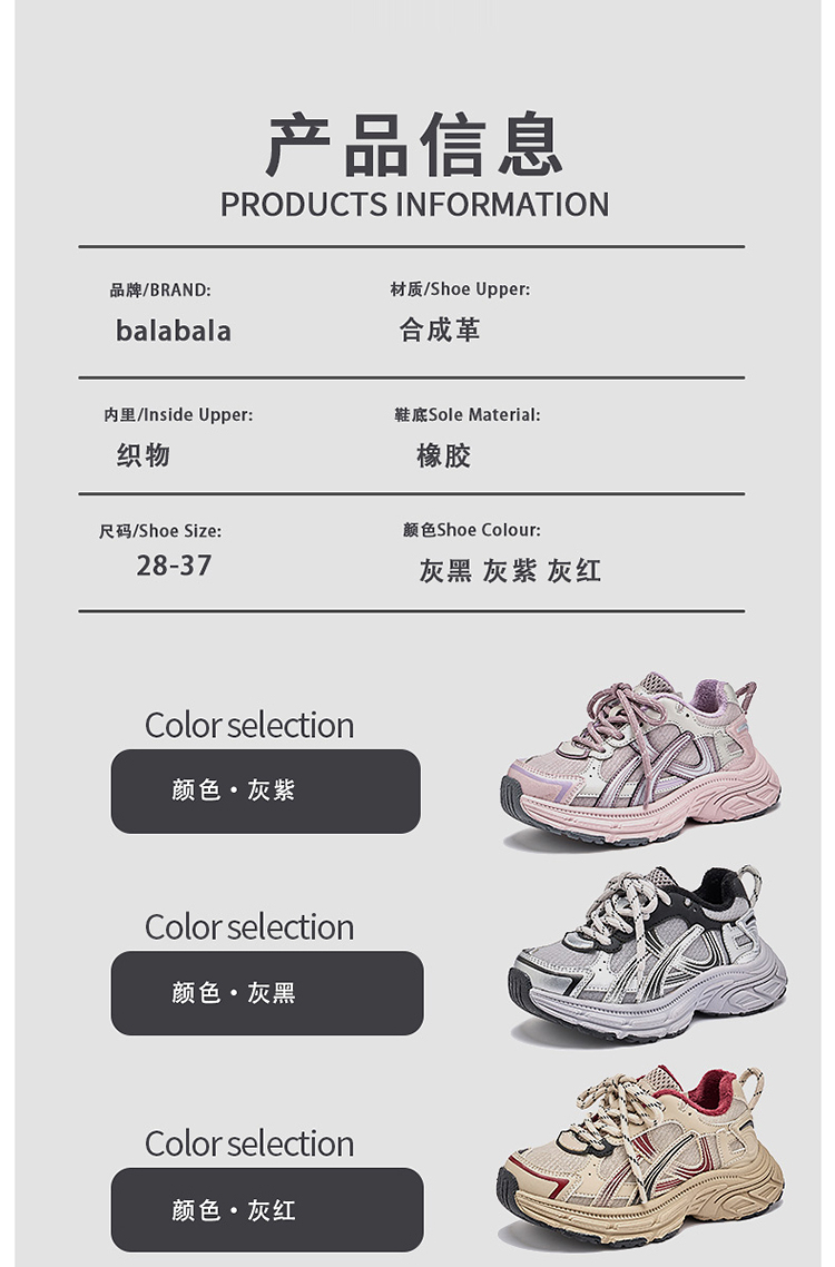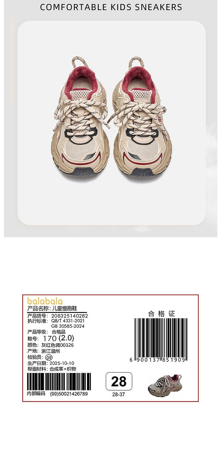巴拉巴拉童鞋儿童慢跑鞋男女童2025年新款秋冬舒适透气运动鞋百搭