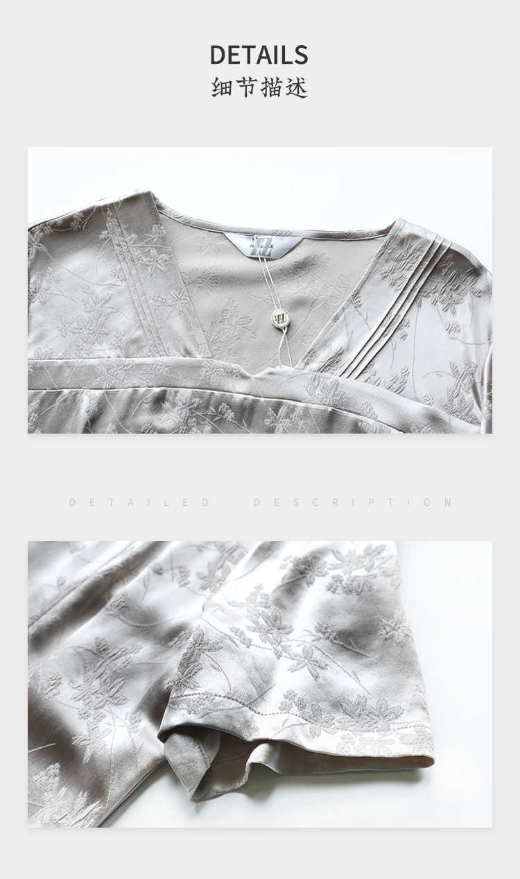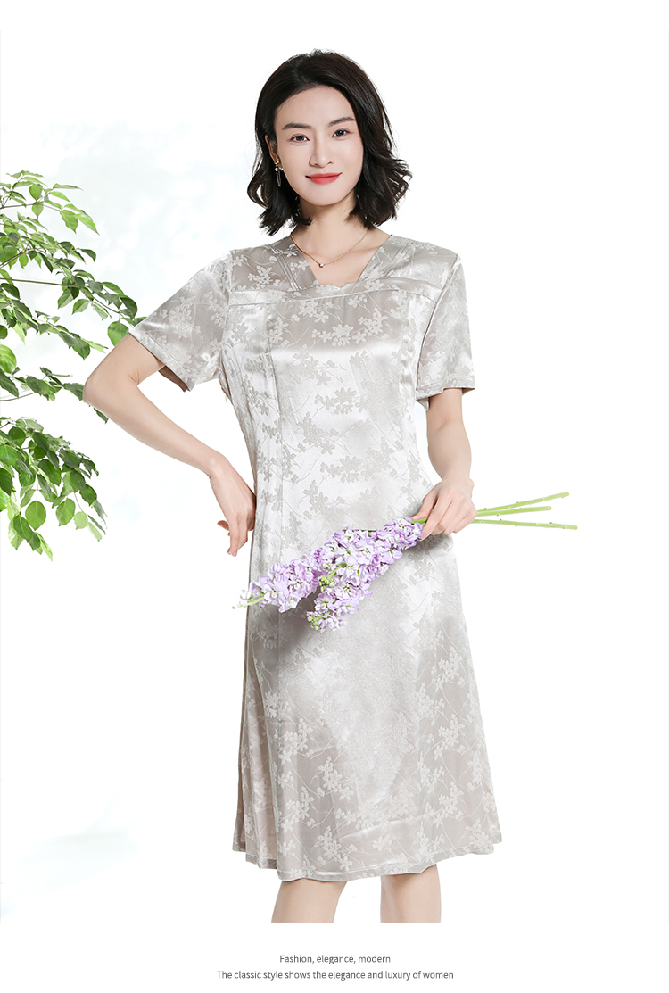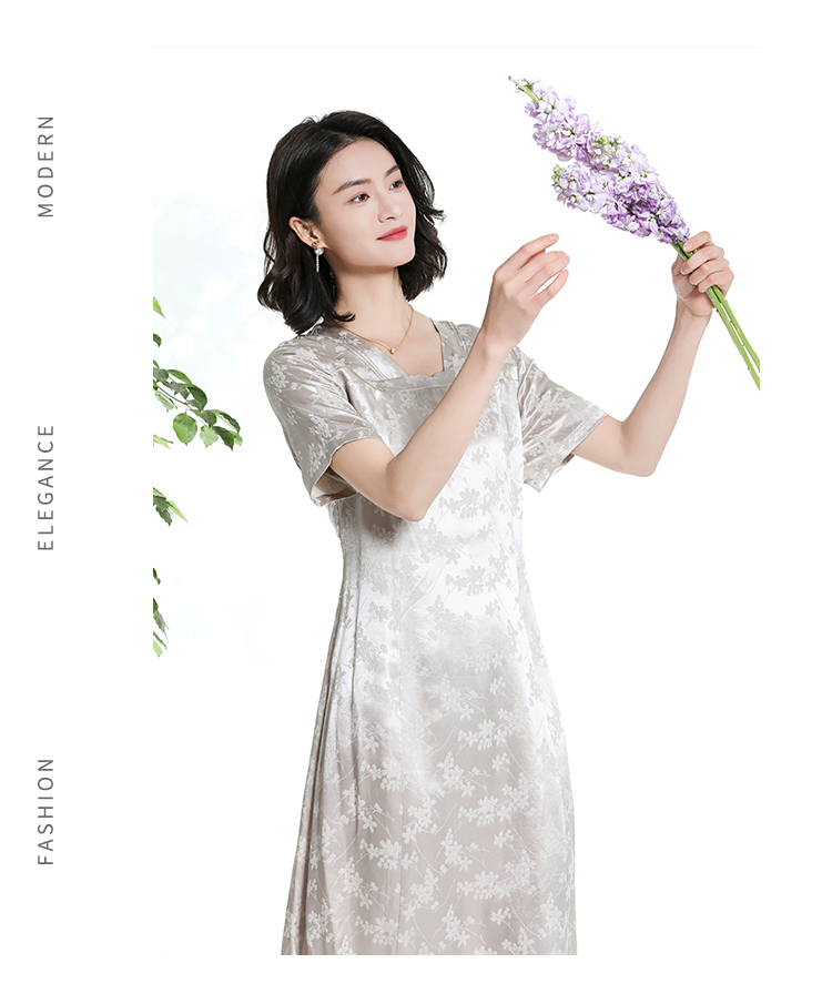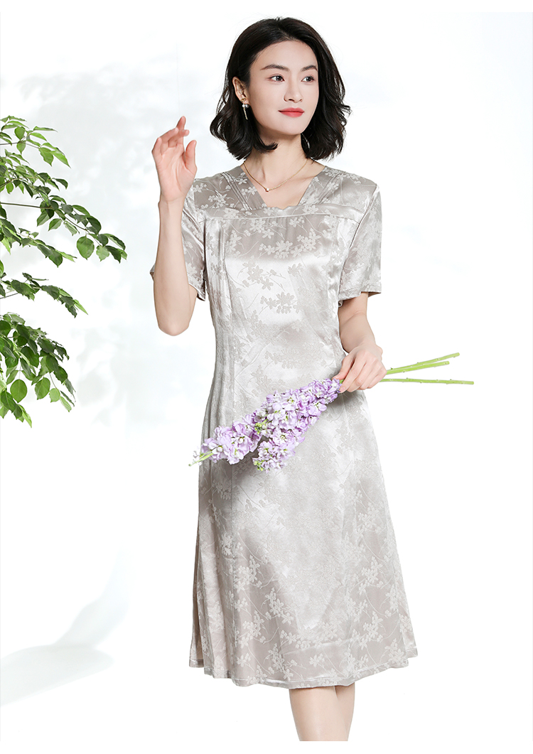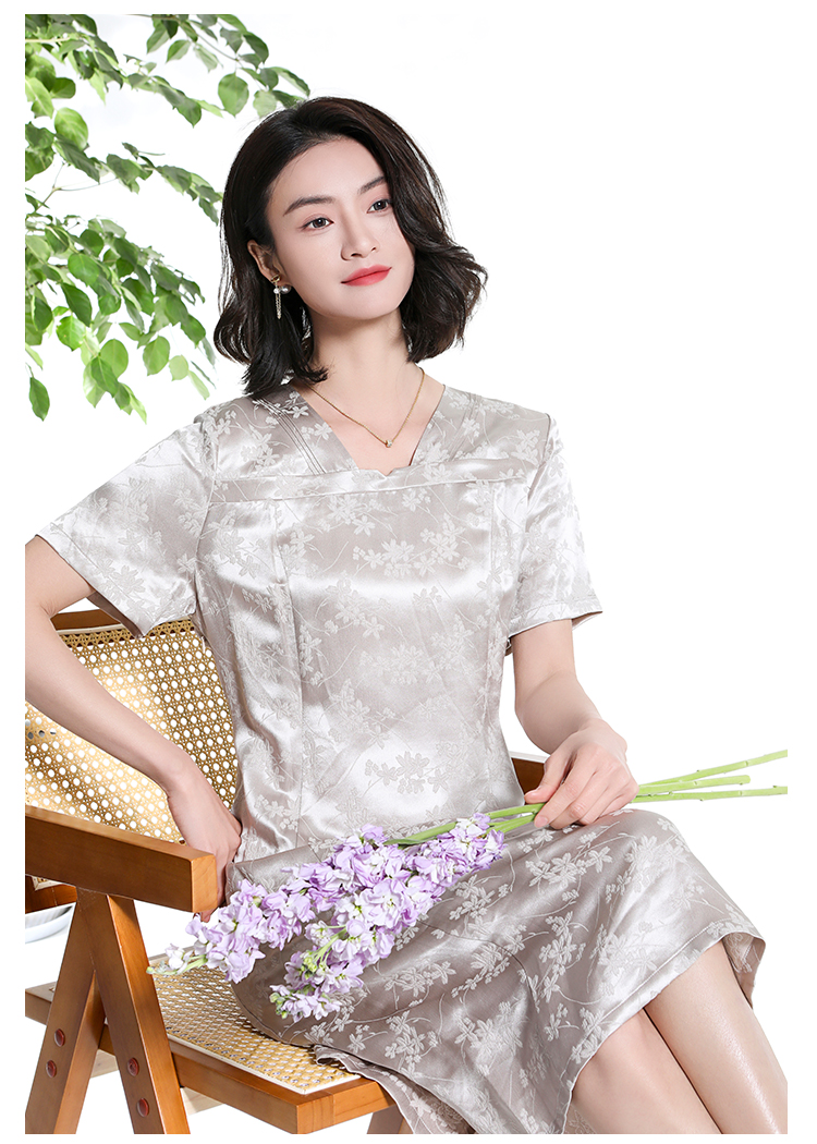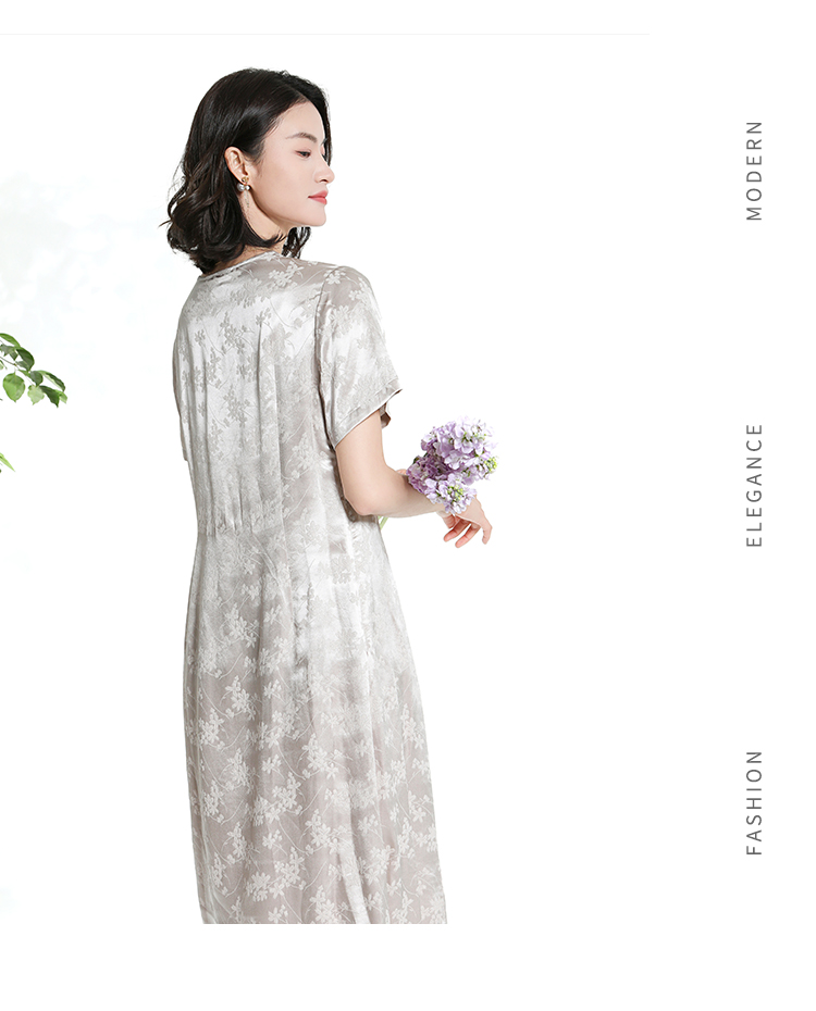佐尔美夏季新款时尚气质提花桑蚕丝短袖连衣裙女M42LS68