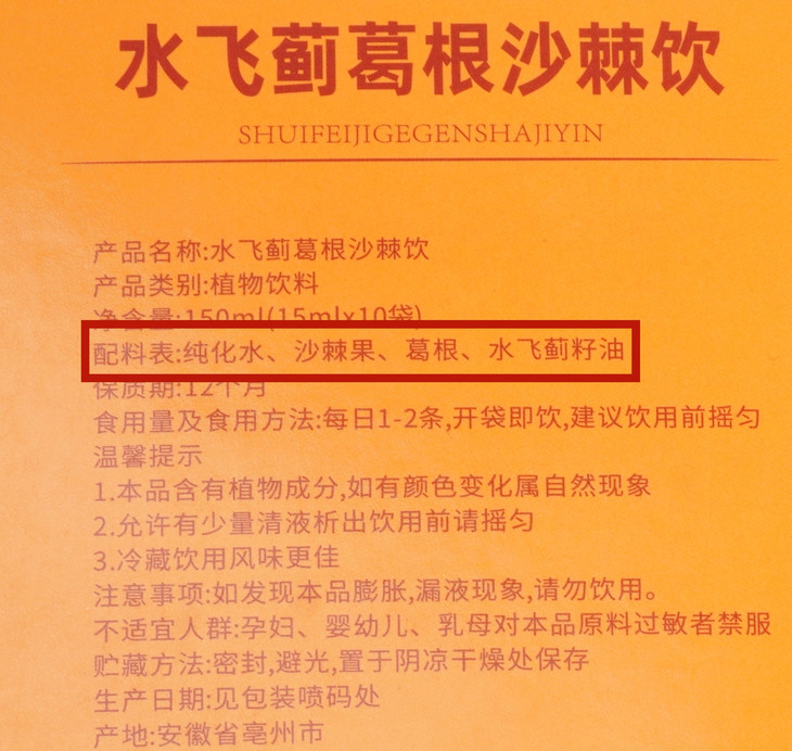 配料表封神! 纯化水、沙棘果、葛根、水飞蓟籽油——就这4种! 无香精、无防腐剂、无蔗糖 主打一个“原生无添加” 老人、宝妈、打工人闭眼冲 喝的全是自然本味~