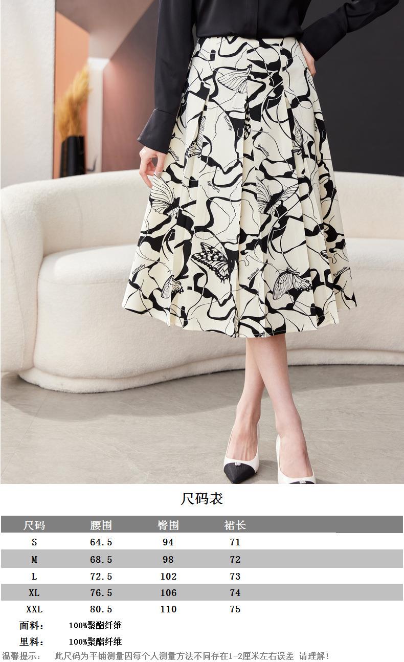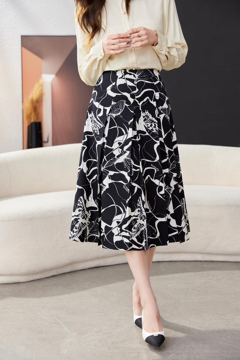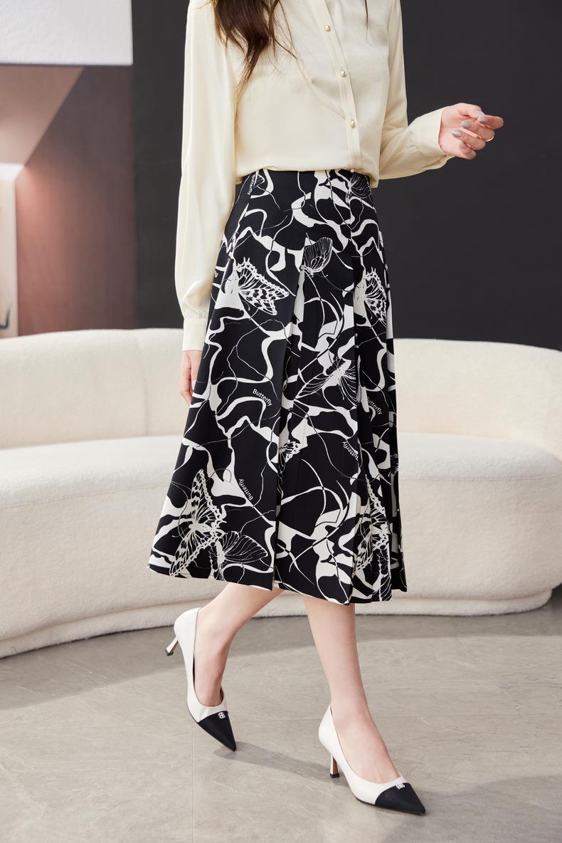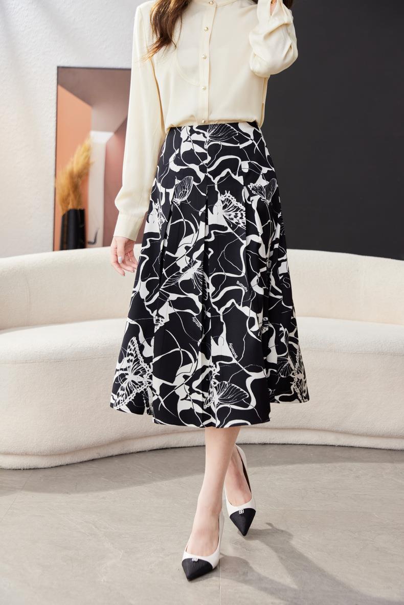 印花雪纺半身裙女2024春装新款中长裙气质职业A字裙1776