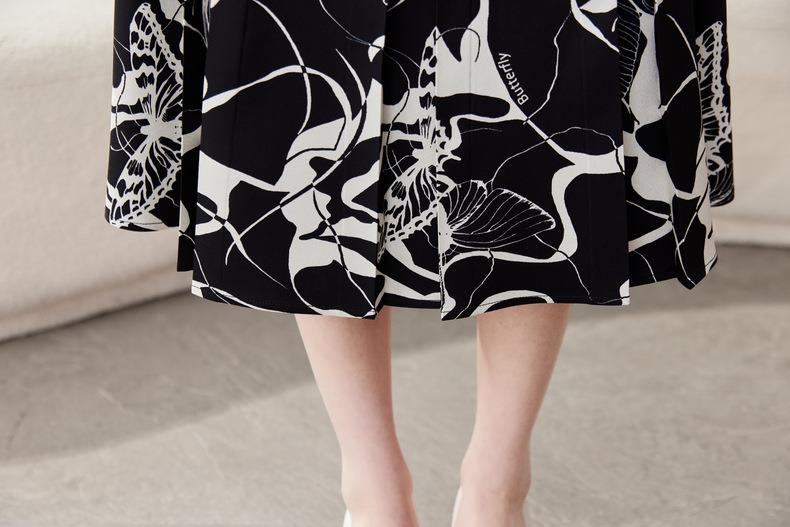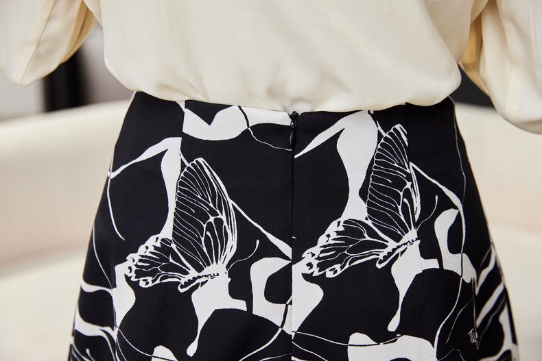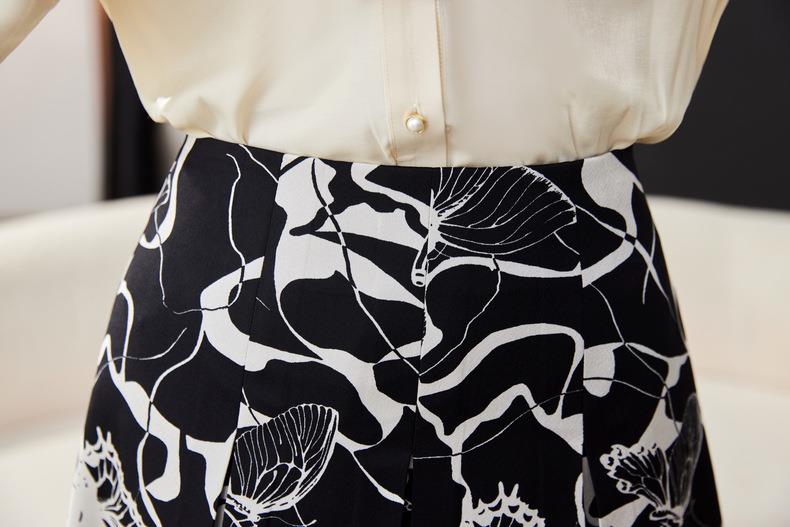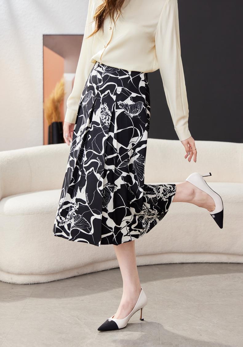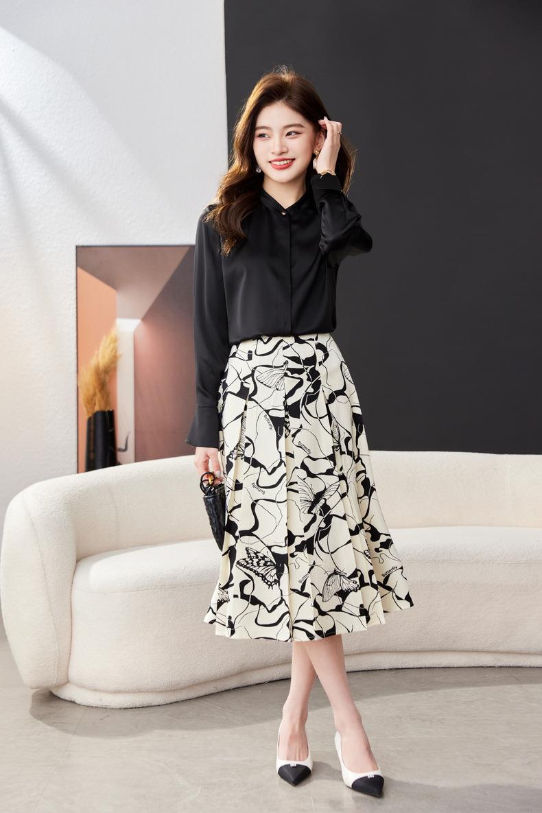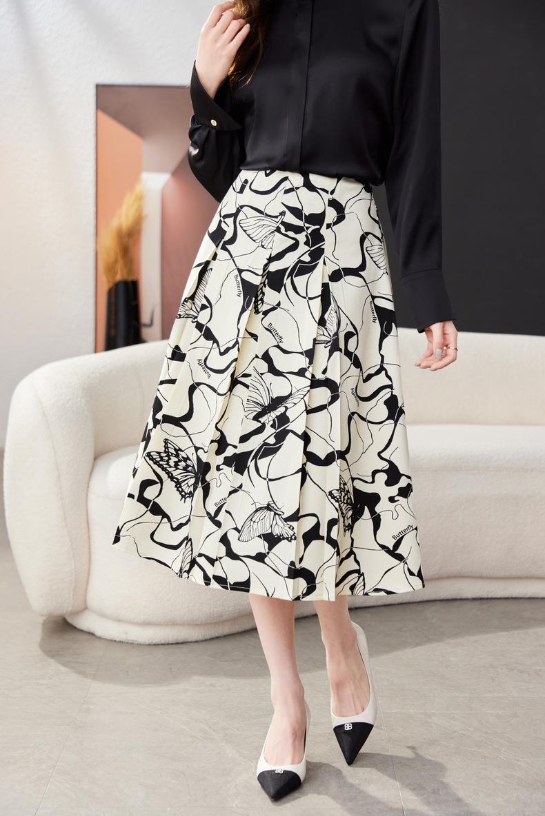 印花雪纺半身裙女2024春装新款中长裙气质职业A字裙1776