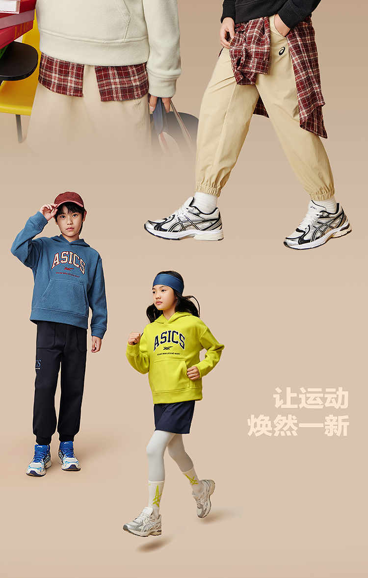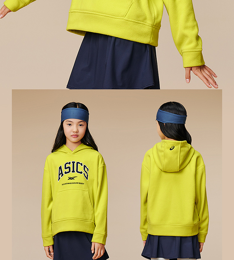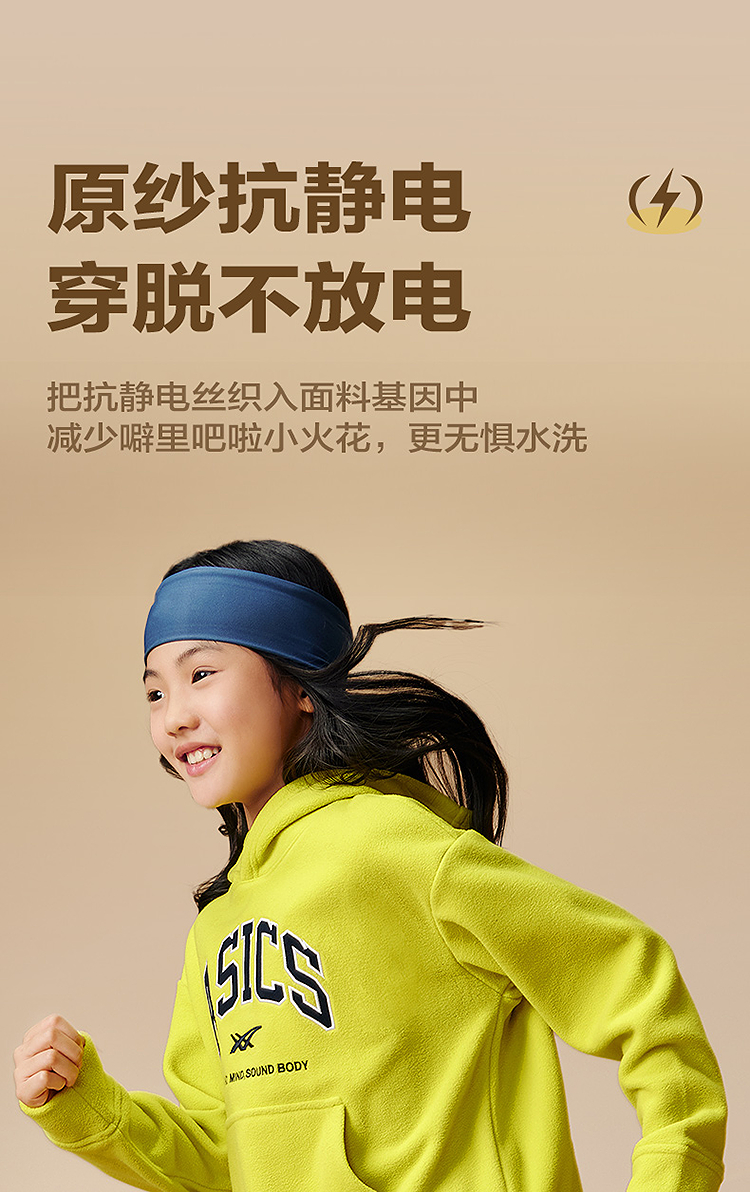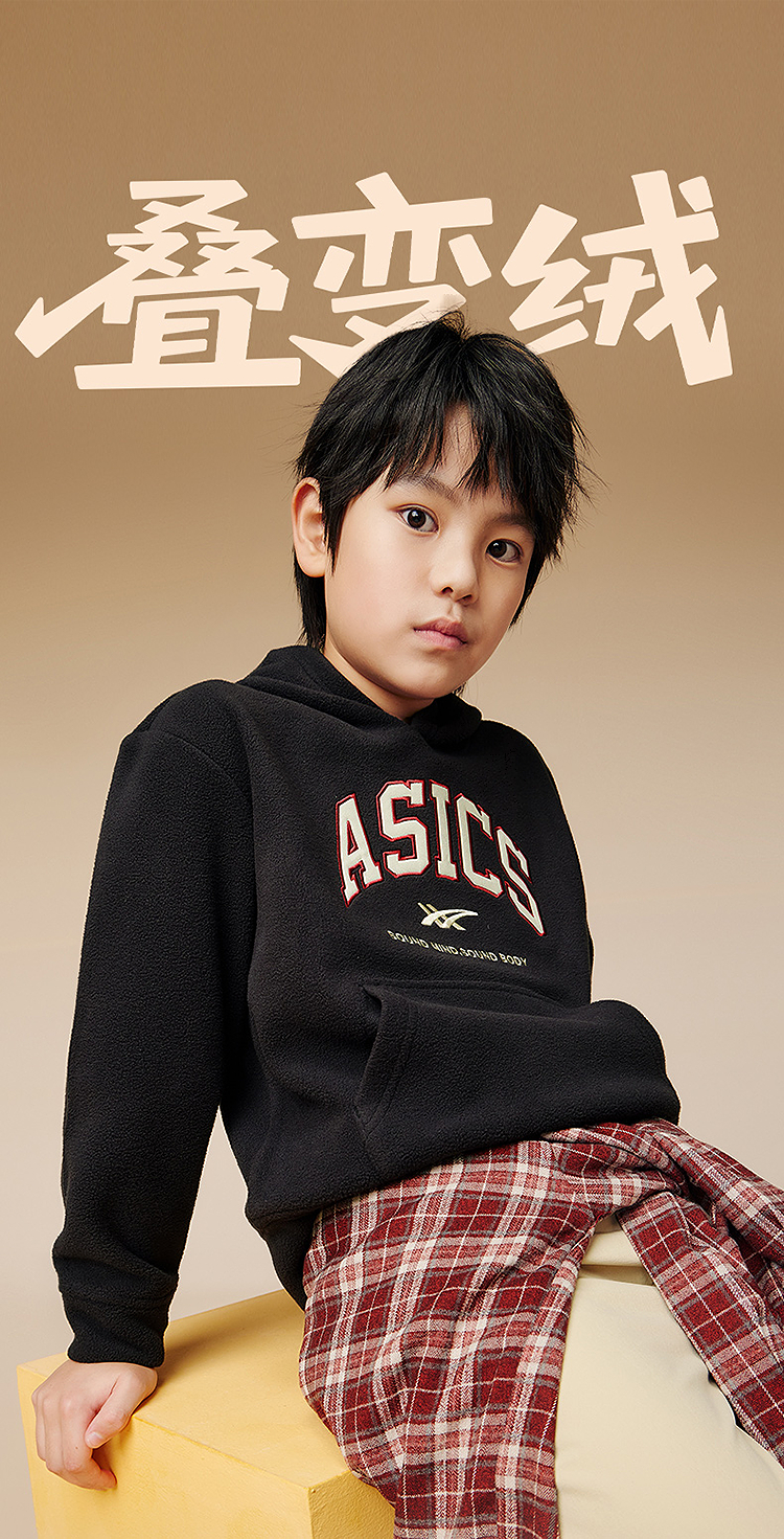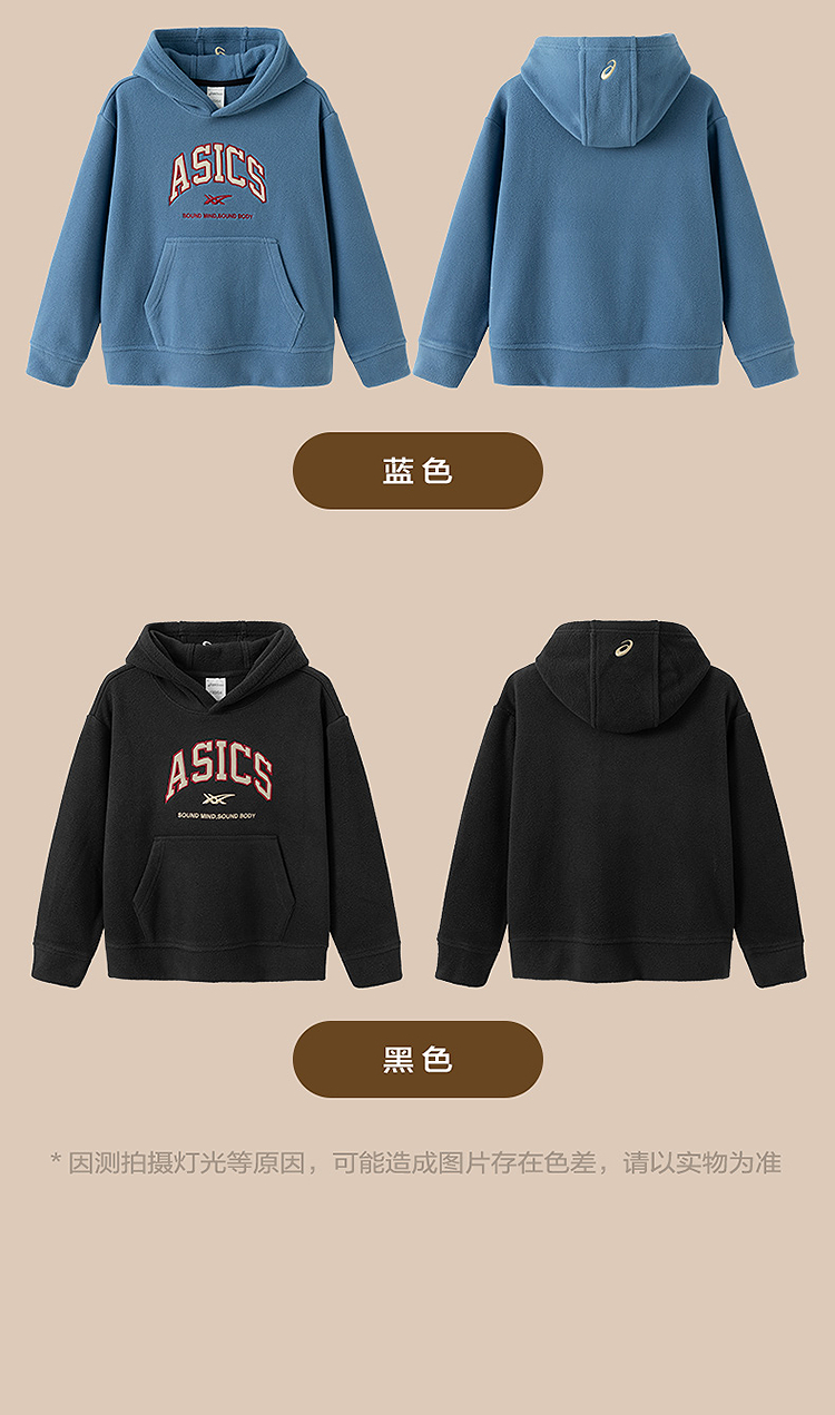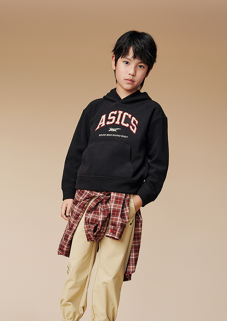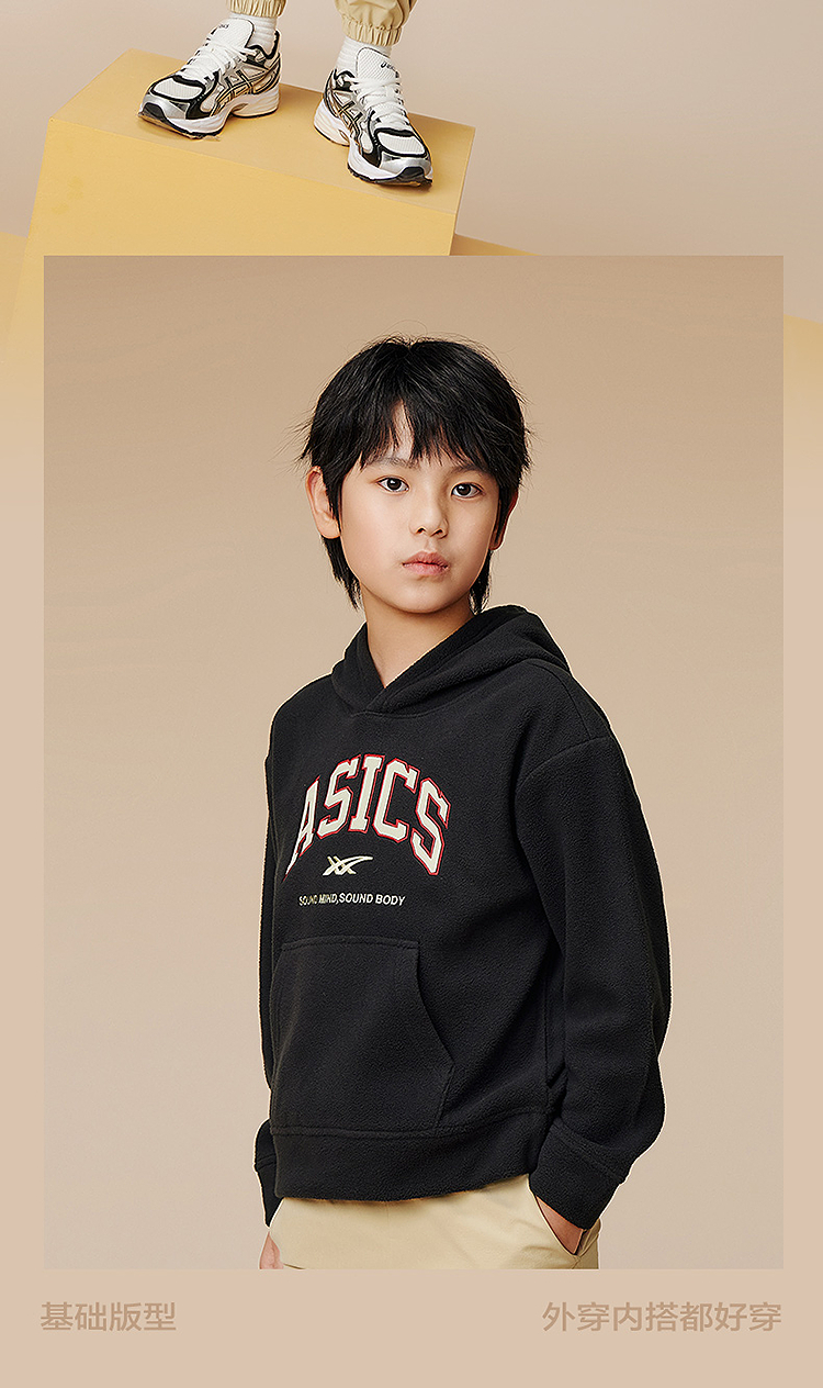 ASICS/亚瑟士童装25年新款摇粒绒连帽卫衣柔软舒适保暖宽松长袖
