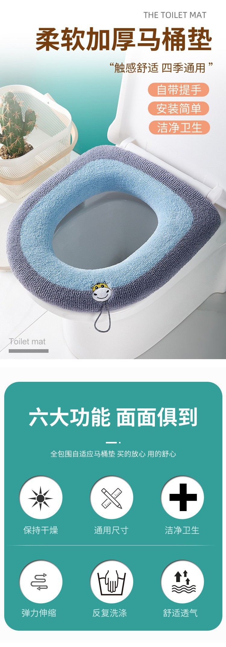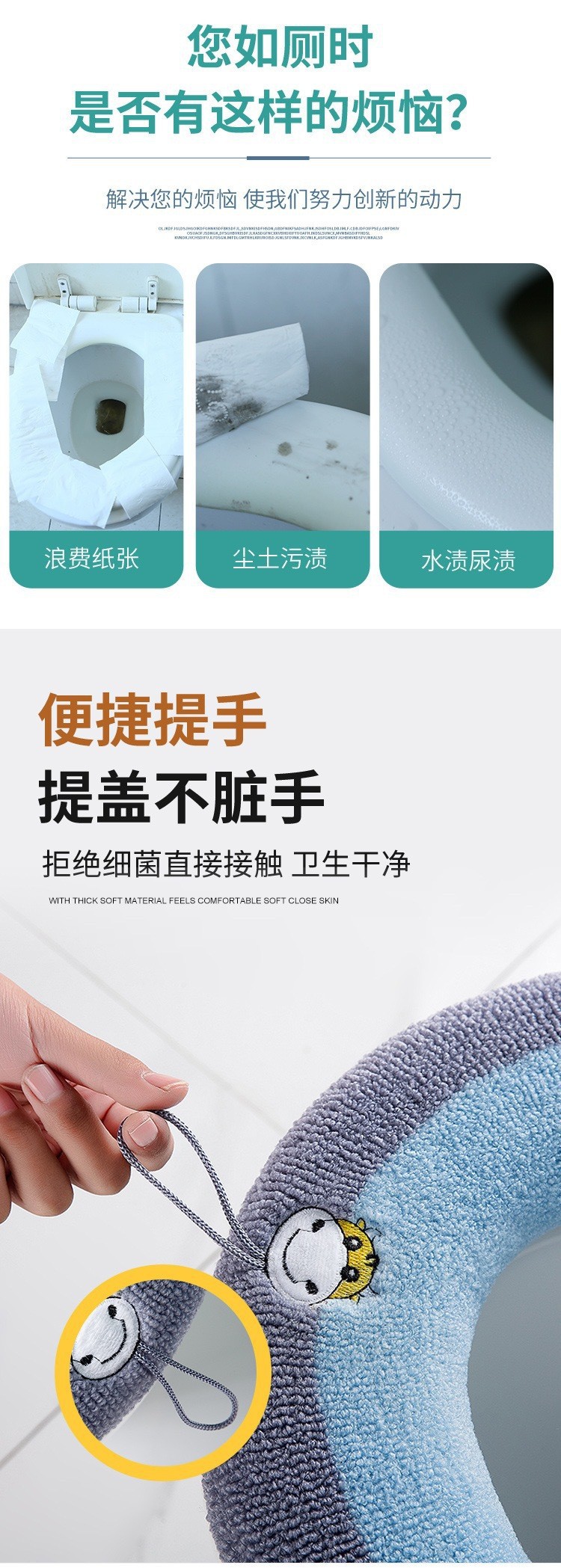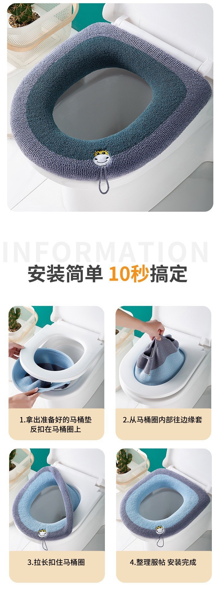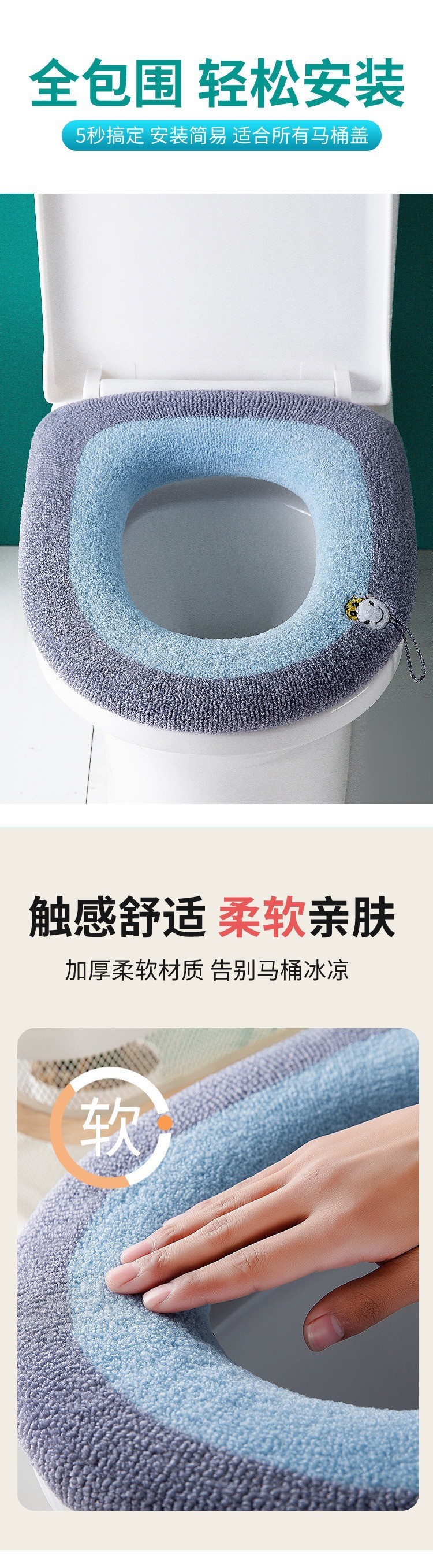 【秒杀❗9.9抢秋冬马桶垫】全包围,轻松安装,马桶垫秋冬加绒加厚毛绒带提手马桶坐垫马桶器马桶圈家用卫生间。rc