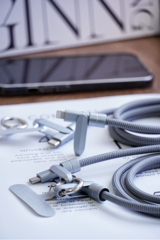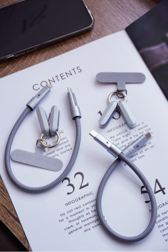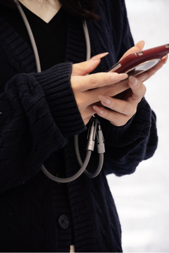 🔺AURARO双端挂绳数据线 亮眼科技耐看的外观 是极冷静的流行格雷系全灰配色 除了基础的充电防丢功能外 比别家的同类产品都要更加有风格 谁家做数据线能做得这么有质感