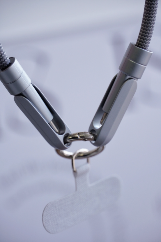 AURARO这套的垫片是有硬度在的高密度固化布 非布软片💪🏻 超薄,不影响手机壳和充电口的正常使用 工厂有经过三万次的样品弯折测试哦! 加上是户外同款设计的金属无缝环扣连接:金属扣金属 强拉不易坏 随意摇摆使用 挂在身后也是安全感十足