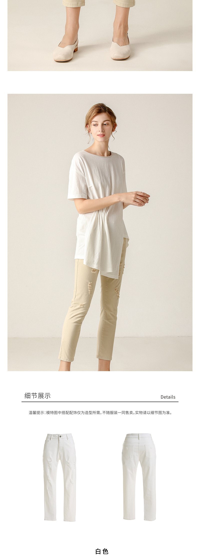 famecoco范可儿女休闲裤新款夏破洞百搭显瘦小脚九分裤F203GA028