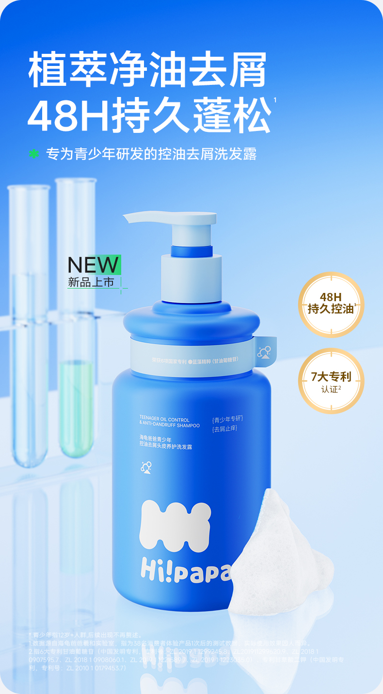 海龟爸爸青少年控油去屑头皮养护洗发露适合12+青少年