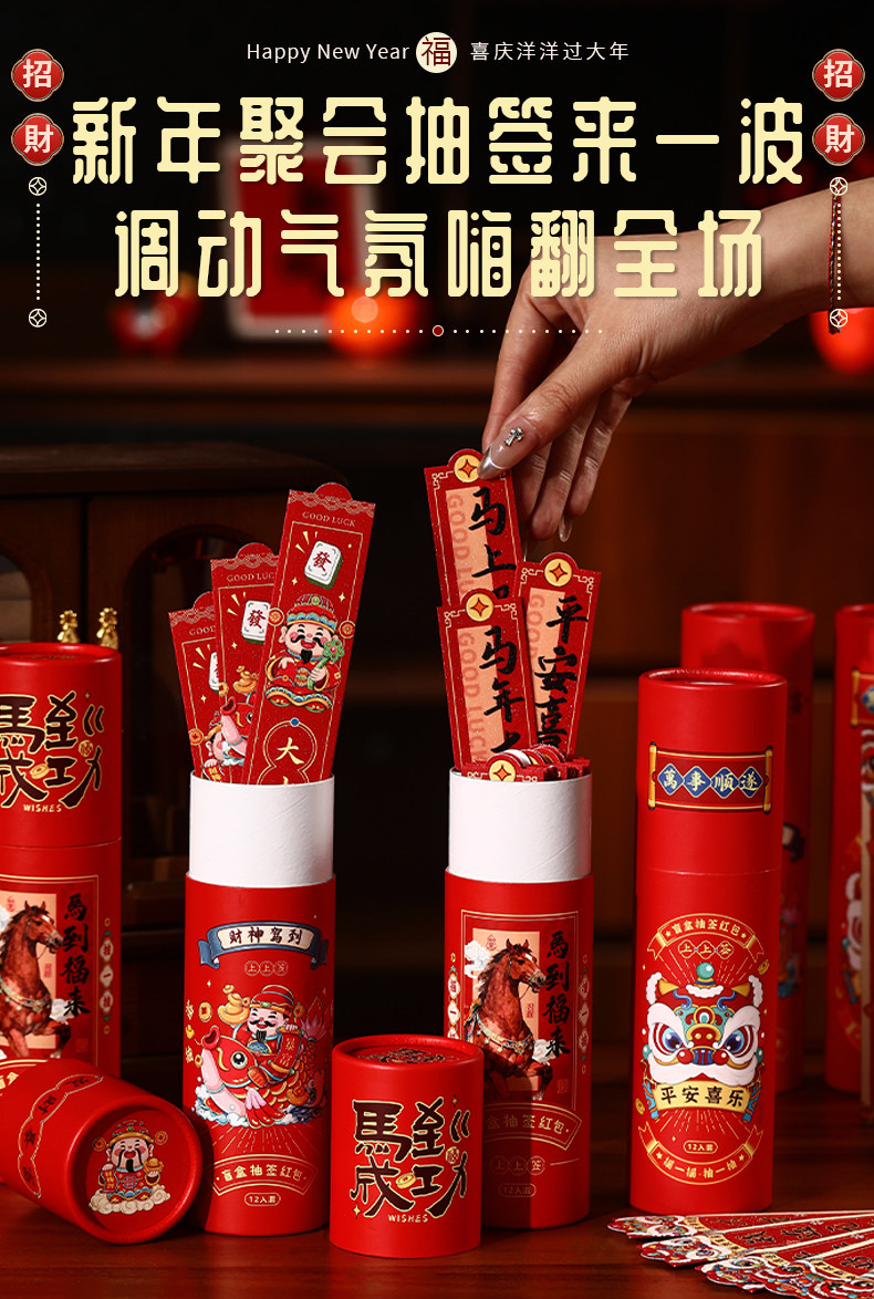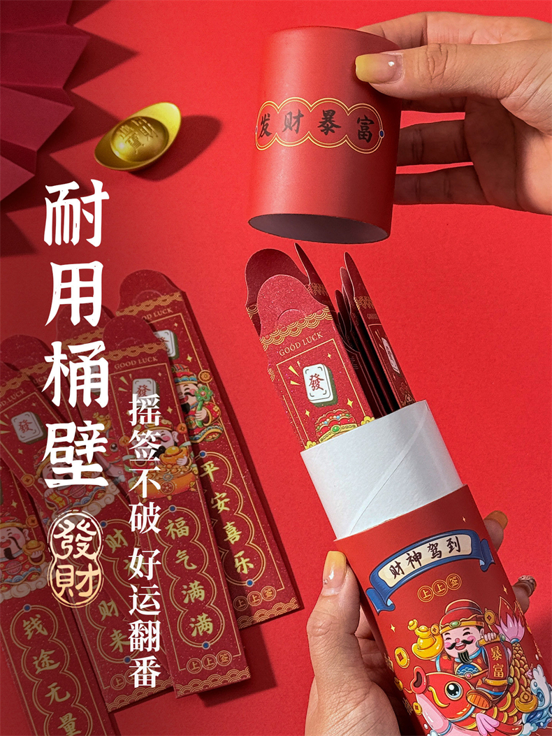 【商品颜色】:桶装-抽签红包(平安喜乐)(马到成功)(财神驾到)