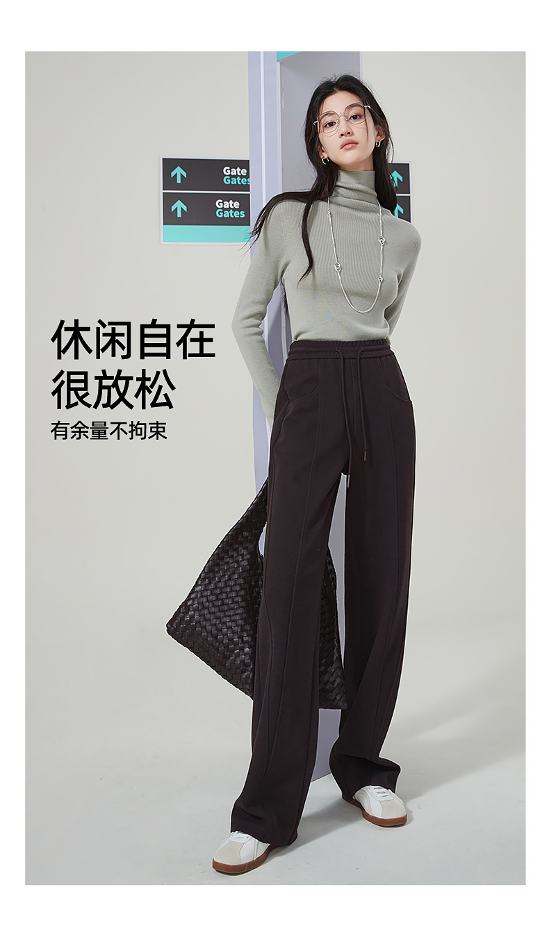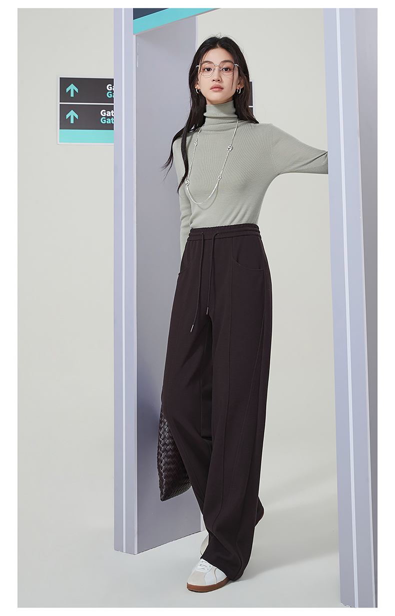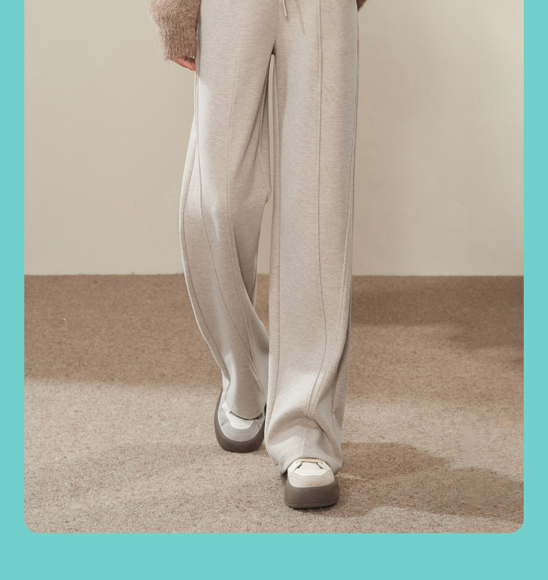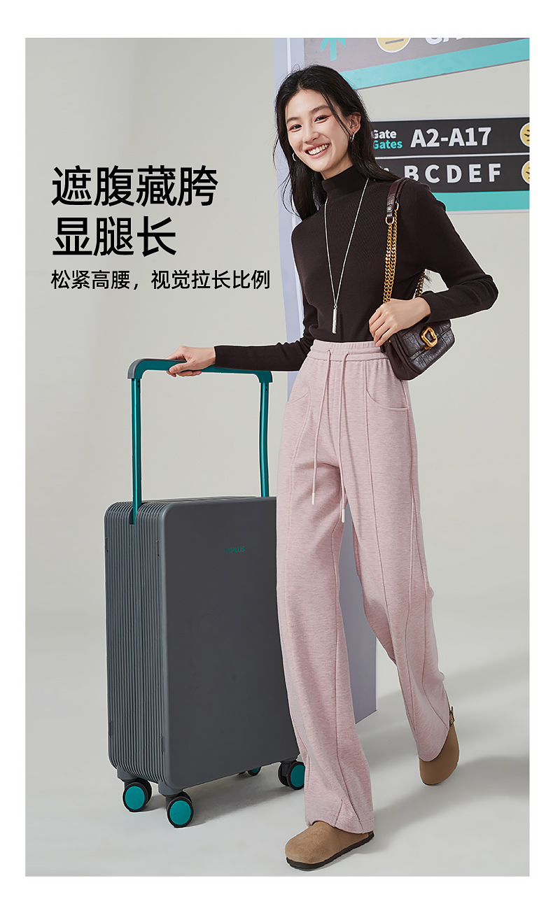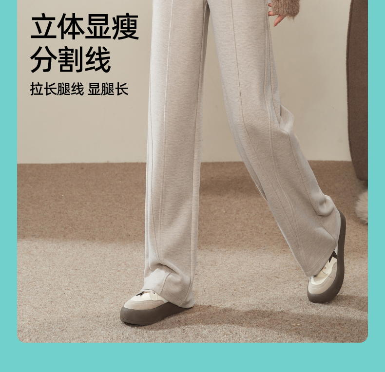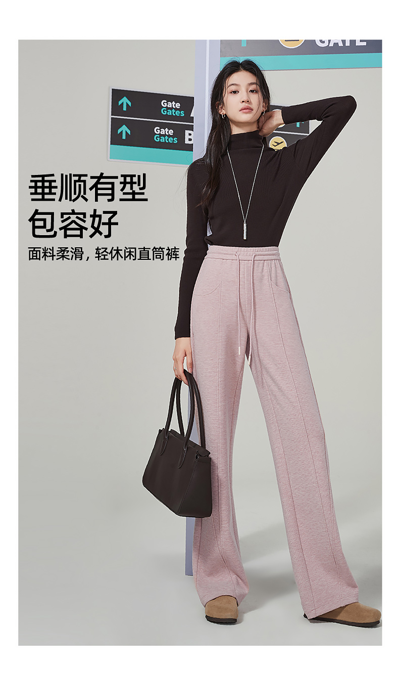 【初春穿刚好】逸阳仿羊绒窄版阔腿裤女高腰垂感直筒宽松休闲白色长裤子1574