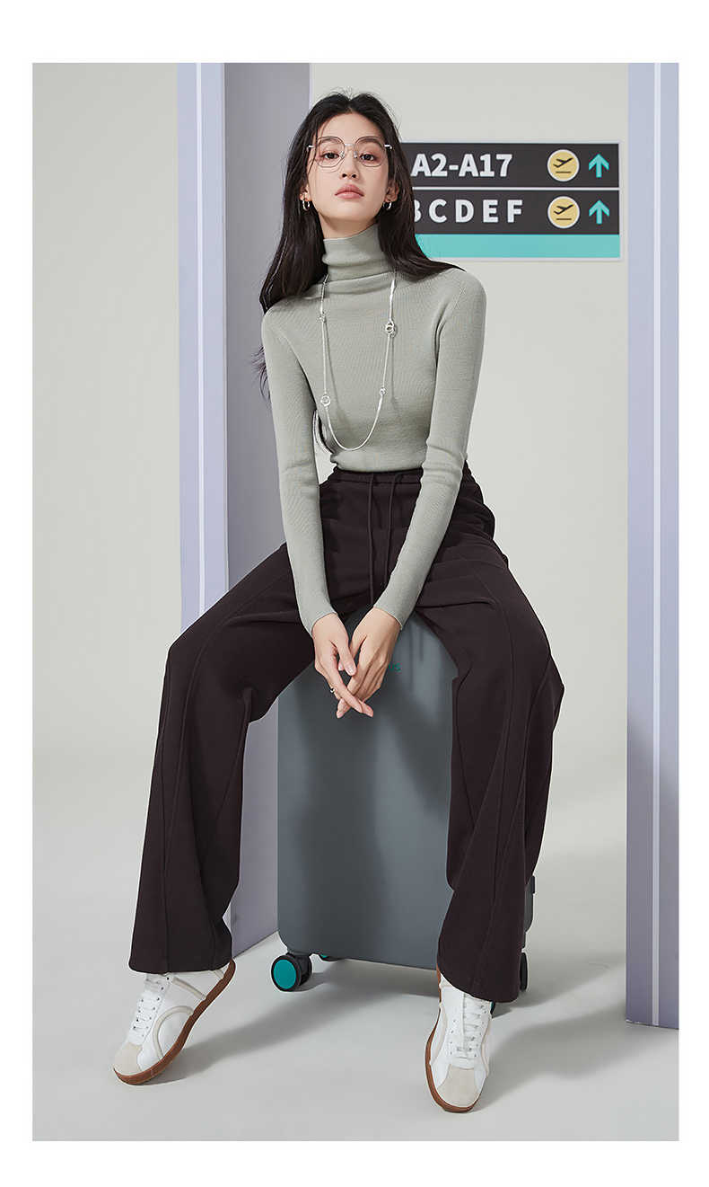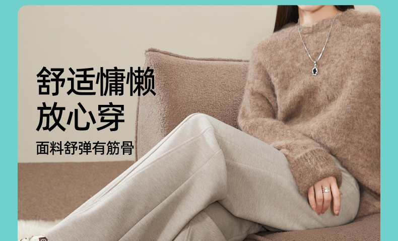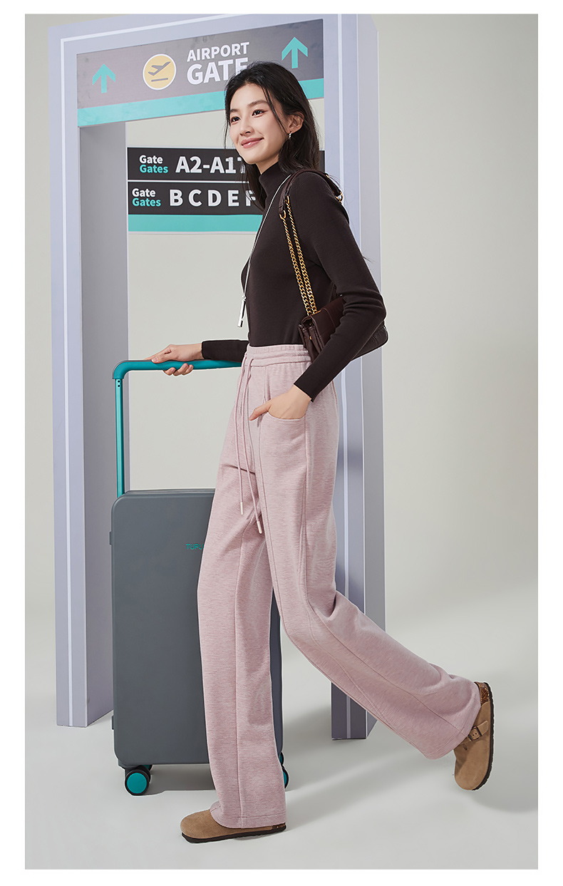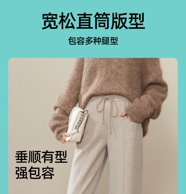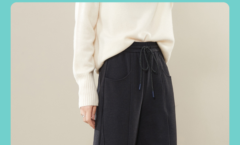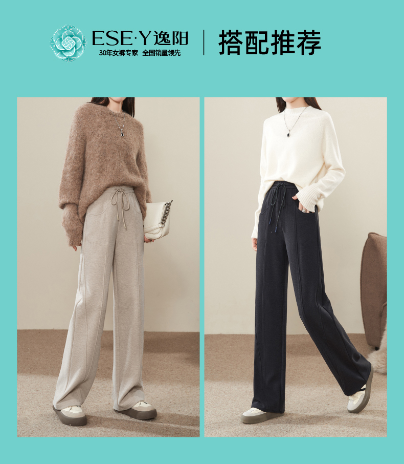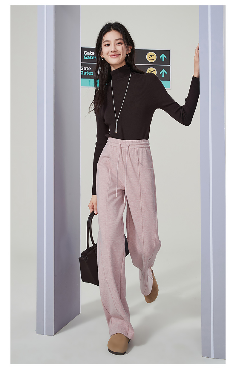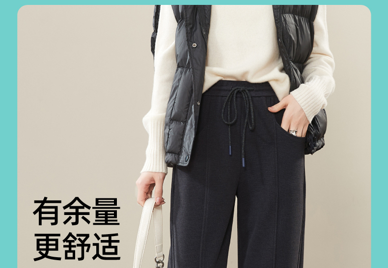 【初春穿刚好】逸阳仿羊绒窄版阔腿裤女高腰垂感直筒宽松休闲白色长裤子1574