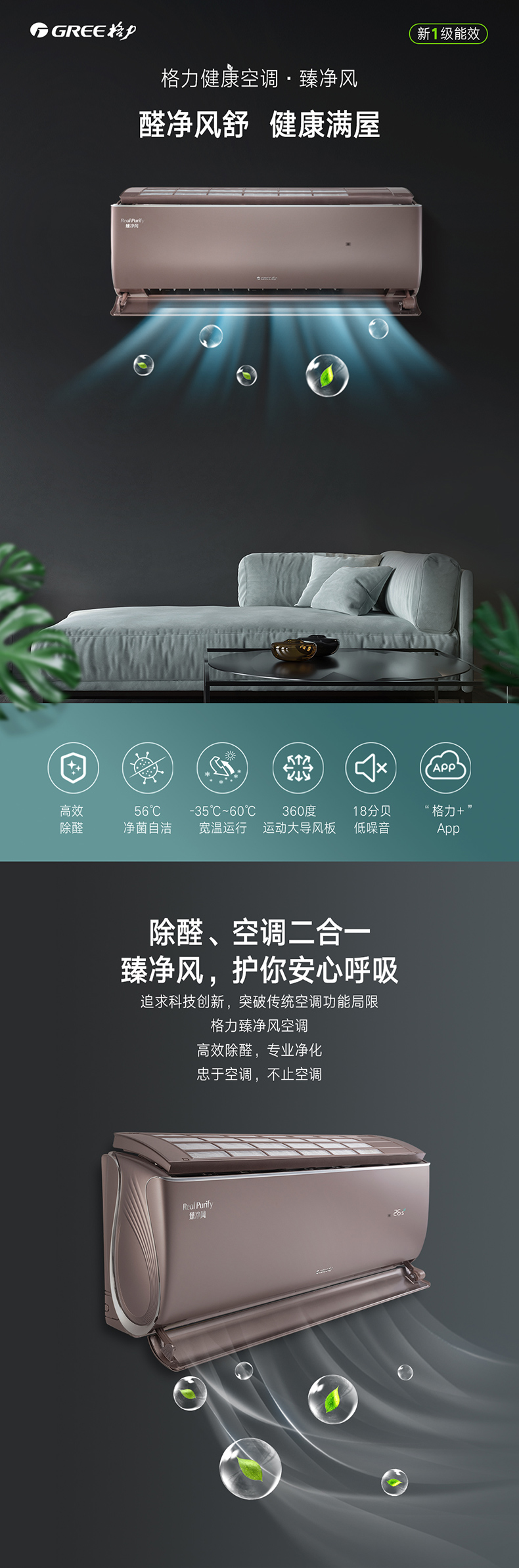 GREE格力 臻净风 大1匹/1.5匹 新一级能效 变频冷暖 挂机空调