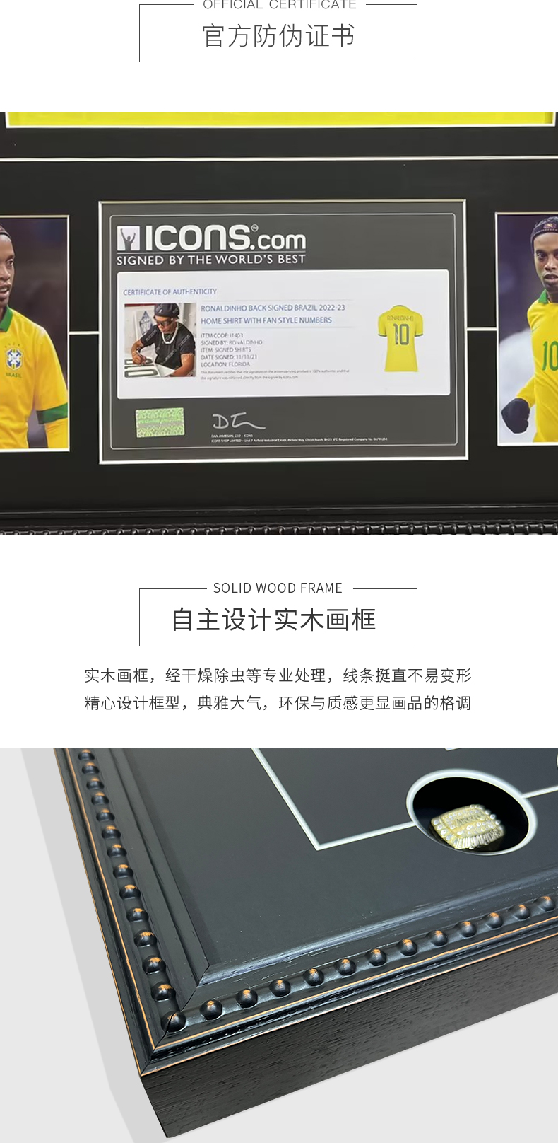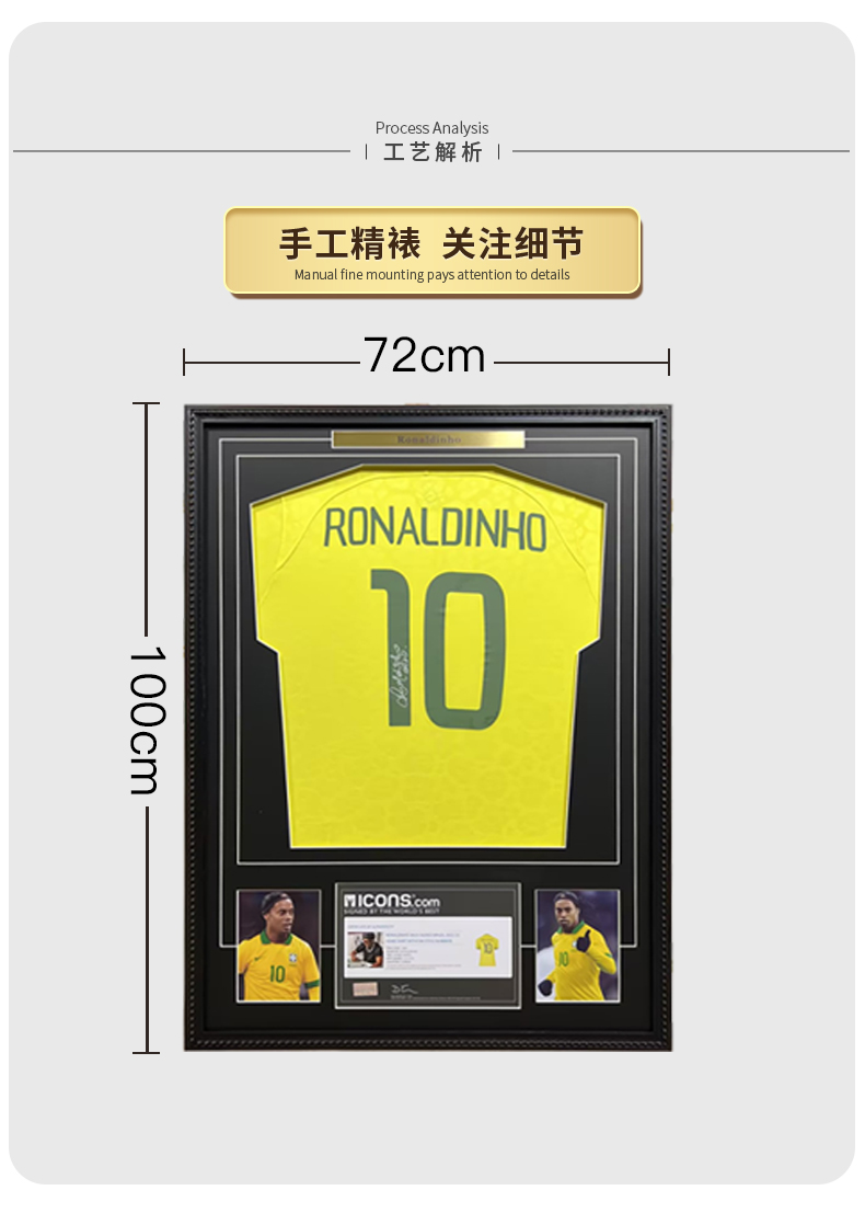 收藏系列 小罗 巴西队10号黄色 亲笔签名球衣 ICONS